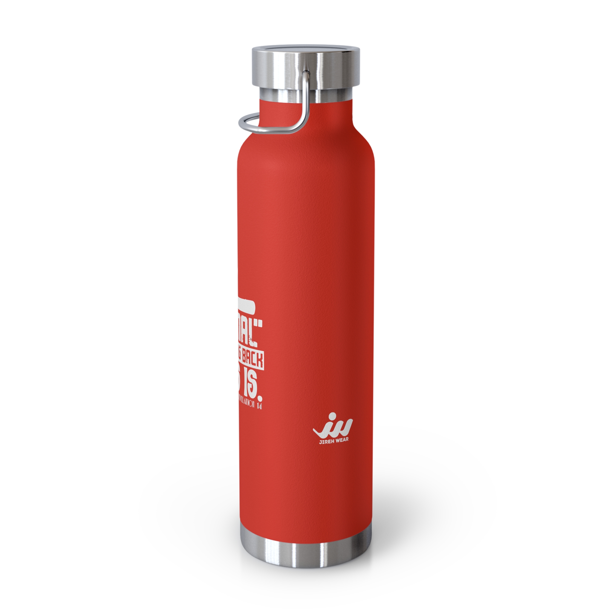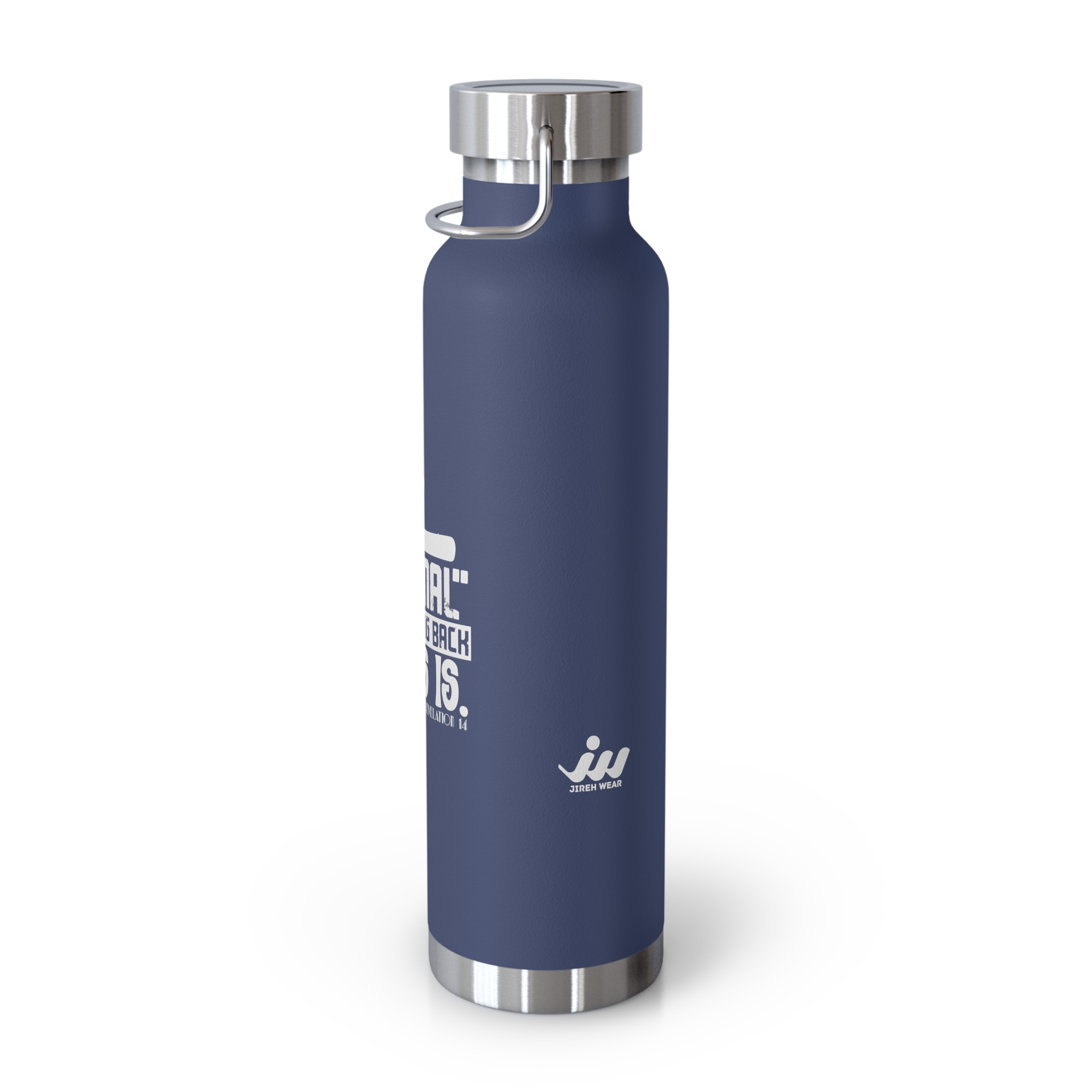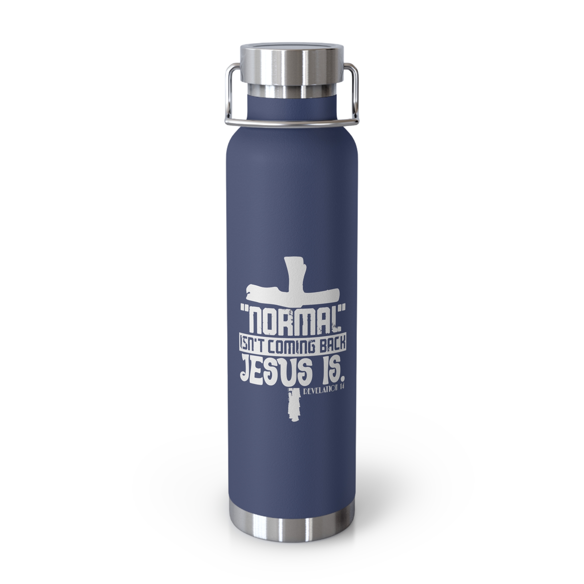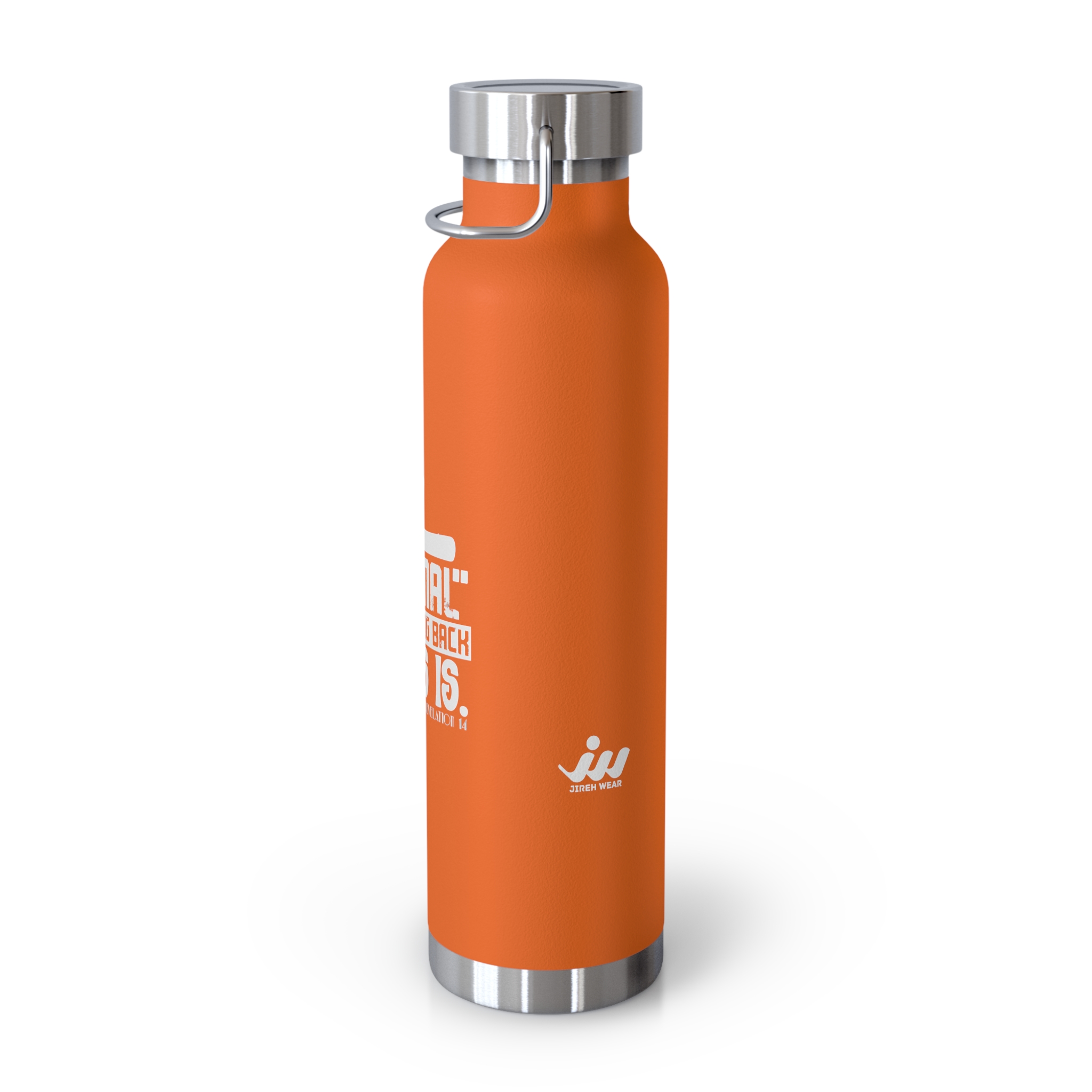 Carry a quiet, steady reminder of faith with this insulated 22oz bottle. The matte, powder-coated finish sits comfortably in hand, while the copper-backed double wall keeps beverages hot for hours or cold through long days. A spill-resistant stainless-steel screw lid with a durable hand loop makes it simple to grab and go. The bold graphic—a stylized cross with an encouraging message—reads like a small witness you can bring to the office, youth group, hike, or weekend errands. No sweat on the outside, room for ice, and a finish that stands up to daily life.