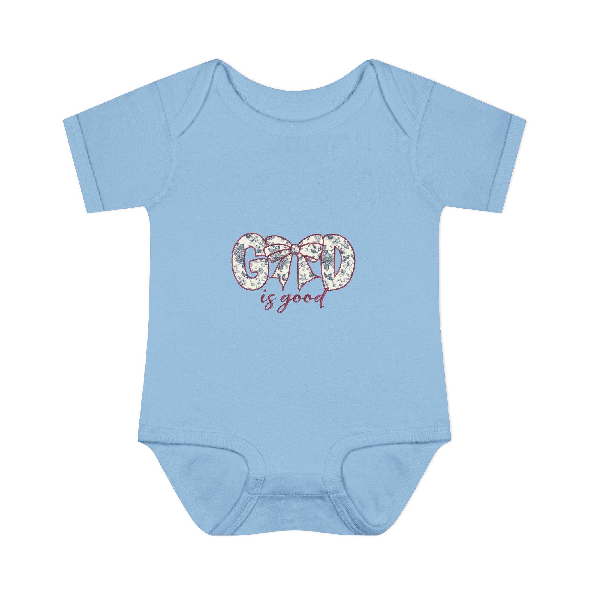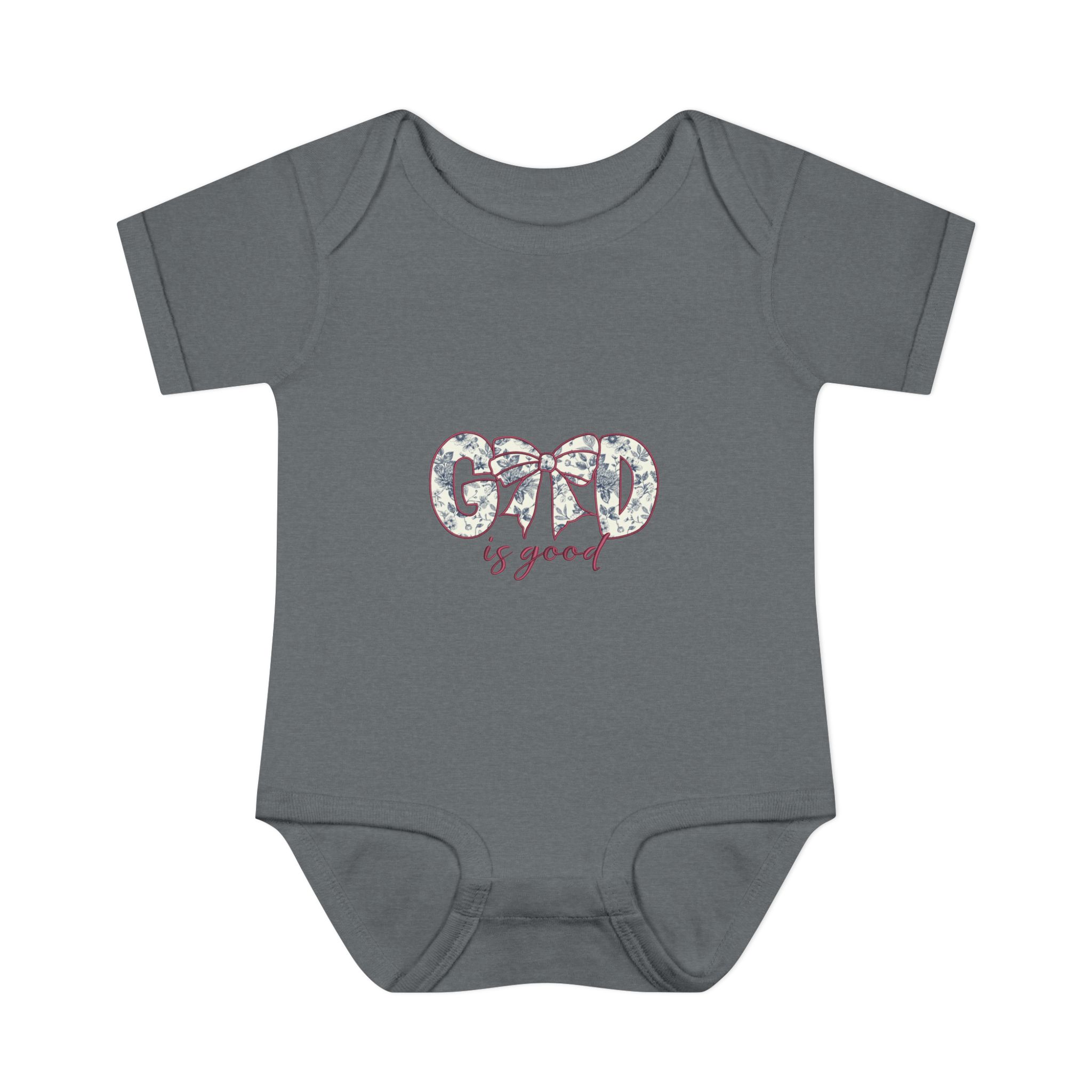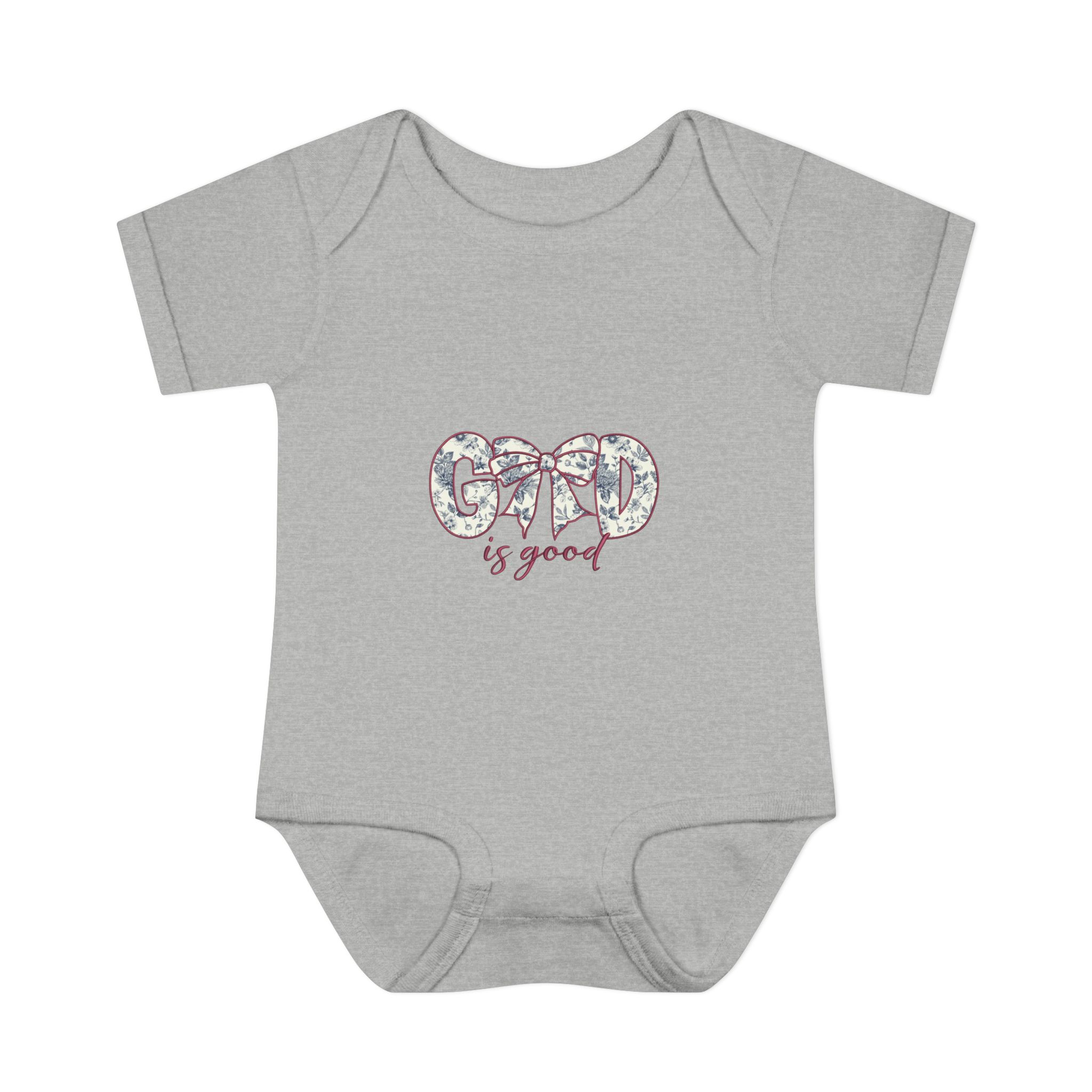 Soft, simple, and quietly sweet — this infant bodysuit is made for everyday cuddles and delicate moments. The light rib knit holds its shape while staying gentle against tiny skin. A small, floral-accented “Good is good” design sits at the chest, bringing a calm, optimistic touch without overwhelming the simplicity of the piece. The lap shoulder and three-snap closure make dressing and diaper changes gentle and fast. Breathable, lightweight fabric moves with baby and washes clean for repeated snuggles.