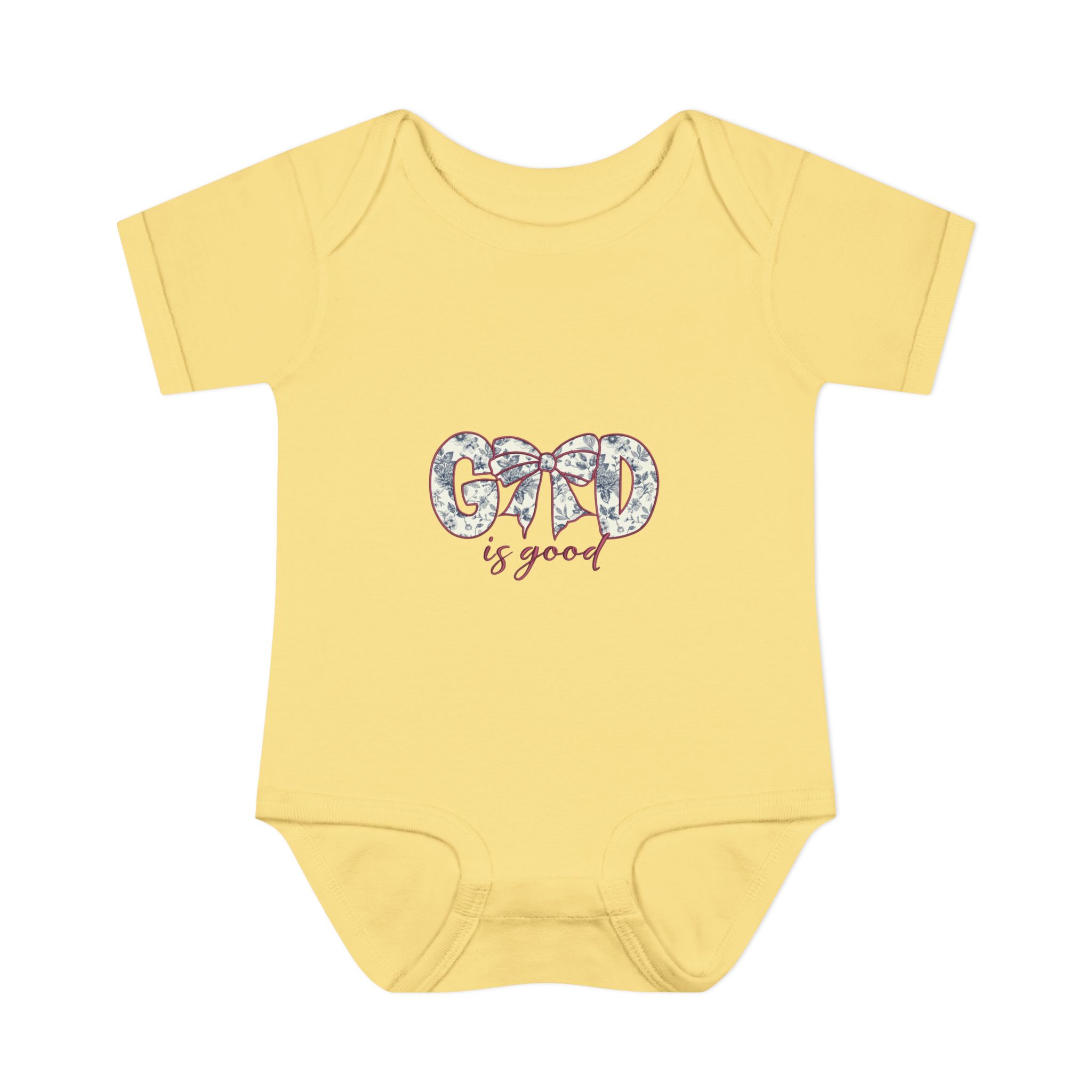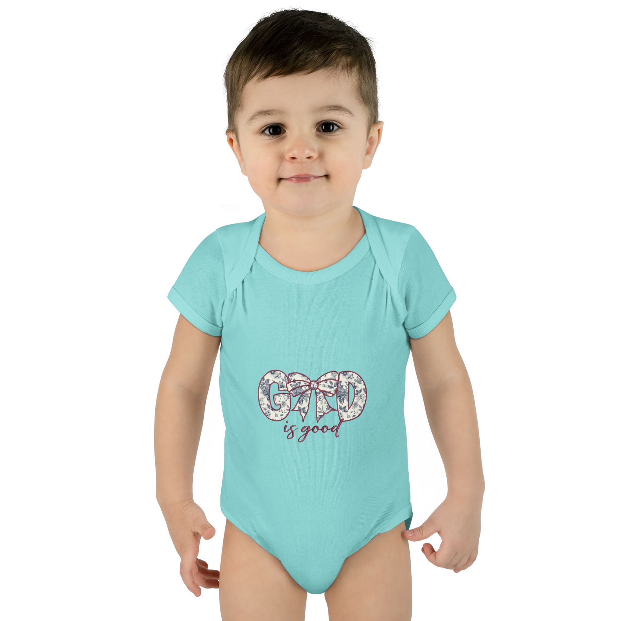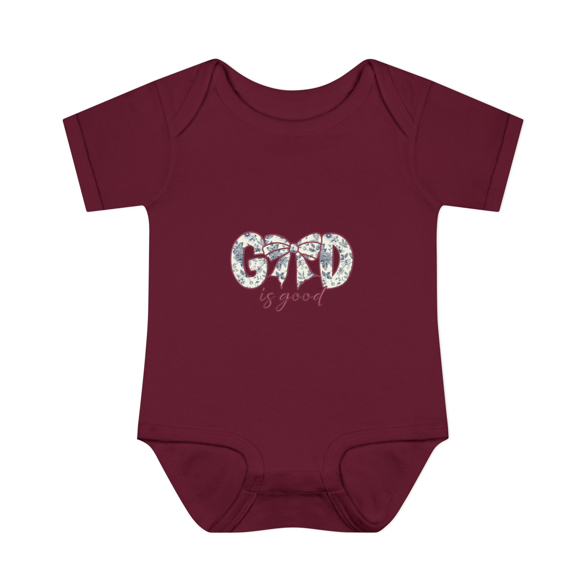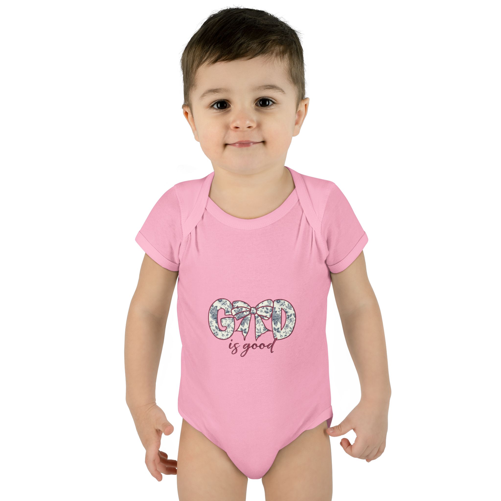 Soft, simple, and quietly sweet — this infant bodysuit is made for everyday cuddles and delicate moments. The light rib knit holds its shape while staying gentle against tiny skin. A small, floral-accented “Good is good” design sits at the chest, bringing a calm, optimistic touch without overwhelming the simplicity of the piece. The lap shoulder and three-snap closure make dressing and diaper changes gentle and fast. Breathable, lightweight fabric moves with baby and washes clean for repeated snuggles.