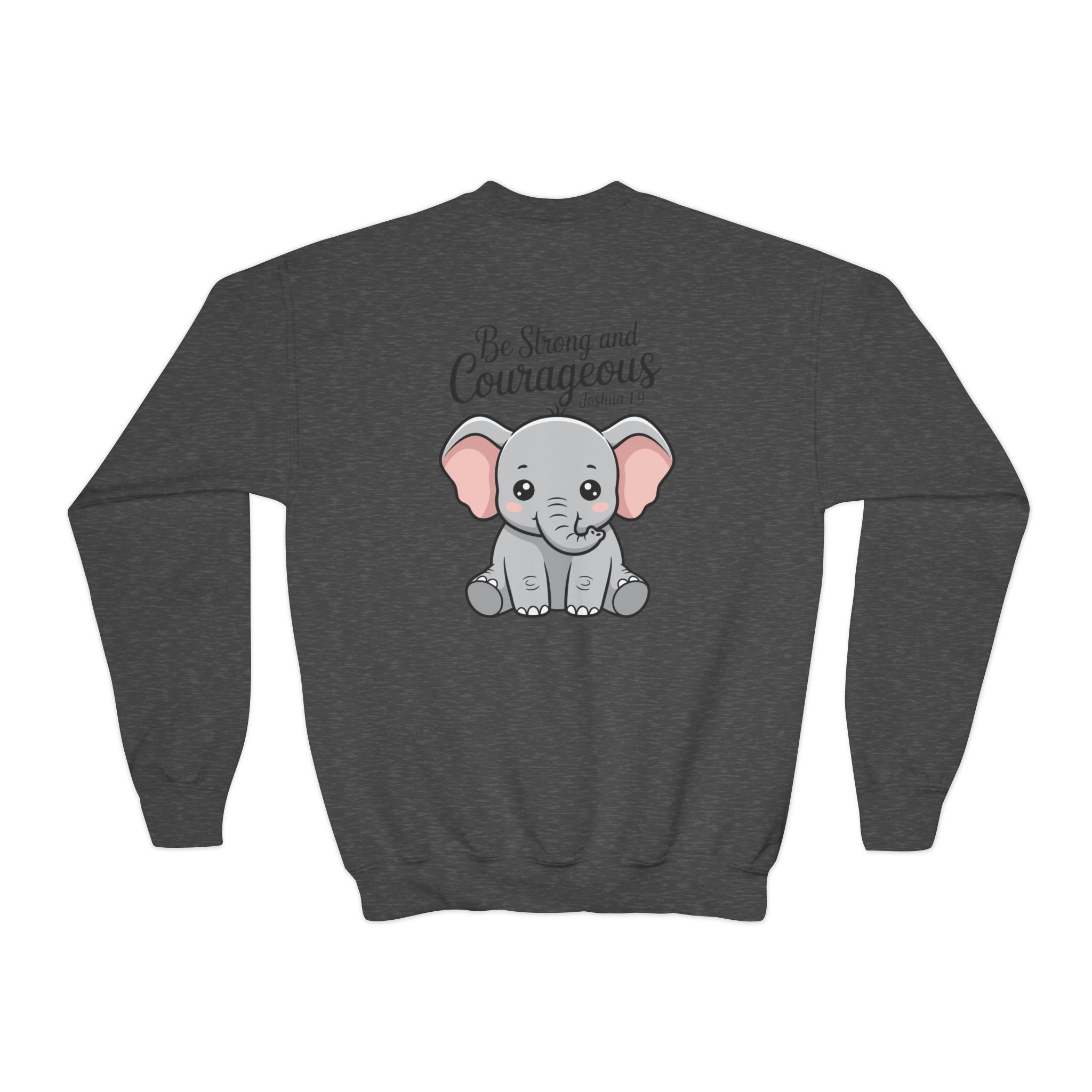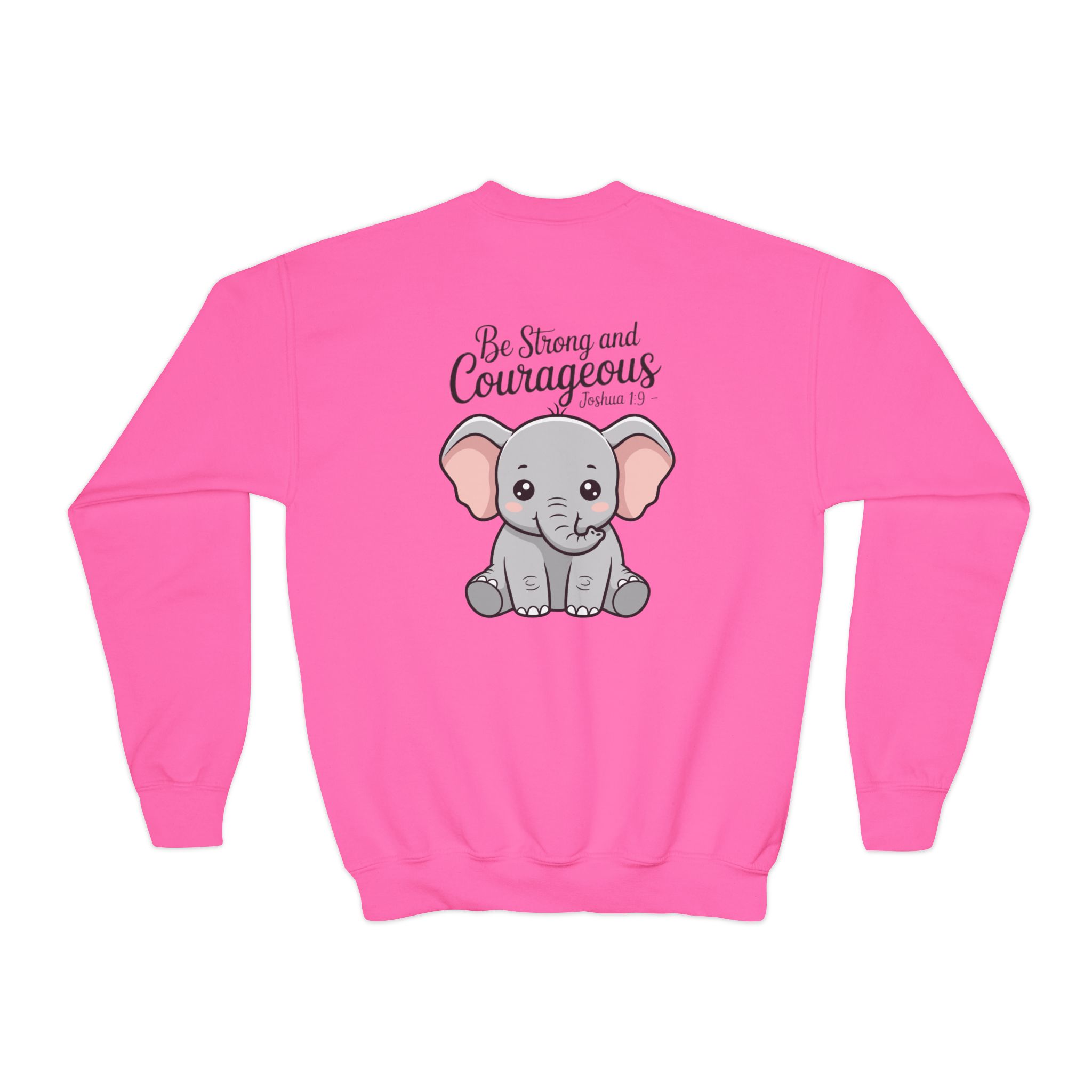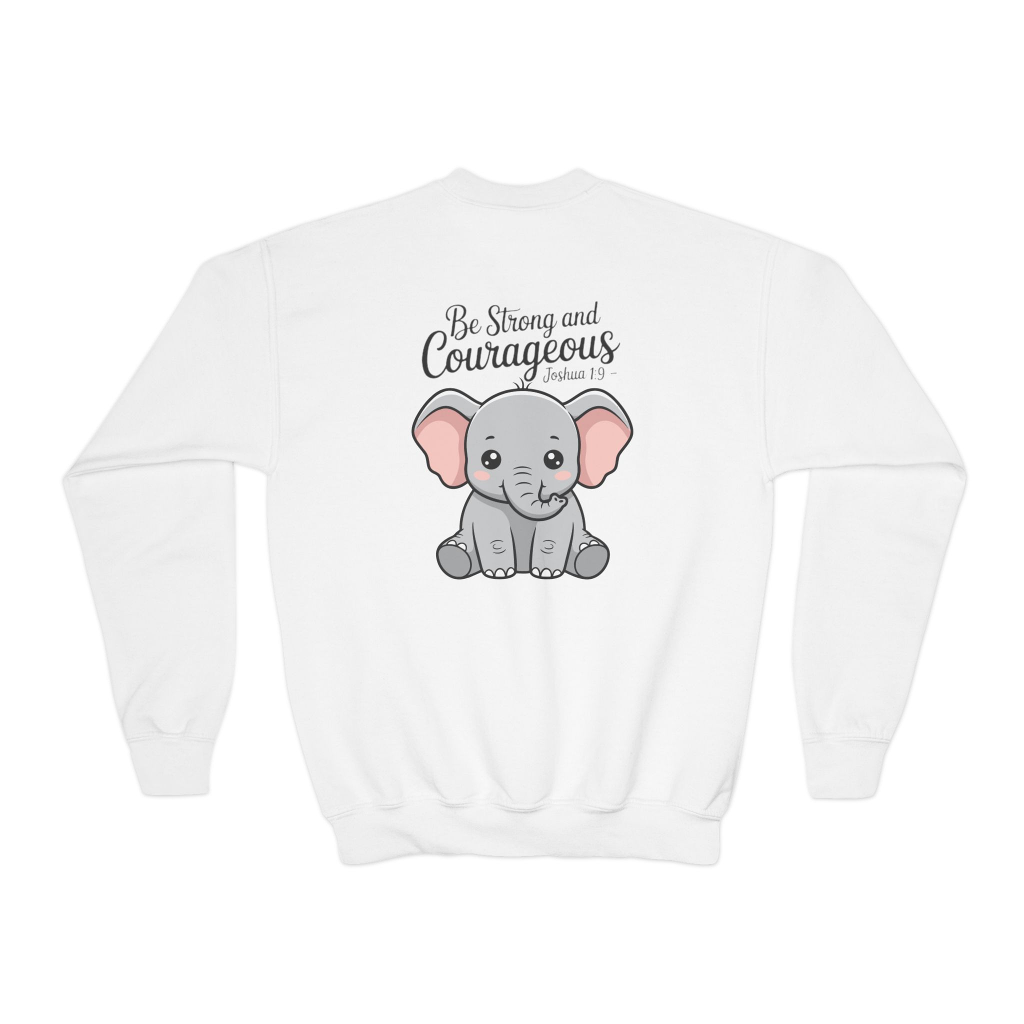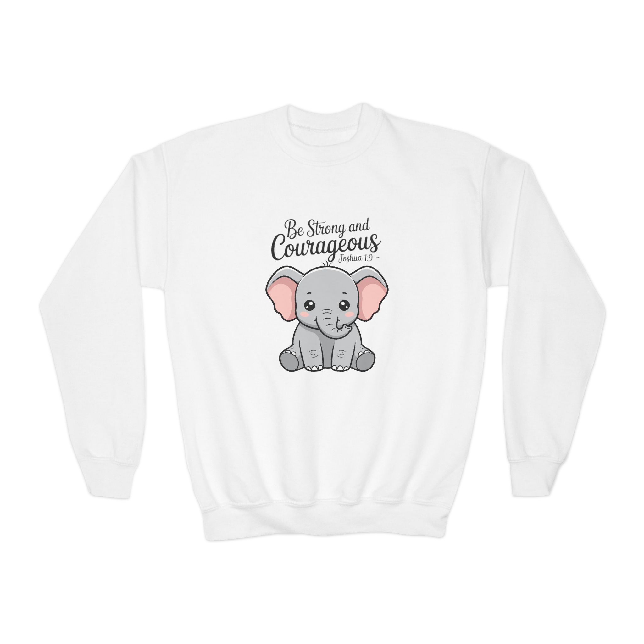 This cozy youth crewneck sweatshirt carries a soft, hopeful energy — a little elephant sketch sits at the center, with the gentle script “Be Strong and Courageous” above. The medium-heavy, tubular knit fabric feels substantial yet soft against skin, and the loose fit lets kids move freely while staying warm. The embroidered-ready front allows for a stitched chest detail, adding a handcrafted touch that complements the sweet illustration. Safe, compliant materials and a tear-away label make it comfortable for daily wear, whether layered for cooler mornings or worn solo on playdates. It’s a quiet reminder of bravery that kids can carry with them to school, church events, or family outings.