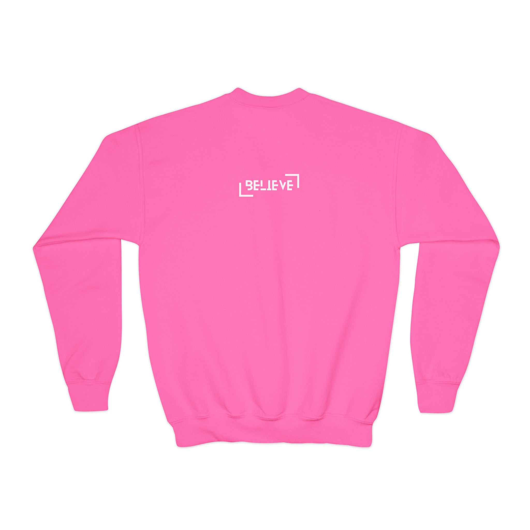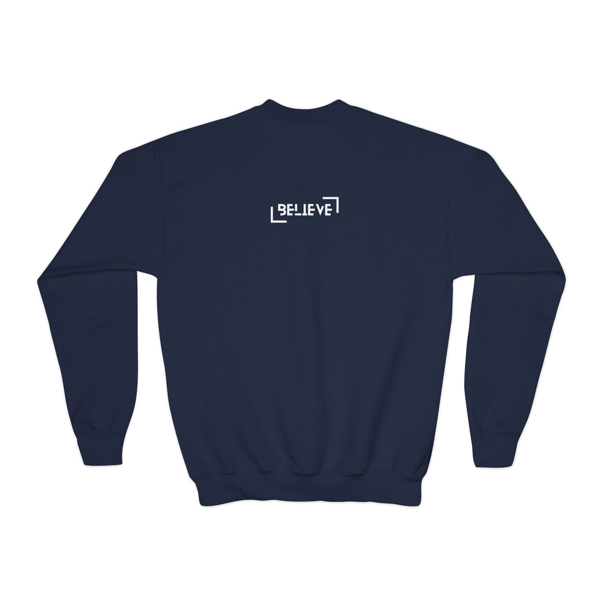 This cozy youth crewneck sweatshirt carries a quiet, confident message — a distressed “BELIEVE” boxed in simple brackets across the chest. Soft yet sturdy, it settles into a loose, comfortable silhouette that kids can move in all day, whether they’re layering up for school or lounging at home. The medium-heavy fabric feels substantial without being stiff, and the ribbed collar and cuffs keep shape after washes. Embroidery options add a tactile, handcrafted touch on the left or center chest. It’s the kind of sweatshirt a young person reaches for when they want a familiar comfort and a small reminder to keep going.