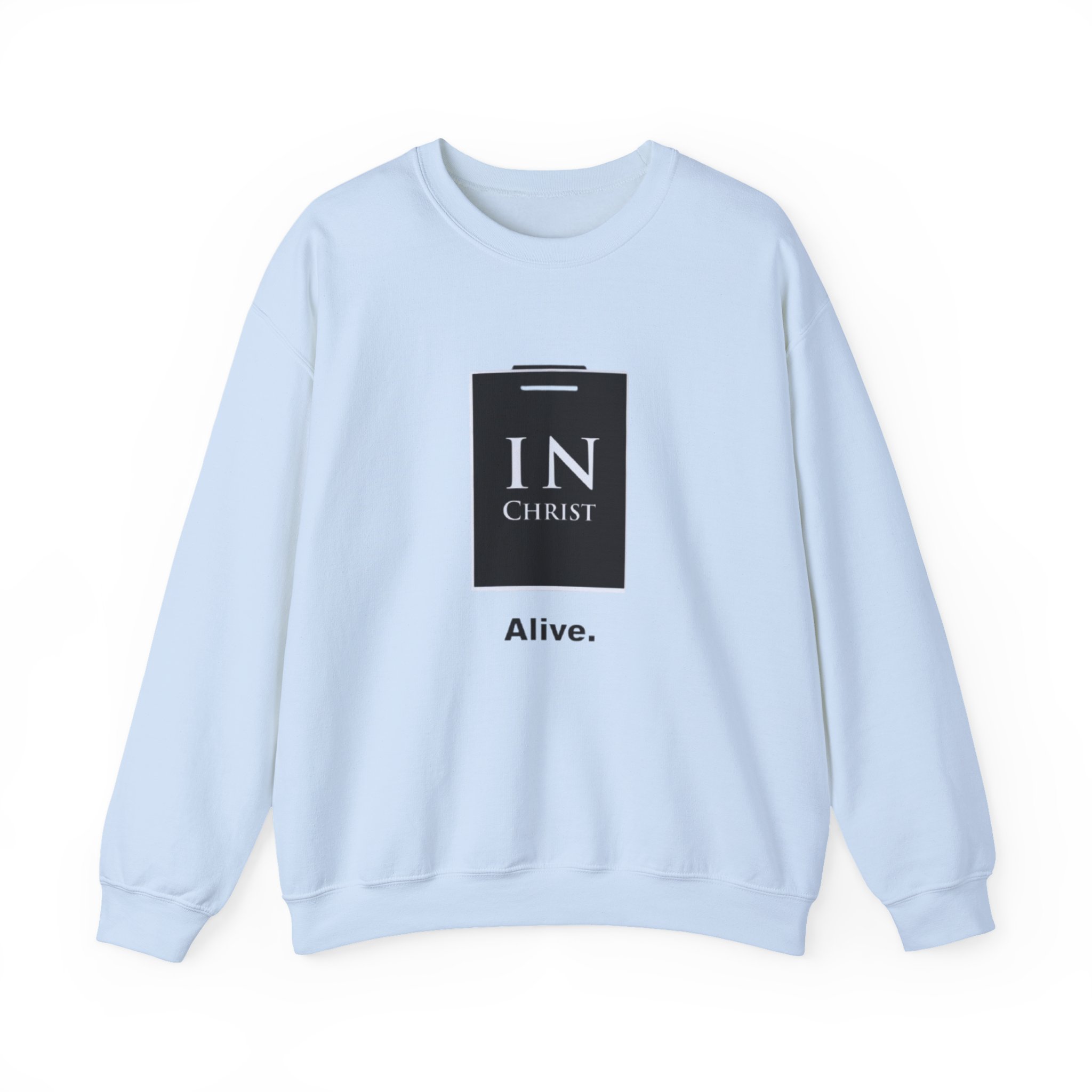 Soft, warm, and quietly confident — this crewneck wraps you in a calm reminder of faith. The clean white fabric anchors a minimalist black square print that reads “IN CHRIST” with a small “Alive.” beneath it. It feels like a wearable pause: a simple statement that opens conversations without shouting. The classic fit and medium-heavy knit give it weight and structure, while the tubular construction and ribbed collar keep the silhouette tidy over time. Wear it on slow Sunday mornings, after-service meetups, or while lounging with a bible study group — it moves from church hall to coffee shop with ease and keeps the message understated and sincere.