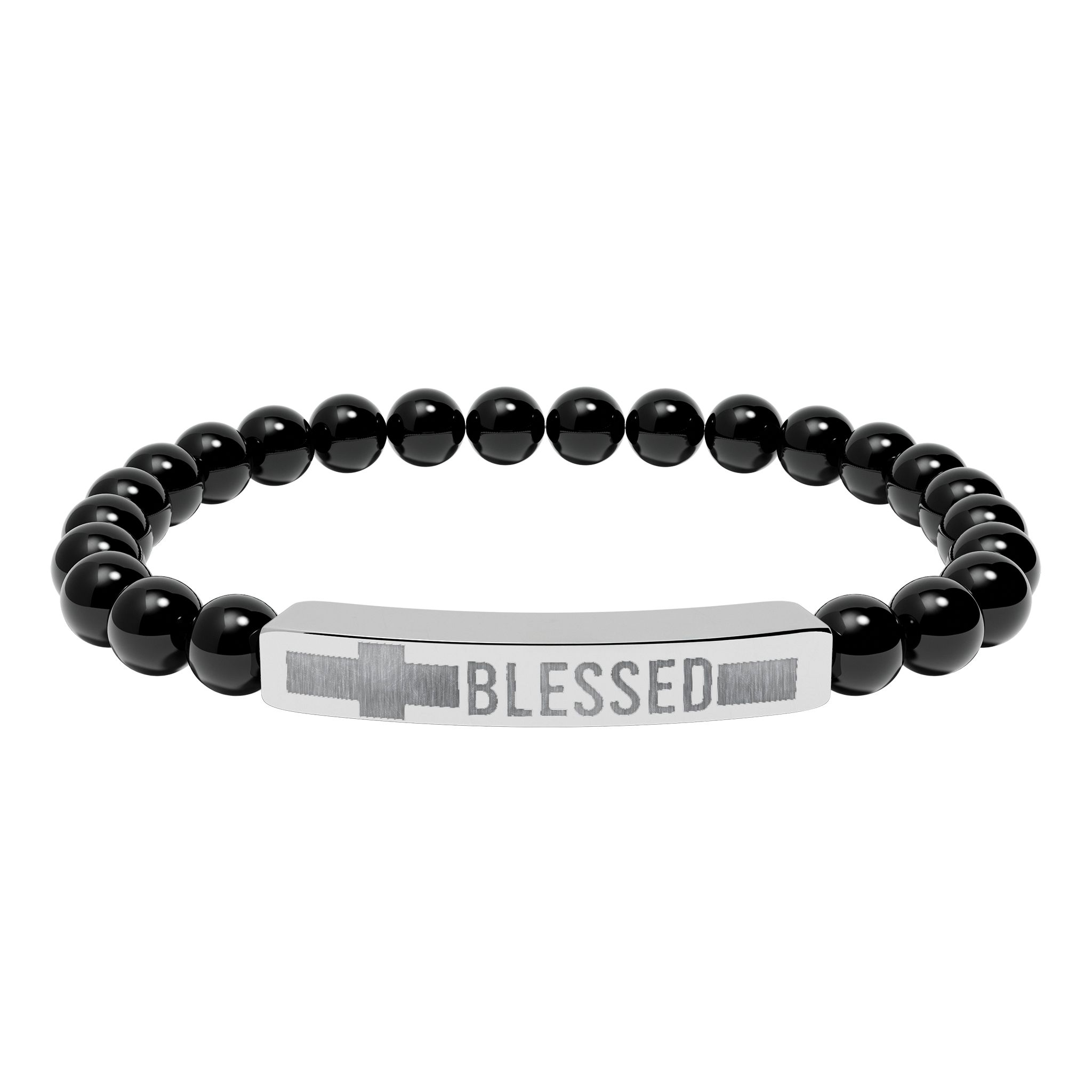 Blessed Natural Stone Stretch Bar Bracelet — Engraved Spiritual Beaded Bracelet
