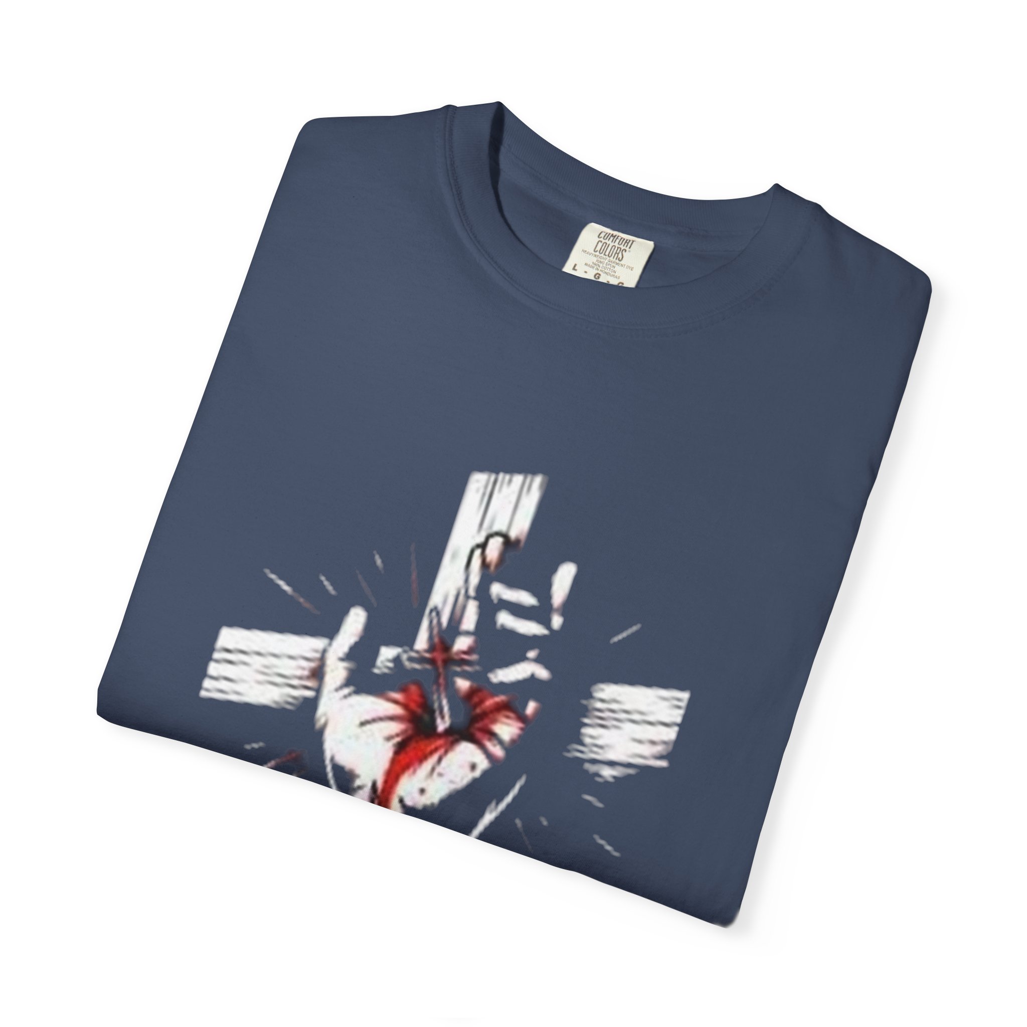This garment-dyed tee carries a quiet, grounded energy. A soft, lived-in black canvas hosts a simple illuminated cross at the center — a calm focal point that reads both reverent and modern. The relaxed fit and midweight cotton drape easily over everyday layers, moving from weekday routines to evening gatherings with understated presence. Wear it to feel anchored during moments of reflection, community worship, or casual fellowship. The subtle texture from garment dyeing gives the shirt a vintage warmth while the clean cross graphic keeps the look uncluttered and sincere.