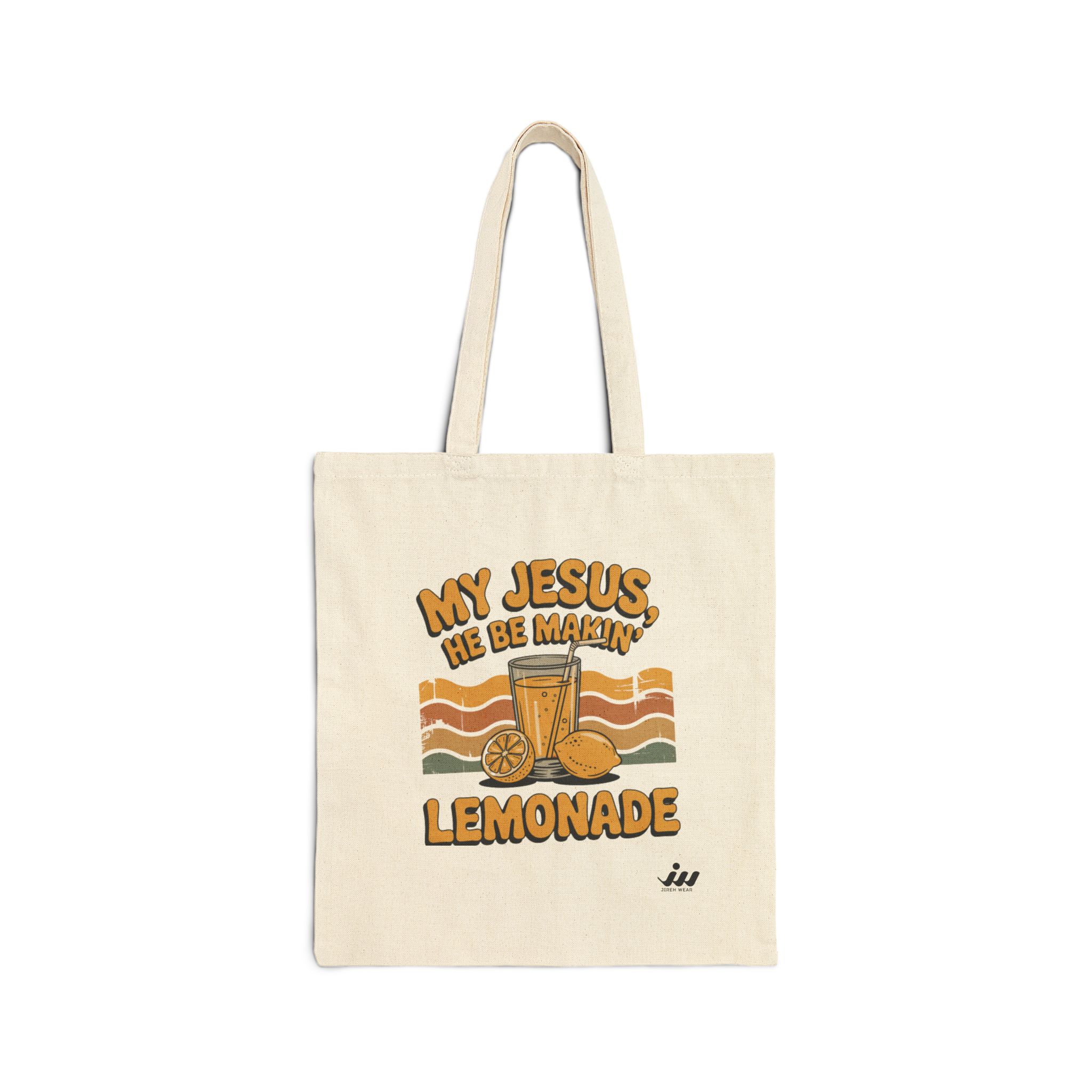 Christian Lemonade Tote Bag — “My Jesus, He Be Making Lemonade” Canvas Grocery Tote