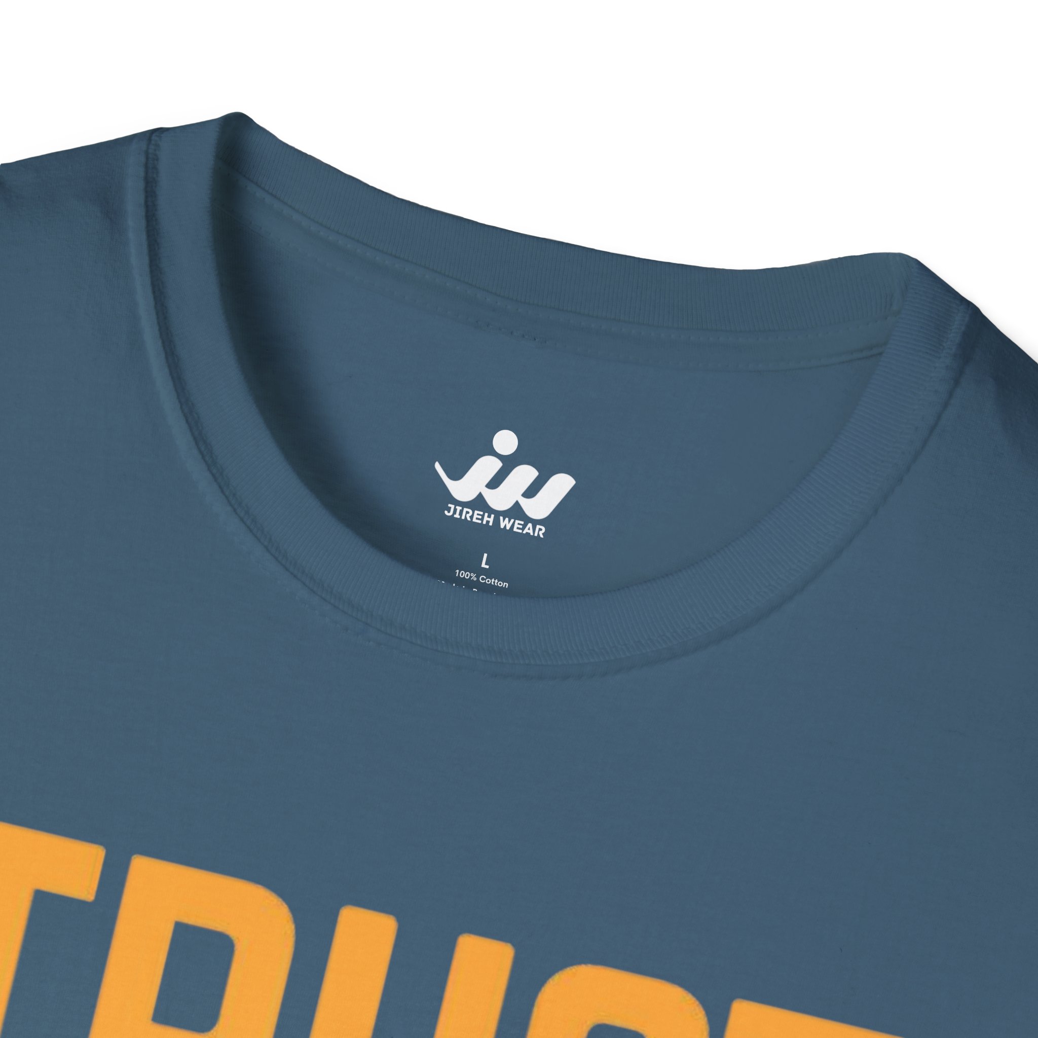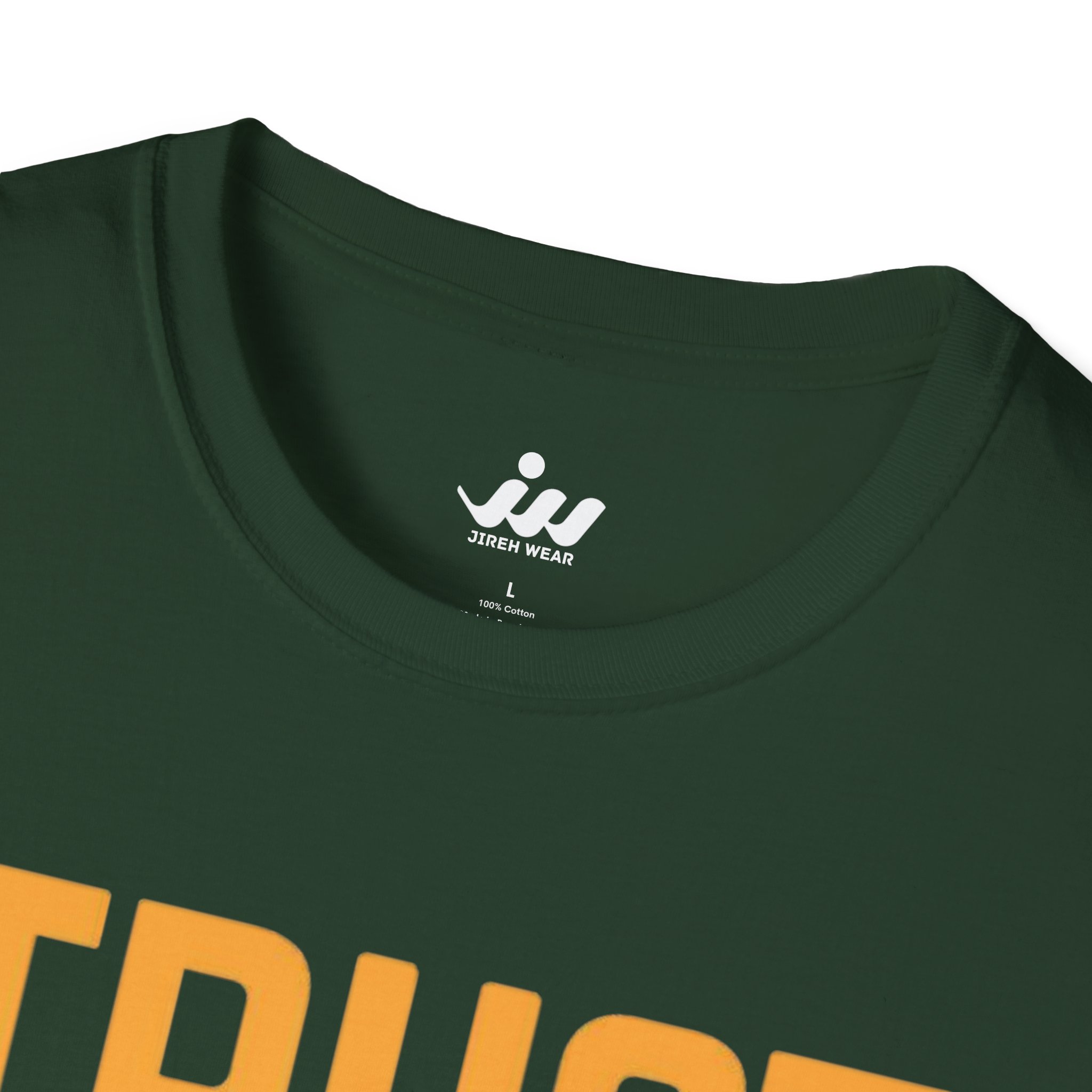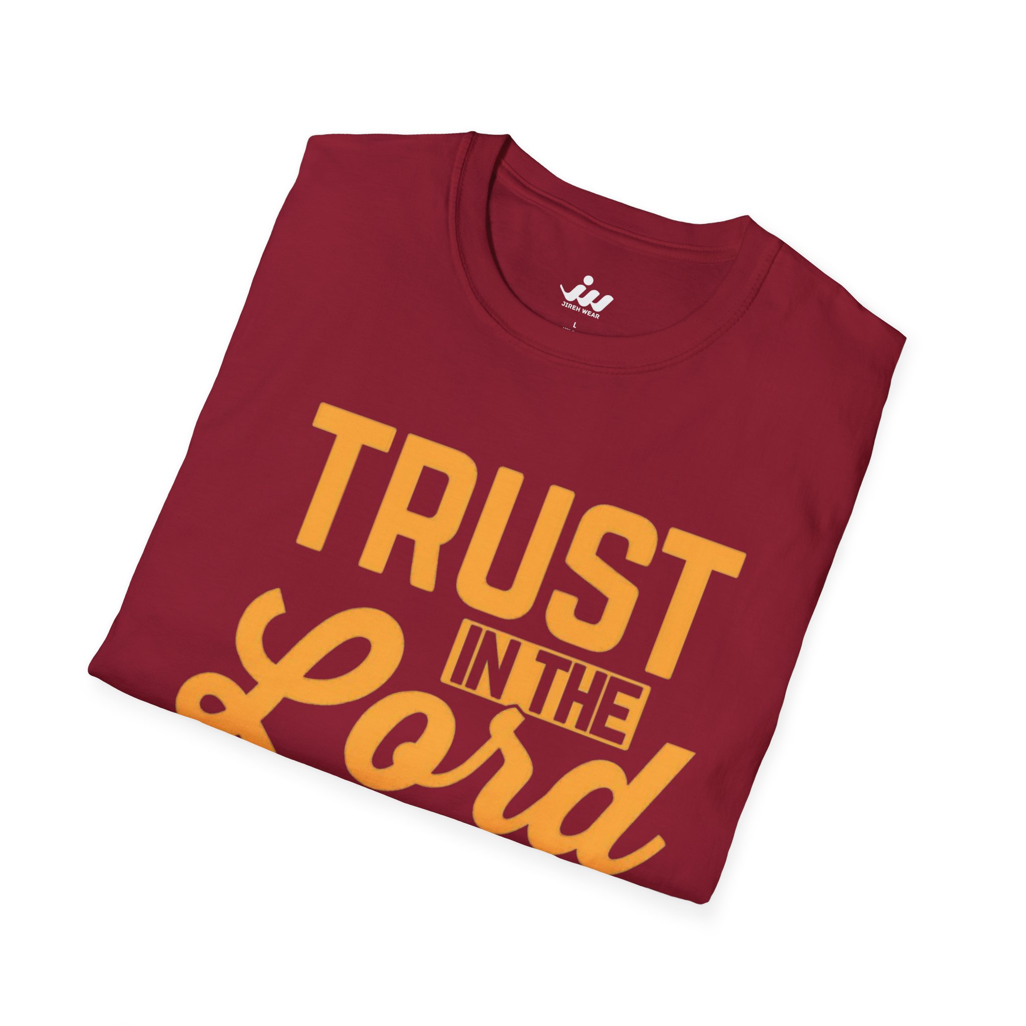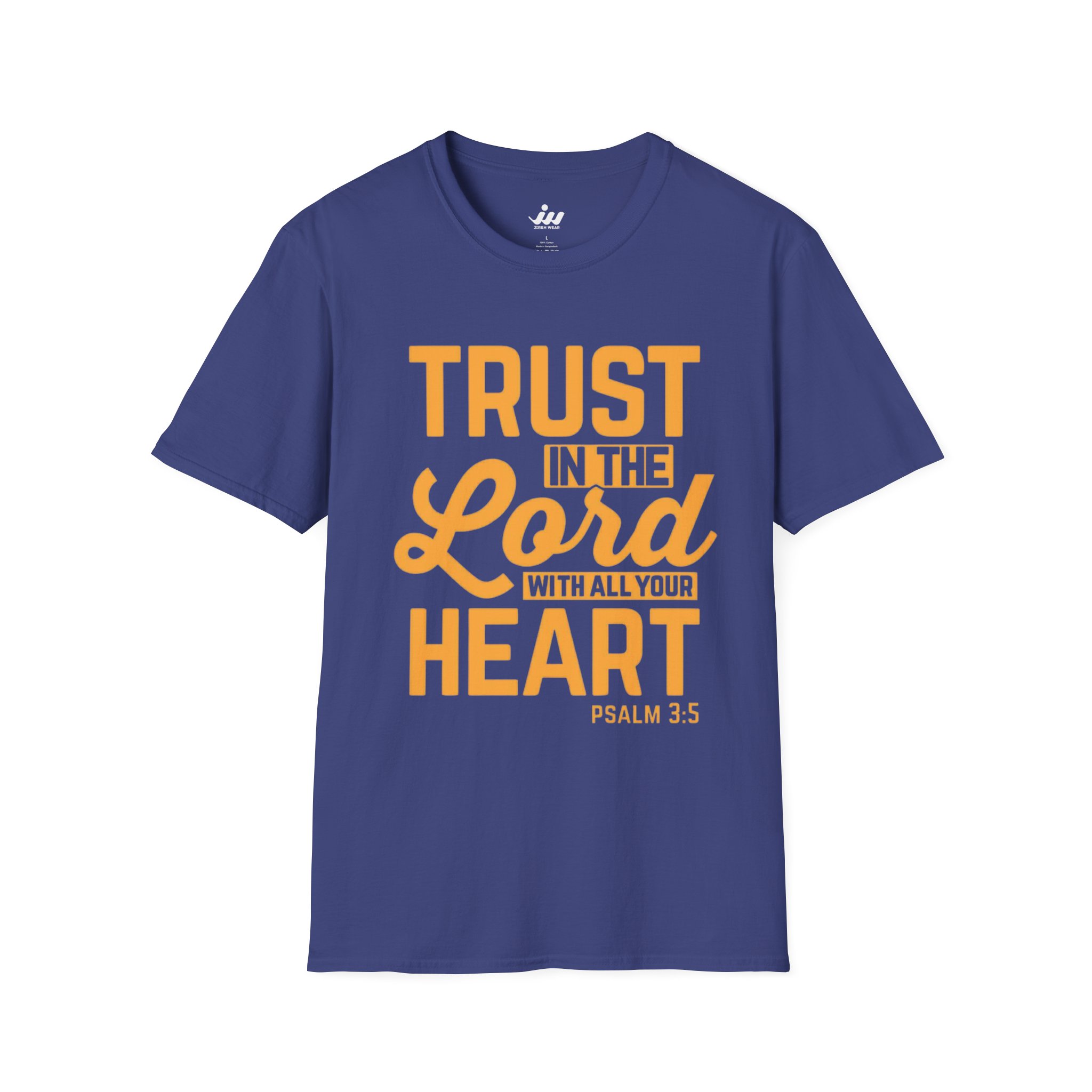 This lightweight cotton tee carries a quiet, faith-filled message that feels like a steady anchor. The bold, warm-lettered design—“Trust in the Lord with all your heart — Psalm 3:5”—sits cleanly on the chest, readable from a distance but gentle up close. Wear it to church, on morning walks, or when you need a wearable reminder of calm and conviction. The crew neck and classic fit let the message lead while the shirt stays comfy and simple. It layers easily under jackets or stands alone as a personal statement of belief.
