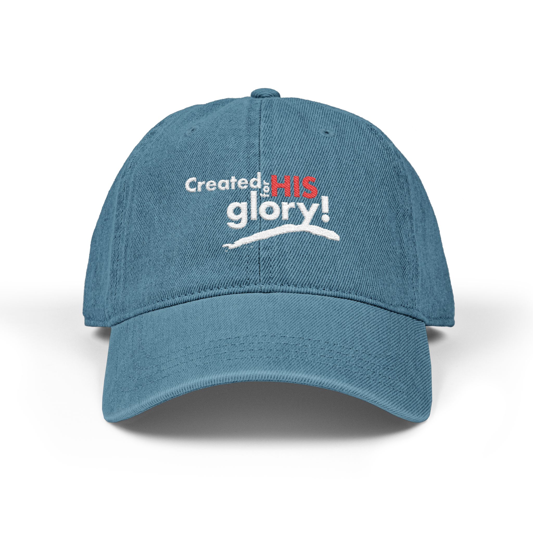 This soft, pigment-dyed denim hat brings a lived-in, vintage feel to everyday wear. The low-profile, unstructured six-panel crown sits softly on the head, letting the embroidered message stand out without being stiff or bulky. Subtle distress-like tones from the pigment dye deepen with time, so the cap ages alongside your stories. An adjustable strap and secure metal buckle ensure a comfortable fit across a wide range of head sizes, while four rows of visible stitching on the visor and six sewn eyelets add handcrafted detail. Wear it on quiet mornings, mission runs, or casual gatherings — it’s built to be part of your daily rhythm, not just another accessory.