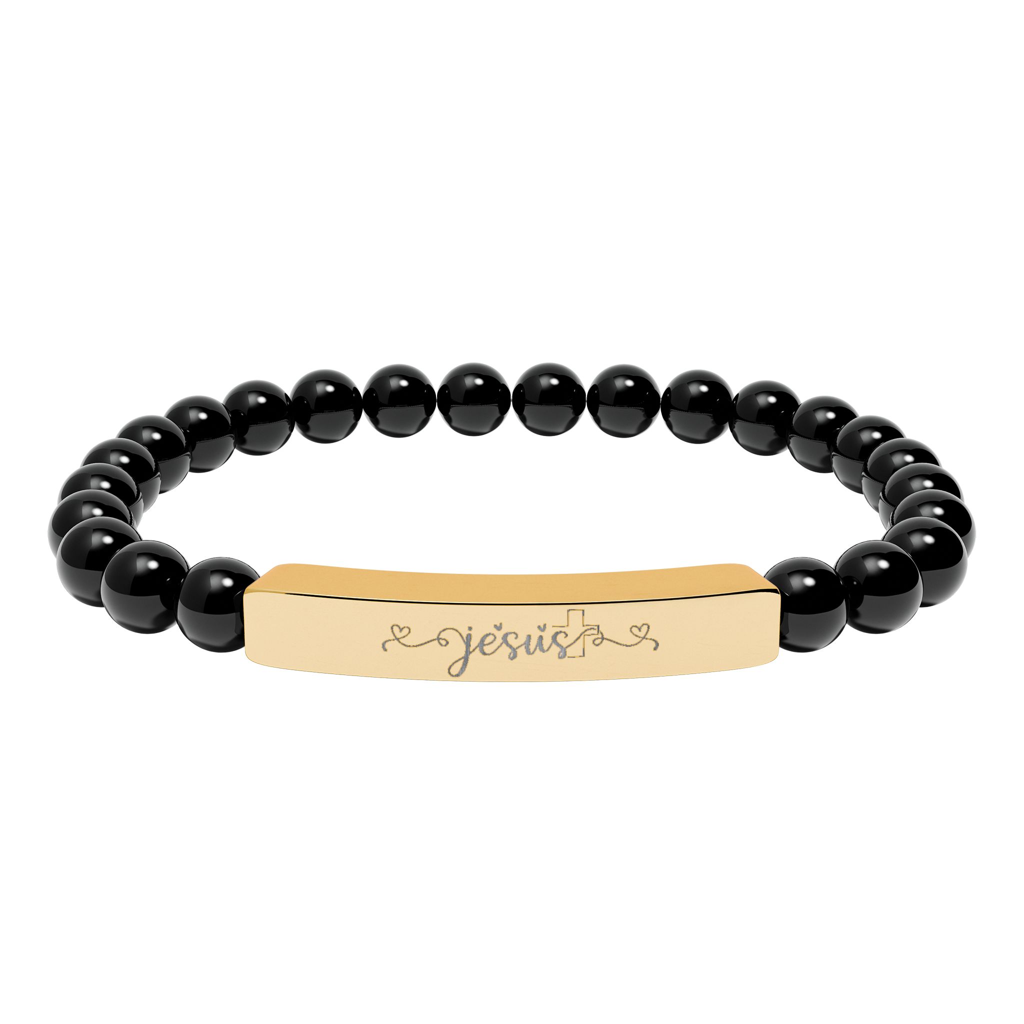 Engravable Natural Stone Bead Bracelet — Stretch Bar Bracelet with Personalized Engraving