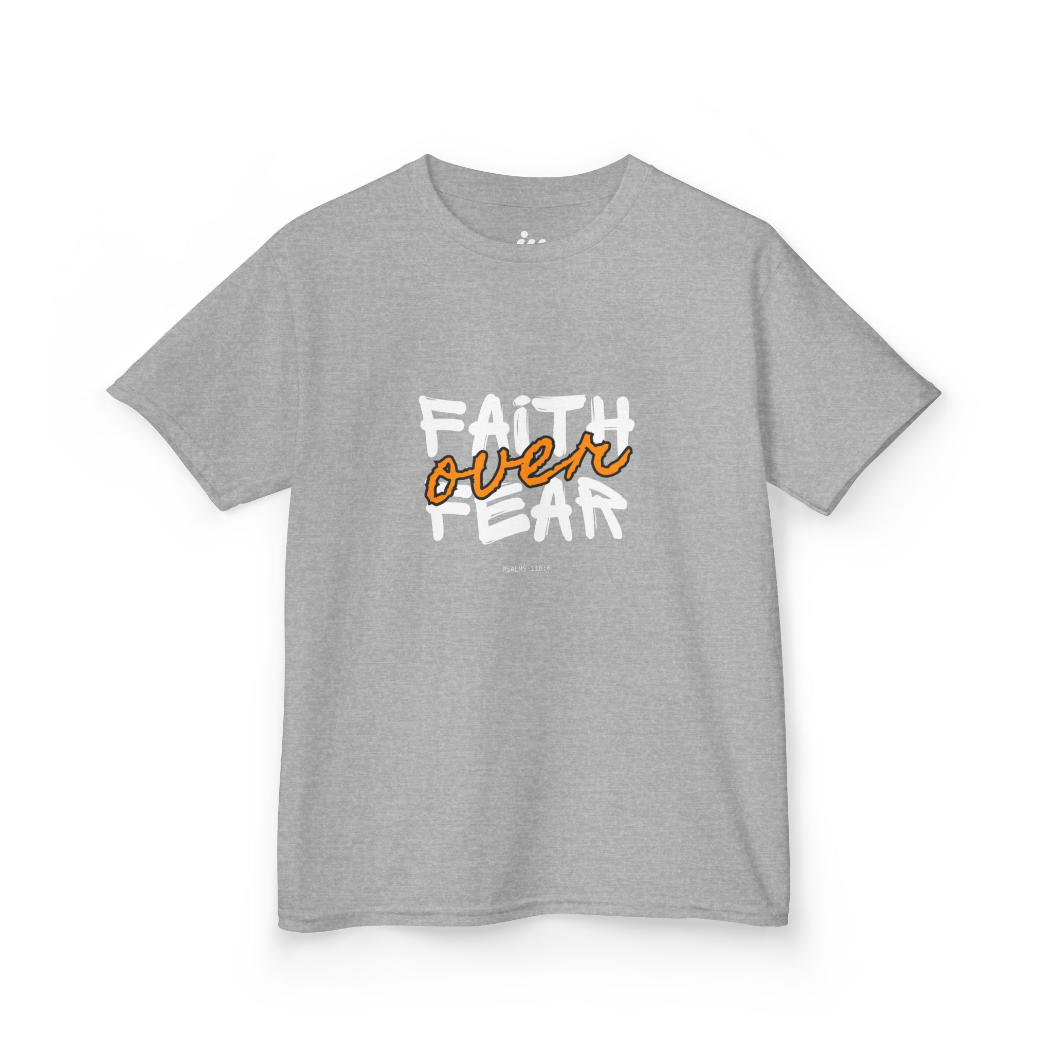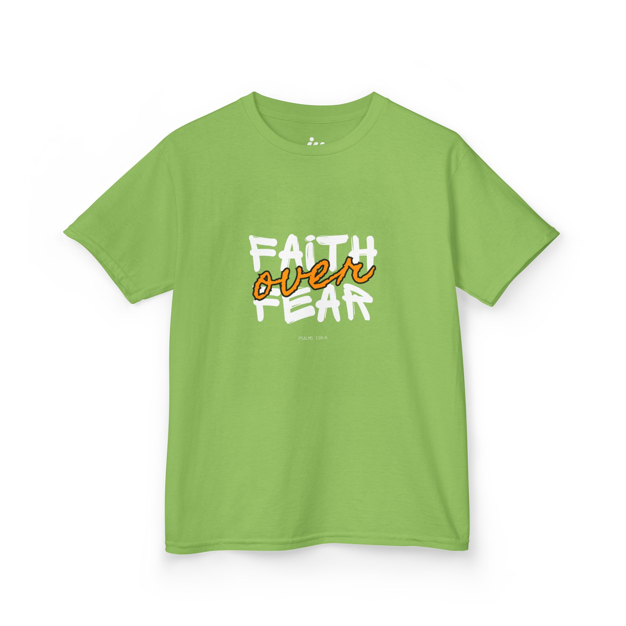 Soft, simple, and made to be worn with confidence. This kids tee carries a bold hand-lettered message — ‘Faith over Fear’ — that reads like a little rally cry for brave mornings, church outings, and backyard adventures. The midweight cotton feels comfortable year-round and holds its shape through play and washes. The crew neckline and classic fit keep the silhouette familiar and easy to layer under hoodies or over long sleeves. Let this shirt be the quiet reminder they wear when they need a boost: steady, hopeful, and ready for whatever comes next.