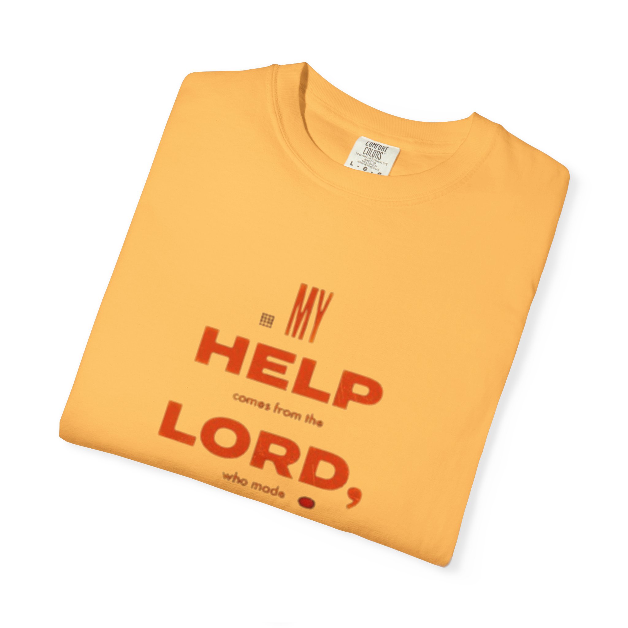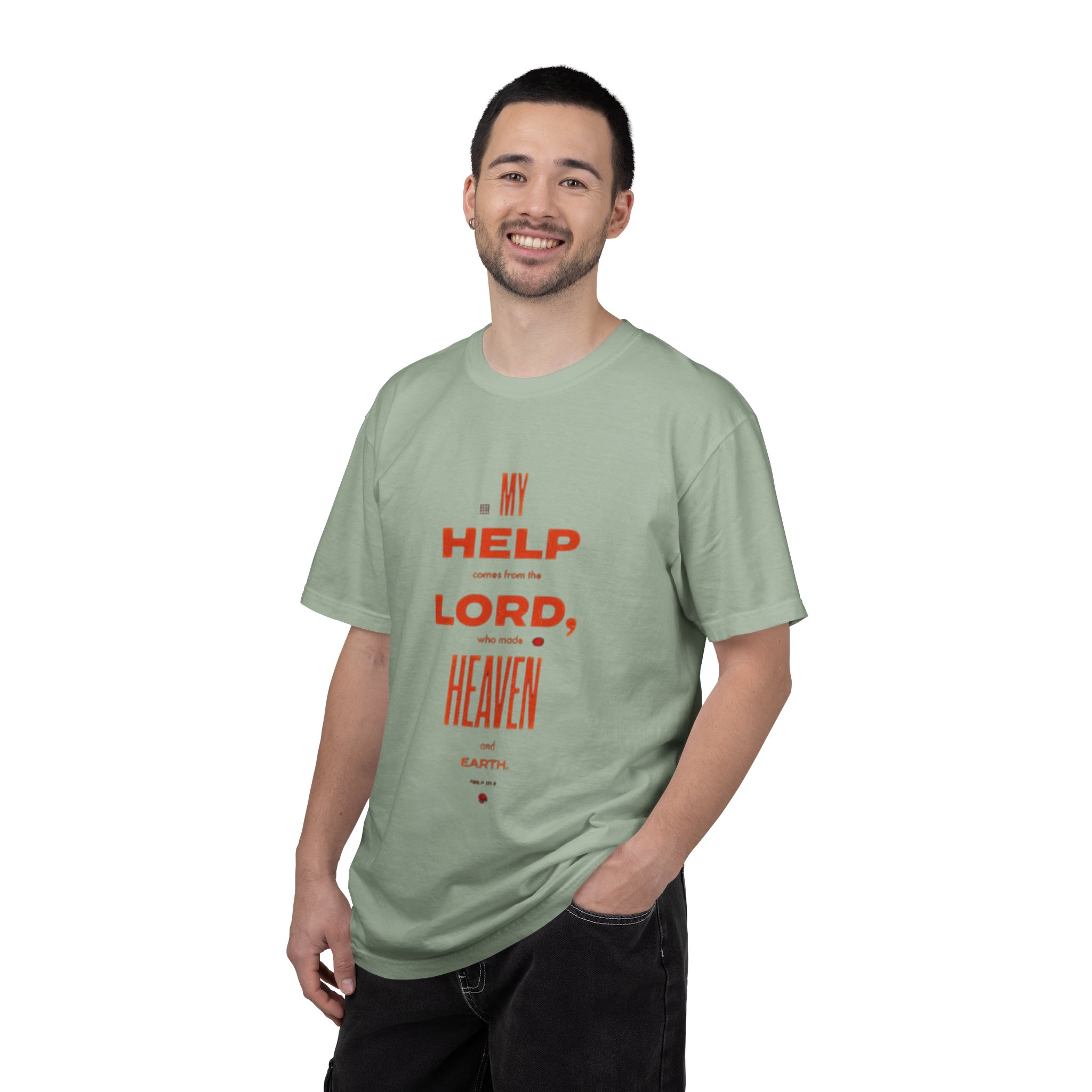 This garment-dyed tee feels lived-in from the first wear. The heavyweight, ring-spun cotton drapes with a relaxed, roomy silhouette that still reads neat and intentional. A centered, vertical text design in warm rust-red sits on a clean white field — quiet faith made visible without shouting. Wear it on slow Sundays, early morning runs, or when you want a simple reminder of hope tucked under a jacket. The soft, slightly faded finish and tubular knit give it a vintage, low-fuss personality that mixes easily with jeans, layers, or workwear staples.
