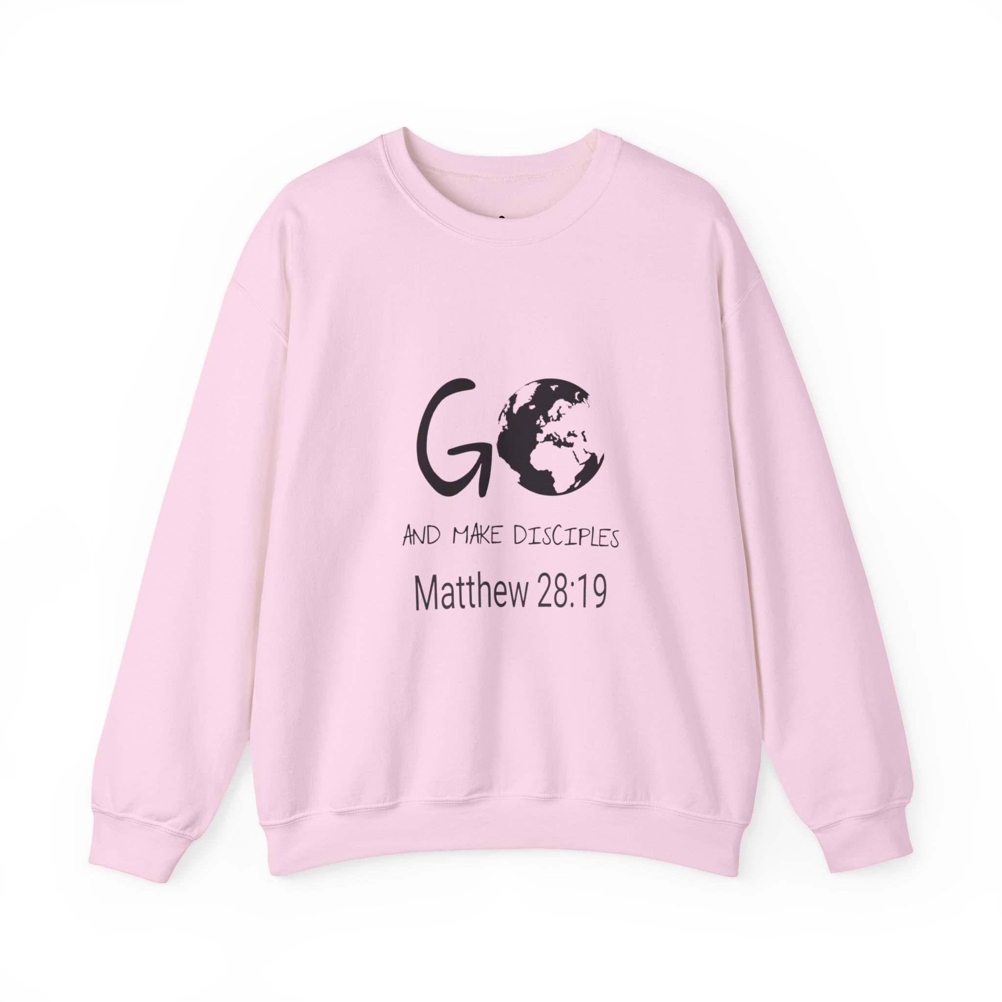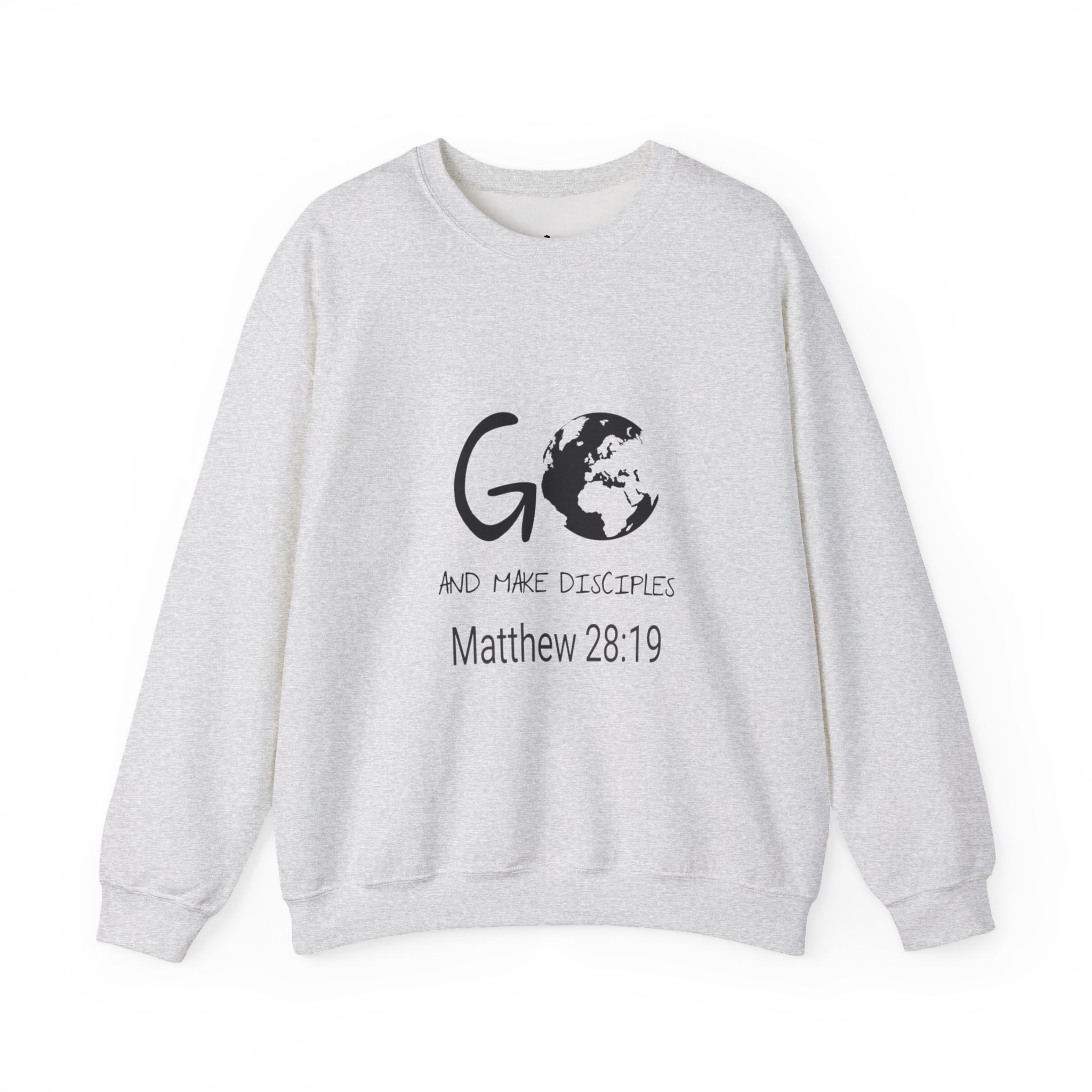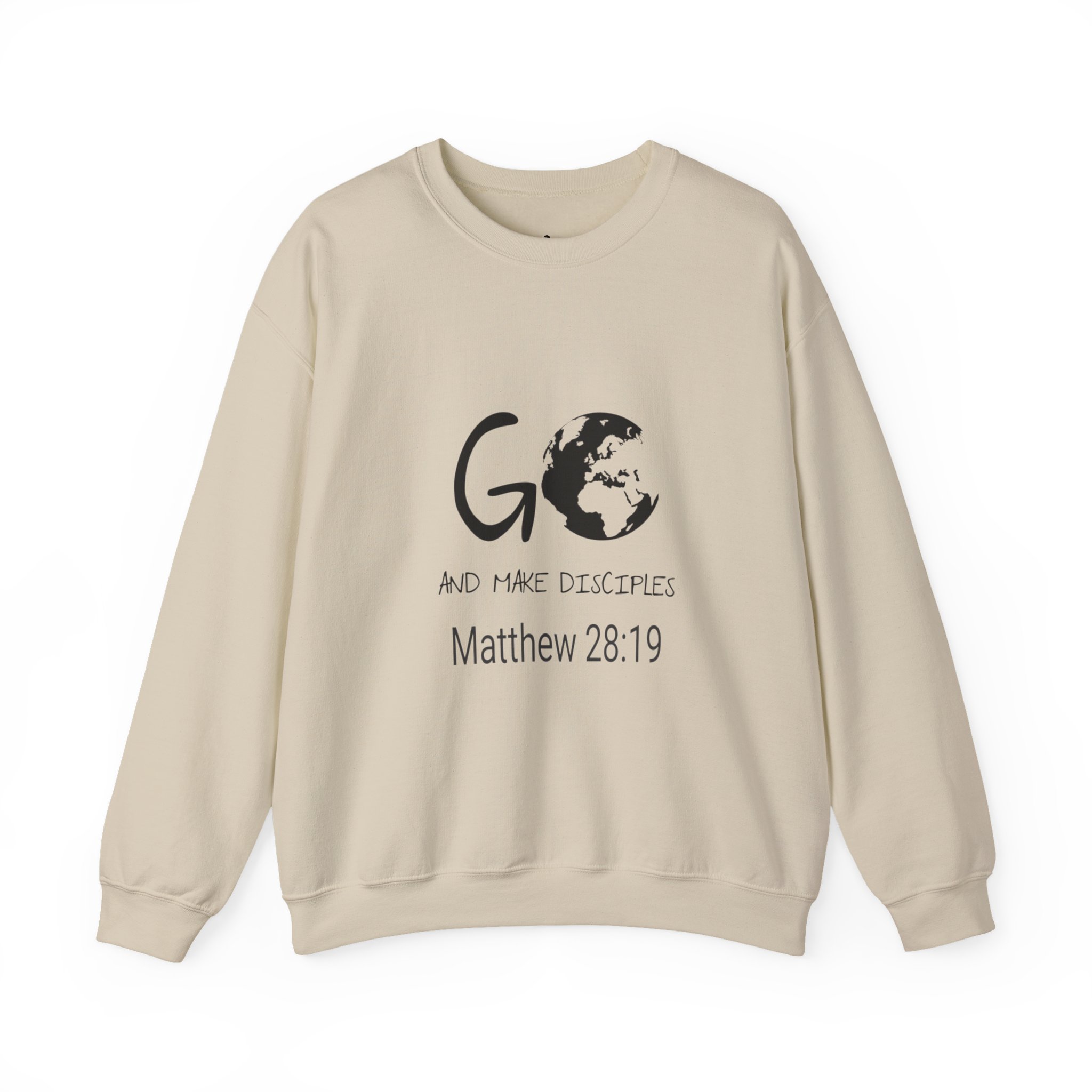 This cozy crewneck sweatshirt brings faith into everyday wear with quiet confidence. A soft, mid-weight 50/50 cotton-poly blend holds a simple, hand-drawn globe graphic paired with the words “Go and make disciples” and the Matthew 28:19 reference — subtle scripture that speaks during coffee runs, Sunday fellowship, or volunteer outreach. The clean white canvas and minimalist design let the message sit naturally with layered looks or worn solo. Thoughtful construction — ribbed collar, tubular knit with no side seams, and double-needle stitching — keeps the shape while feeling lived-in and dependable. Wear it to morning Bible study, mission trips, or slow afternoons at home; it’s meant to comfort and quietly carry the call to share faith.