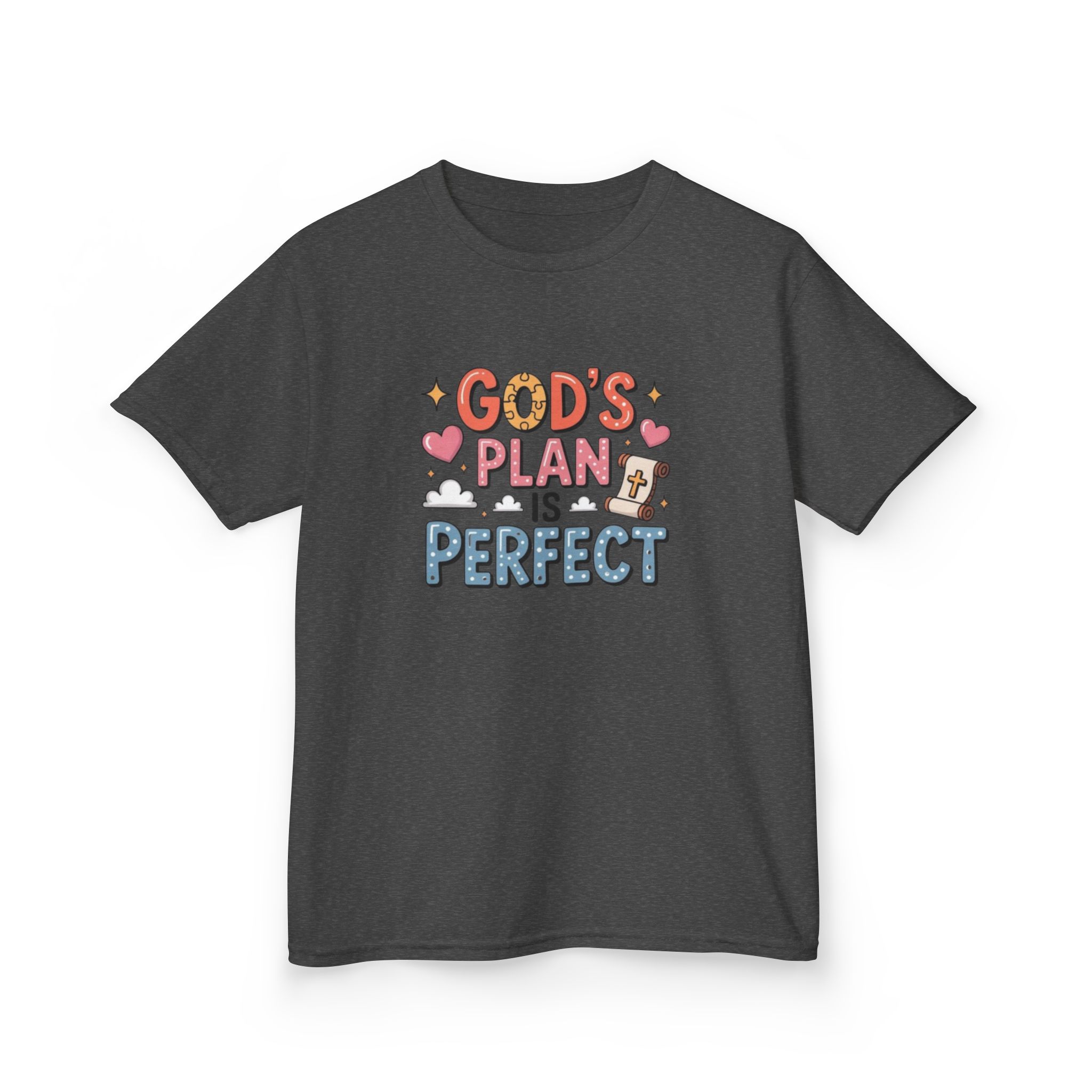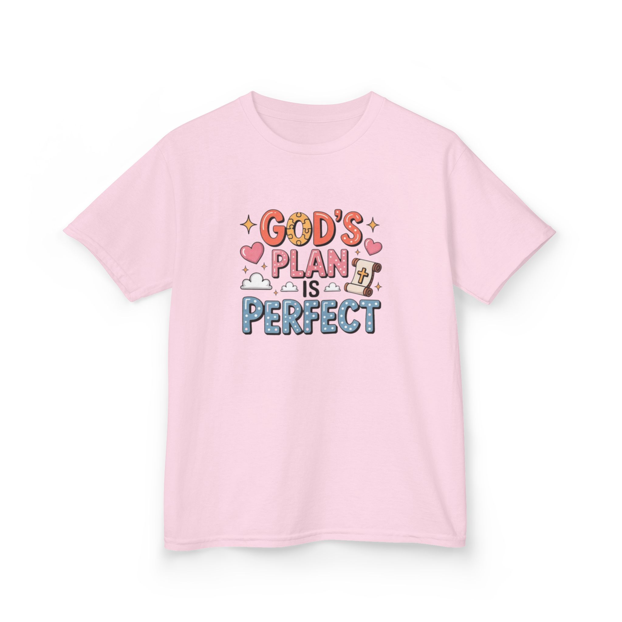 Soft, durable, and full of small joys — this kids tee carries a gentle, faith-filled message in a playful hand-lettered design. The center artwork reads “God’s Plan is Perfect,” surrounded by tiny hearts and cloud accents in warm, comforting colors. It sits on a midweight 100% US cotton body that holds its shape and feels soft against a child’s skin. The classic crew neck and timeless cut make it an easy choice for everyday adventures, Sunday mornings, or quiet moments of gratitude. Ethically sourced and Oeko-Tex certified, the shirt lets caregivers feel good about both comfort and conscious production.