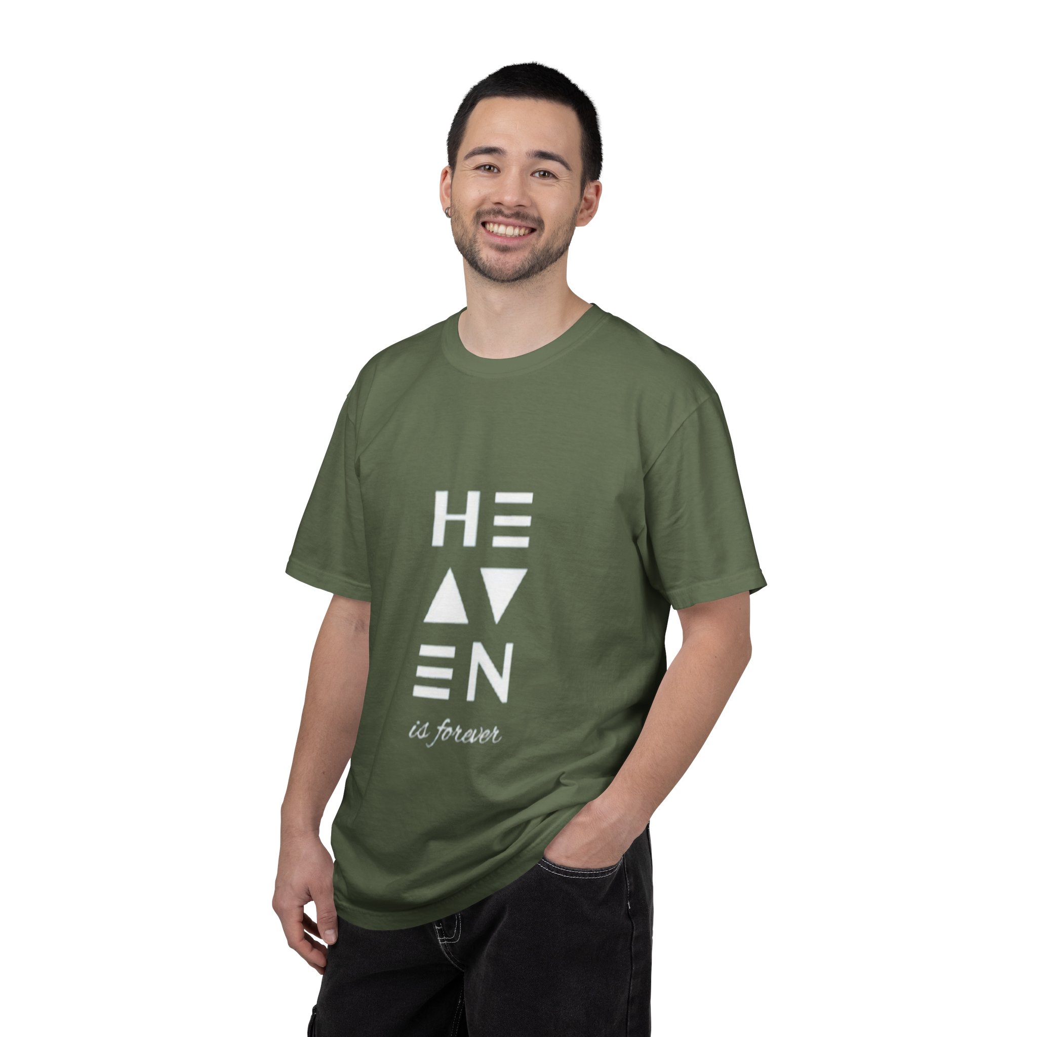 This relaxed, garment-dyed tee carries a quiet, contemplative energy. The bold, geometric “HEAVEN” layout and soft script beneath read like a gentle reminder—subtle, thoughtful, and modern. The heavy-weight cotton and garment-dye finish give the shirt a lived-in softness and muted color depth that ages beautifully. Wear it on slow mornings, at small gatherings, or when you want a simple piece that feels personal and familiar. The roomy cut and durable construction make it a dependable layer for everyday life and moments that call for calm confidence.