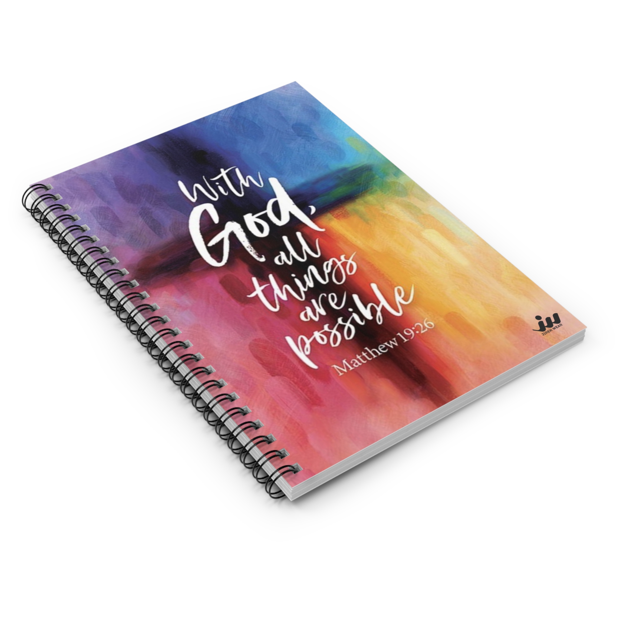 A spiral-bound ruled notebook that feels like a quiet moment of hope in your day. The front cover’s vibrant watercolor cross blooms with warm and cool tones, centered by the hand-lettered verse “With God, all things are possible” (Matthew 19:26). Inside, smooth 90gsm lined pages invite prayers, sermon notes, lists, and reflections, while a neat document pocket on the inside back cover keeps loose papers close. The sturdy 350gsm covers and dark grey back provide solid support whether you’re writing at a kitchen table or tucked into a pew. Lightweight and portable at 6 x 8 inches, it slips into a tote or Bible cover and brings a meaningful reminder each time you open it.