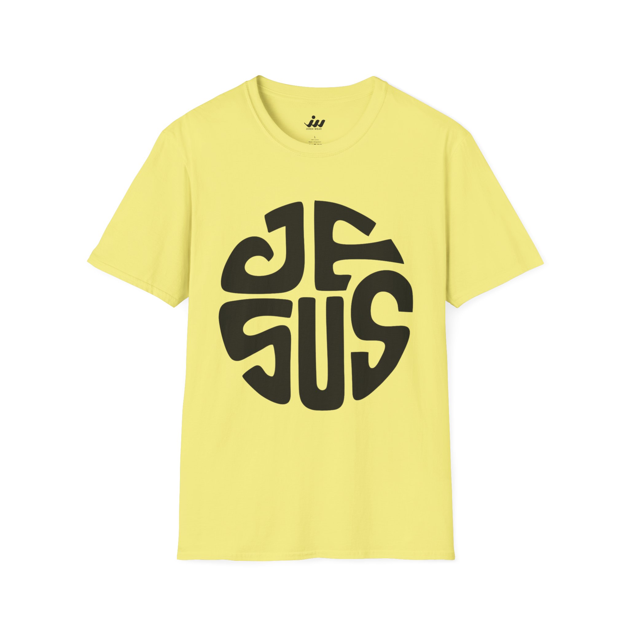 Soft, simple, and quietly expressive — this lightweight crew tee carries a stylized circular “JESUS” graphic that reads like a modern emblem. The smooth, ring‑spun cotton feels breathable against the skin while the clean silhouette layers easily under jackets or stands alone with jeans. Wear it to small group meetups, Sunday gatherings, or while volunteering; the graphic speaks in a subtle, contemporary way that resonates without shouting. The collar keeps its shape, the shoulder tape prevents stretching, and the tear‑away label keeps the back of your neck comfortable. It’s a shirt made to be lived in — for everyday faith, community moments, and those times you want your message to feel intentional and calm.