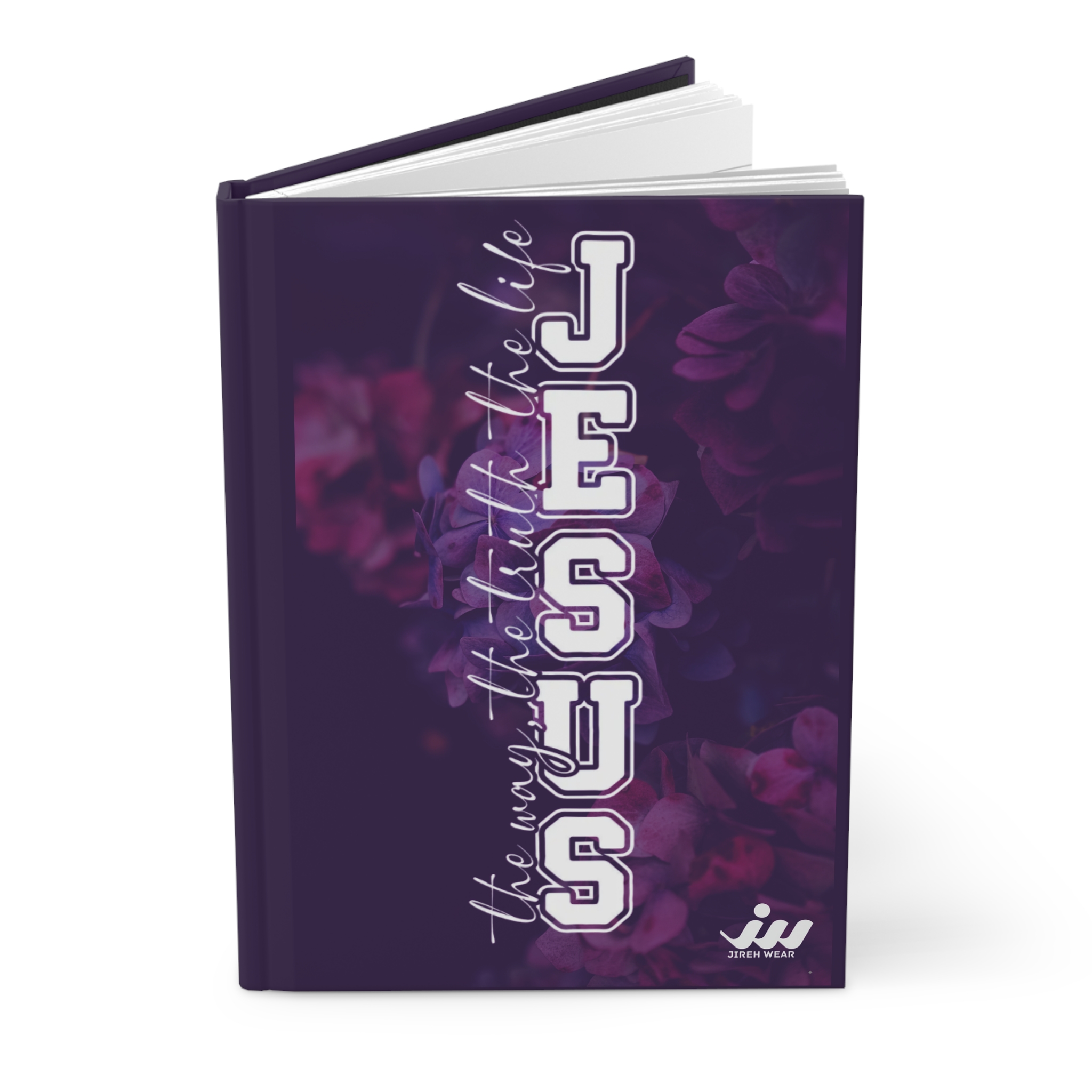 Soft to the touch yet built for daily use, this hardcover journal blends thoughtful structure with expressive design. The full-wrap cover shows deep purple florals and bold vertical lettering that reads J E S U S, set against a matte laminated finish that keeps colors vivid and reduces glare. Inside, 150 lined pages with perforations sit on a flexible sewn spine, so the book lies comfortably open for writing prayers, sermon notes, gratitude lists, or quiet reflections. The compact hardcover protects pages in a tote or on a nightstand, while the wraparound print makes it feel like a little treasured object you’ll reach for again and again.
