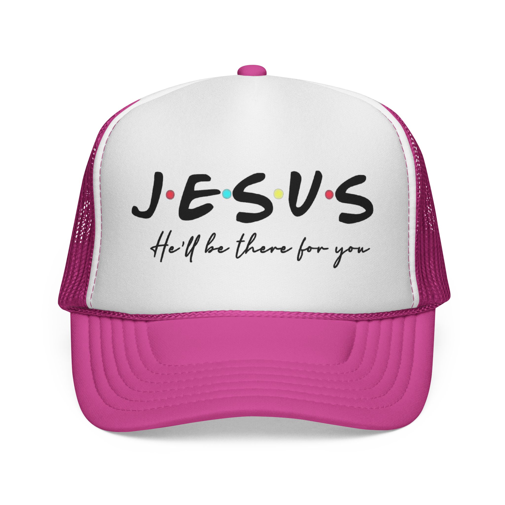 Lightweight and bright, this trucker cap brings a casual, faith-forward vibe to everyday wear. The foam front showcases a bold hand-lettered “JESUS” design with playful colored dots and the script line “He’ll be there for you” underneath — simple but expressive. The structured crown keeps the print crisp, while the ventilated nylon mesh back and six-row stitched visor give classic trucker comfort and shape. Snap the adjustable plastic closure for a secure fit; creases relax after unpacking and a few wears. Wear it on morning drives, community outreach days, or while running weekend errands — a low-key way to carry a message that matters.