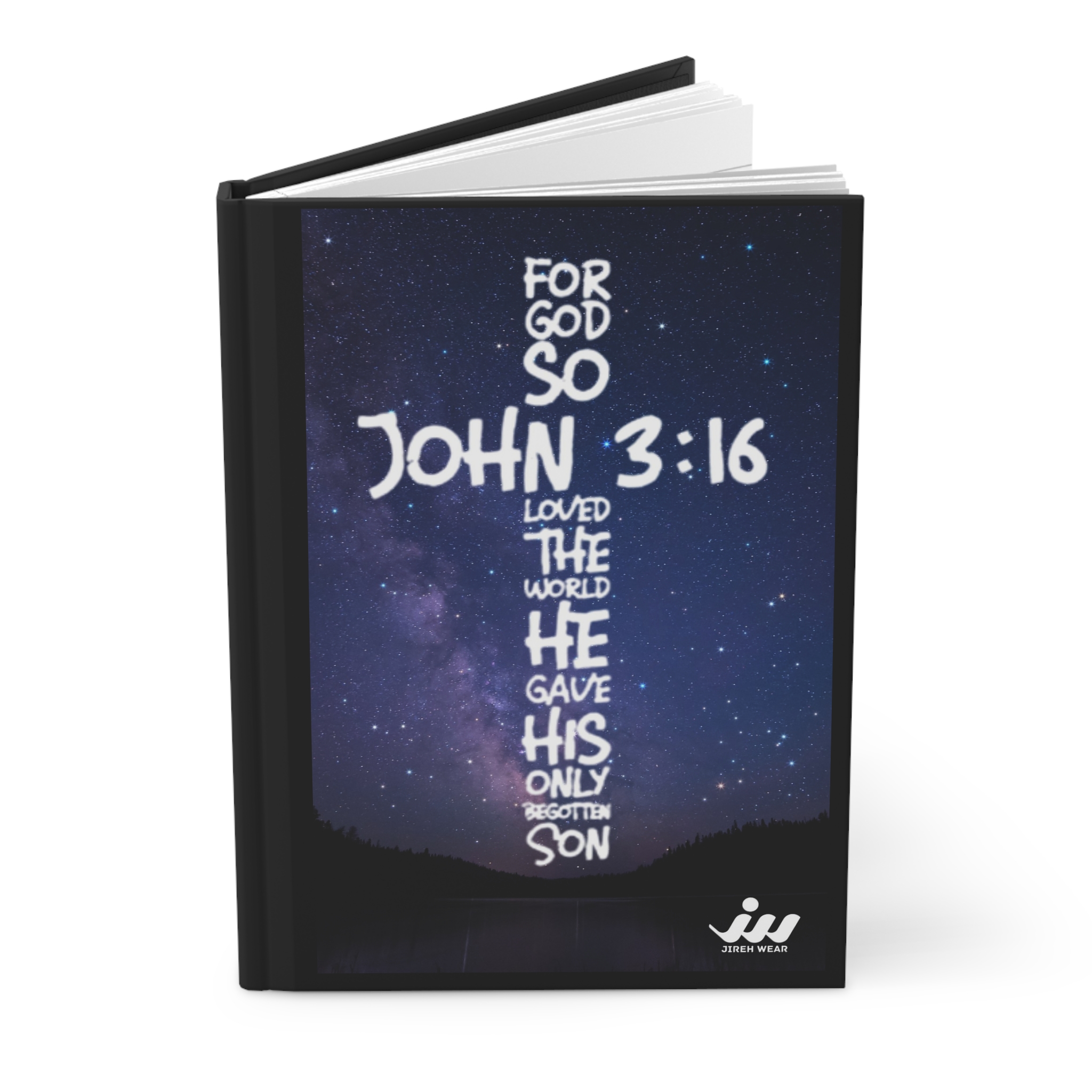 This hardcover journal carries a quiet, reverent energy. The cover art — a handwritten John 3:16 arranged as a luminous cross against a starlit sky — invites slow reflection and steady gratitude. Carry it to church, tuck it into a carry-on for a weekend retreat, or set it on your nightstand for evening prayers and notes. The lined pages hold sermon notes, prayers, memory verses, and moments of wonder. The sewn spine lets the book open flat so writing feels effortless. It’s a thoughtful companion for anyone who keeps faith at the center of daily life and wants a durable, beautiful place to track spiritual growth.