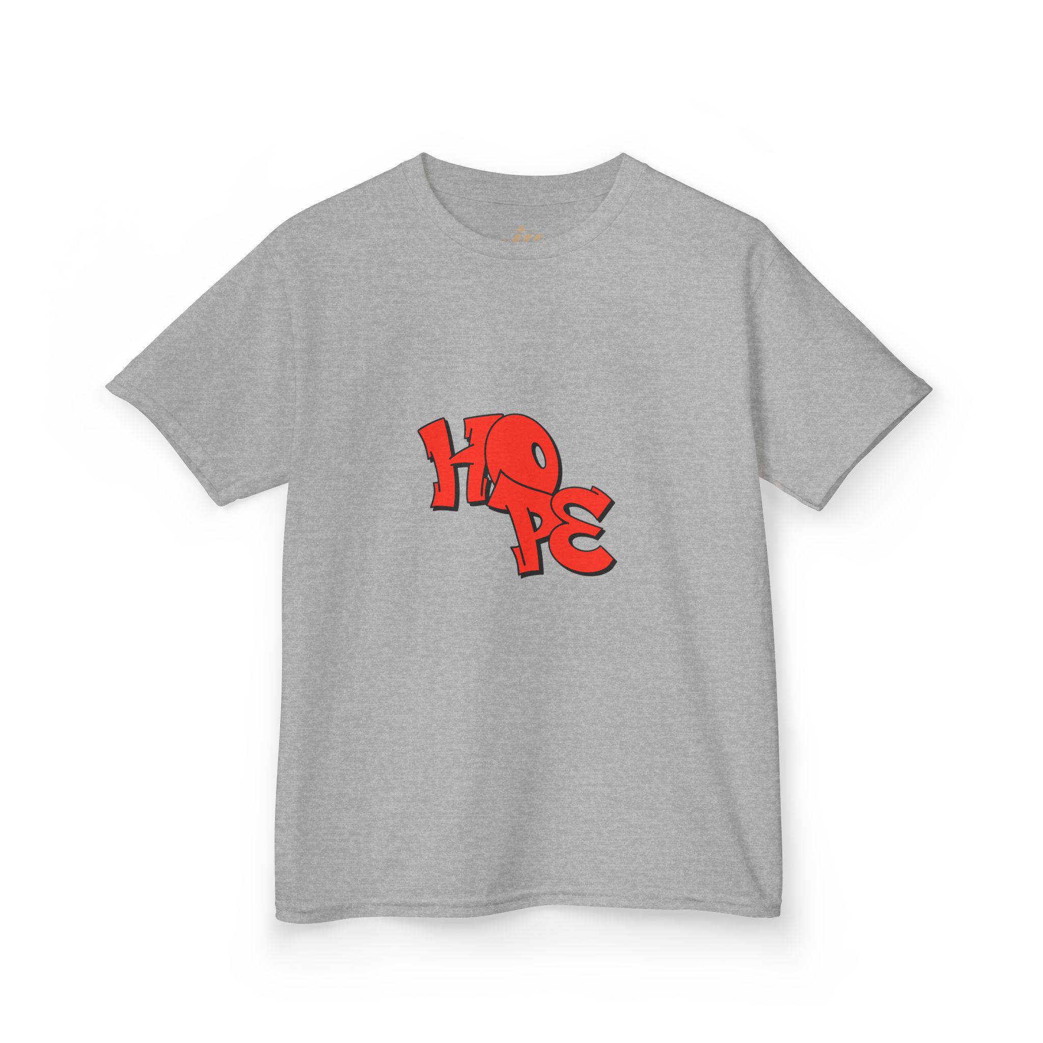 Soft, midweight cotton with a bold, childlike graphic—this tee carries a hopeful, upbeat energy your kid will want to wear again and again. The small red “HOPE” design sits centered on a clean white canvas, bright and playful without being loud. Lightweight enough for active play, yet sturdy enough to hold up through washes and adventures. It settles into everyday routines: playground afternoons, school art days, and weekend visits with family. The feel is familiar and comforting, the look quietly optimistic—something that sparks smiles and starts conversations among classmates and caretakers alike.