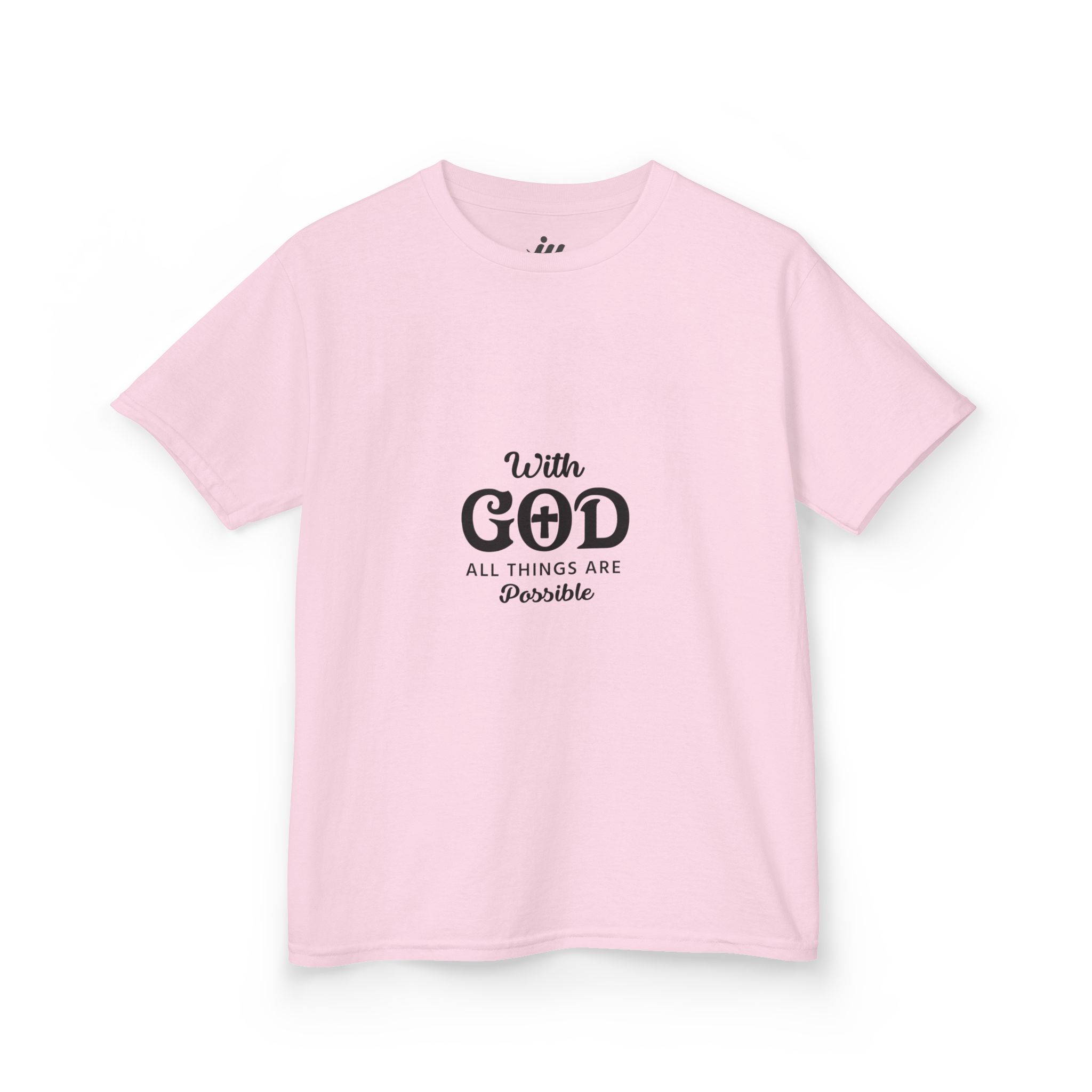 A soft, midweight kids’ tee that carries a quiet message of faith. The clean white shirt features a simple, centered design reading “With GOD all things are possible,” rendered in gentle script and bold type for subtle contrast. It sits comfortably with a classic crew neckline and a timeless cut — made to move with little bodies, hold up to play, and stay comfortable through the day. The breathable US cotton feels soft against skin, and thoughtful construction details (ribbed collar, shoulder tape, tear-away label) keep the fit stable and irritation-free. This tee works well for Sunday mornings, family gatherings, youth group days, or everyday wear when you want a small, meaningful reminder.