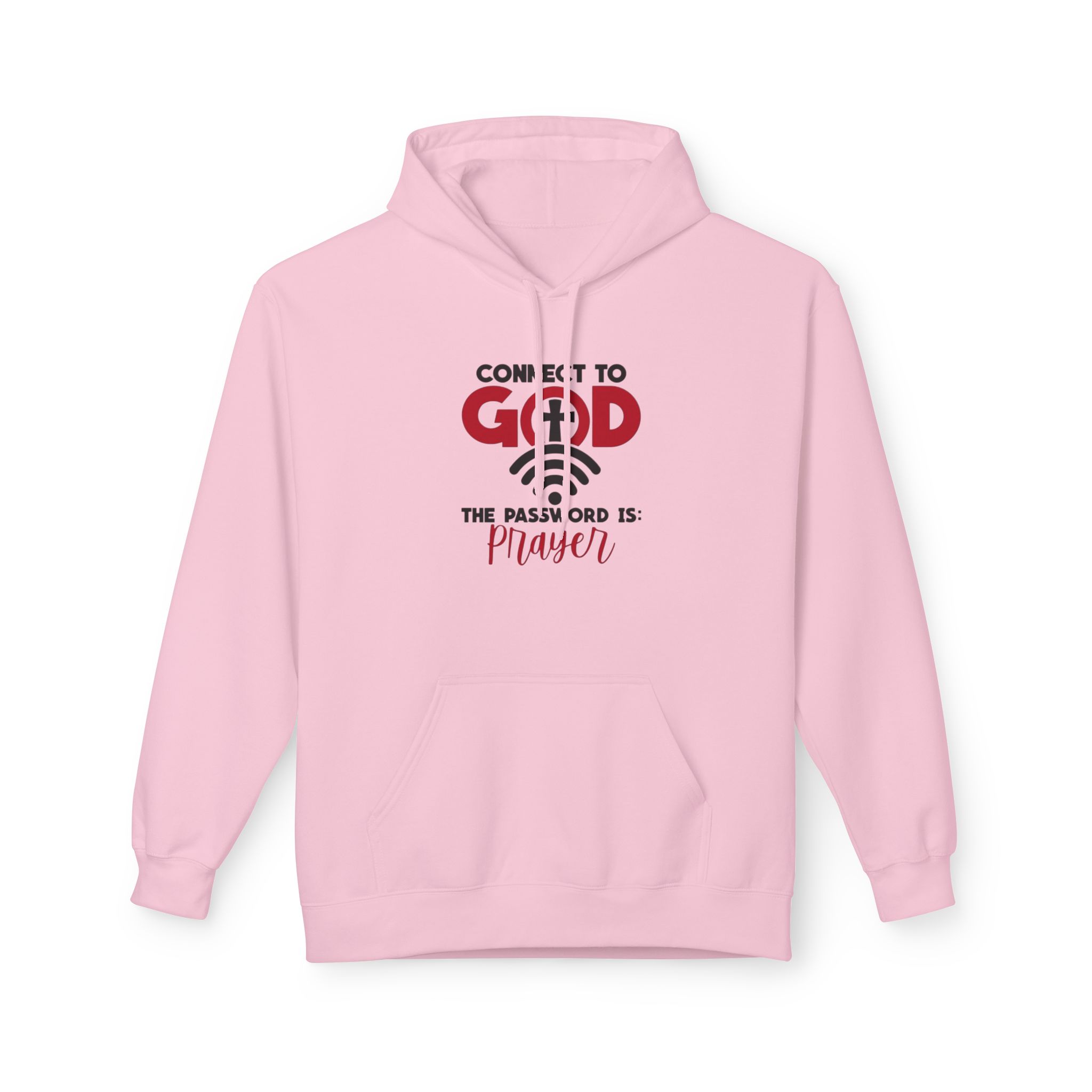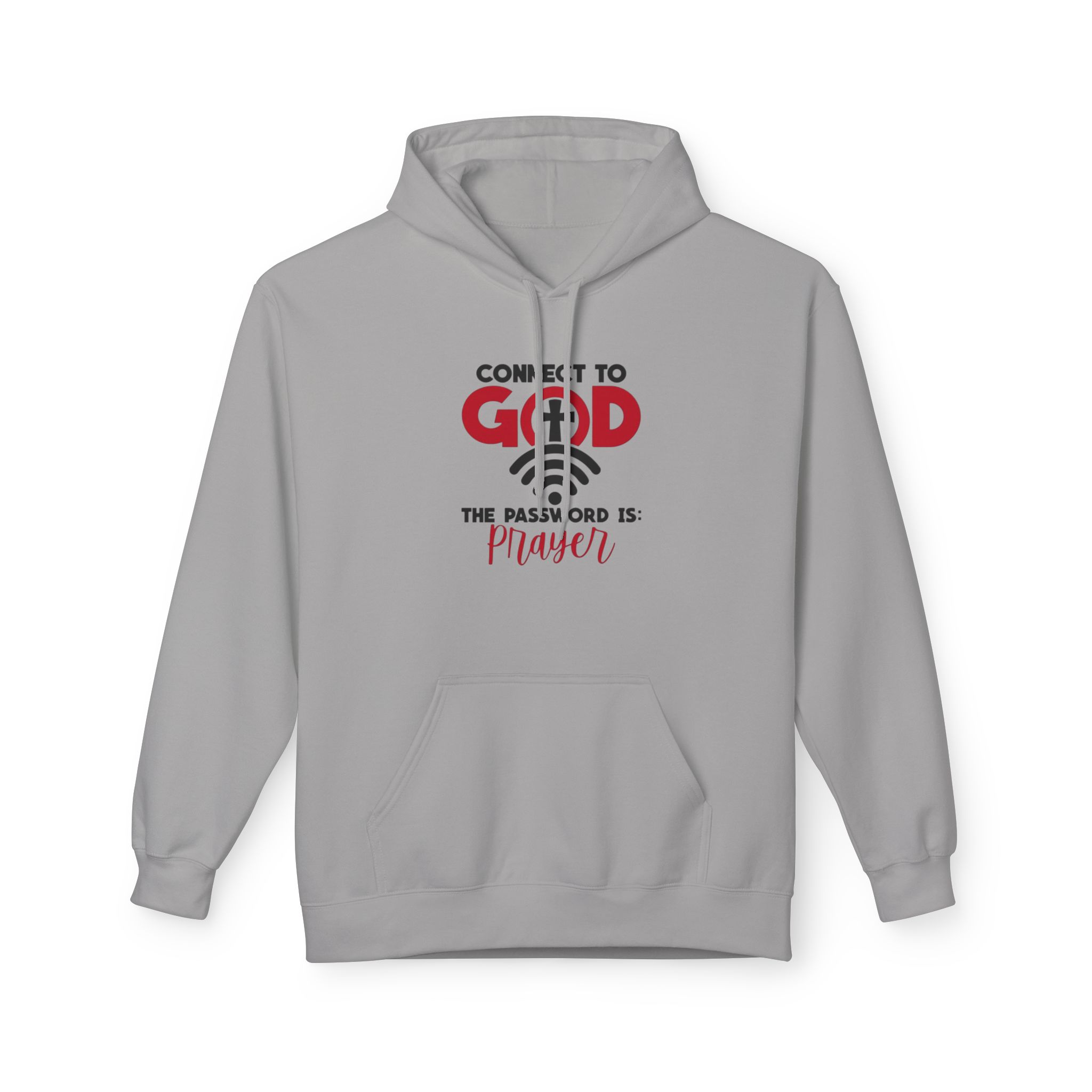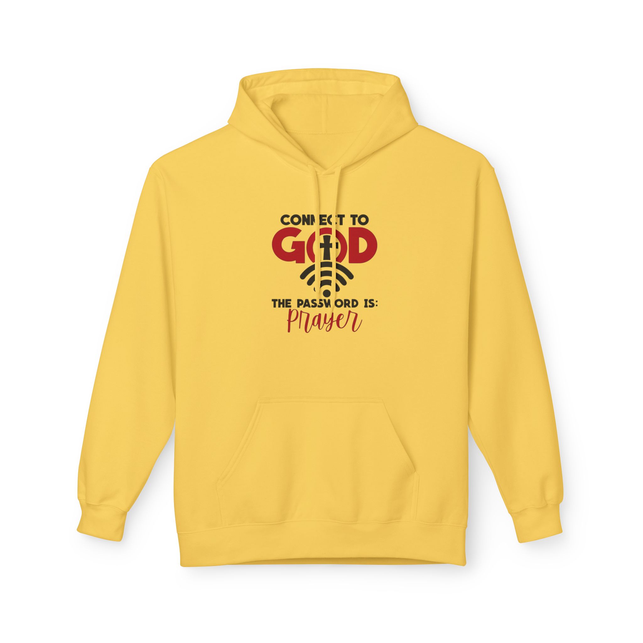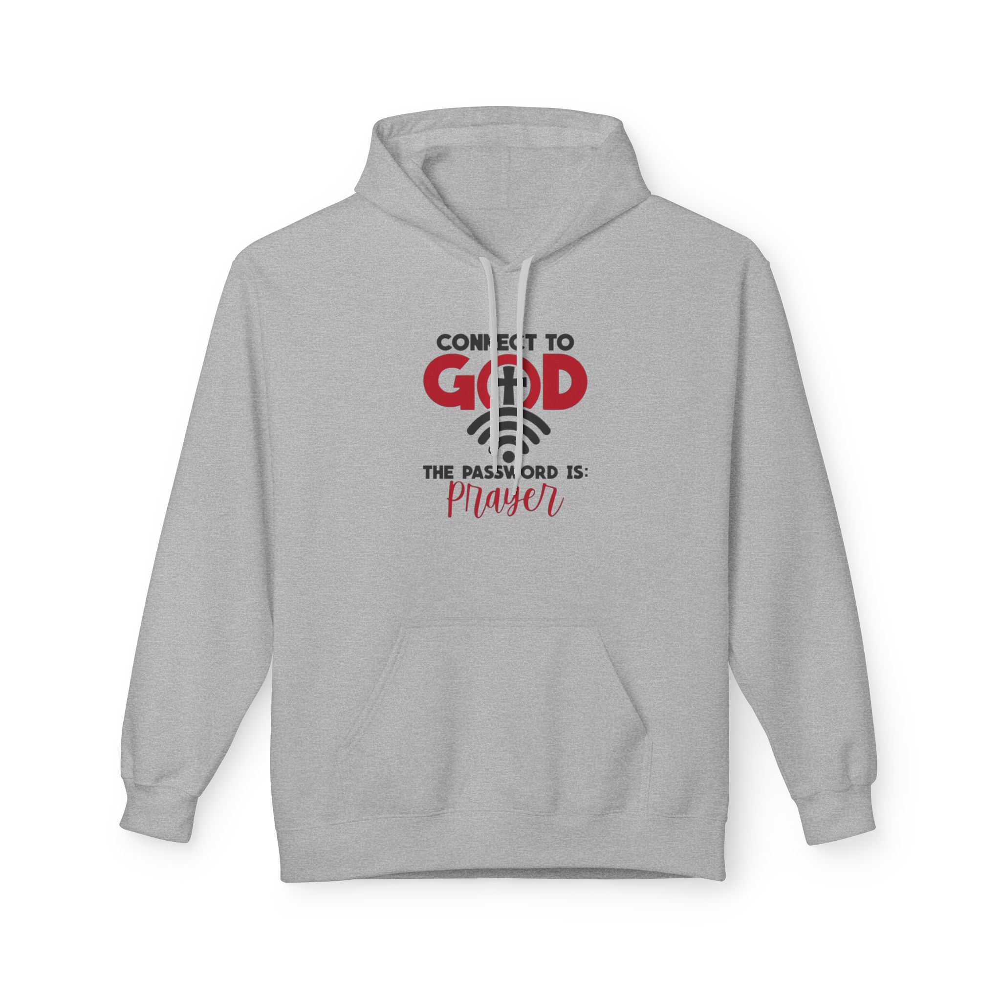 Soft, warm, and quietly confident — this midweight hoodie carries a simple message of faith woven into everyday life. The front features a clean, typographic design that reads “Connect to God” with a subtle cross and the line “The password is: Prayer.” It sits centered over a classic pouch pocket and structured two-piece hood, creating a balanced, lived-in look. The dropped shoulders and medium-heavy fabric give it that relaxed silhouette you reach for on slow mornings, evening walks, or when you want to sit and pray without fuss. Ethically made and OEKO-TEX certified, it feels good to wear and to stand behind.