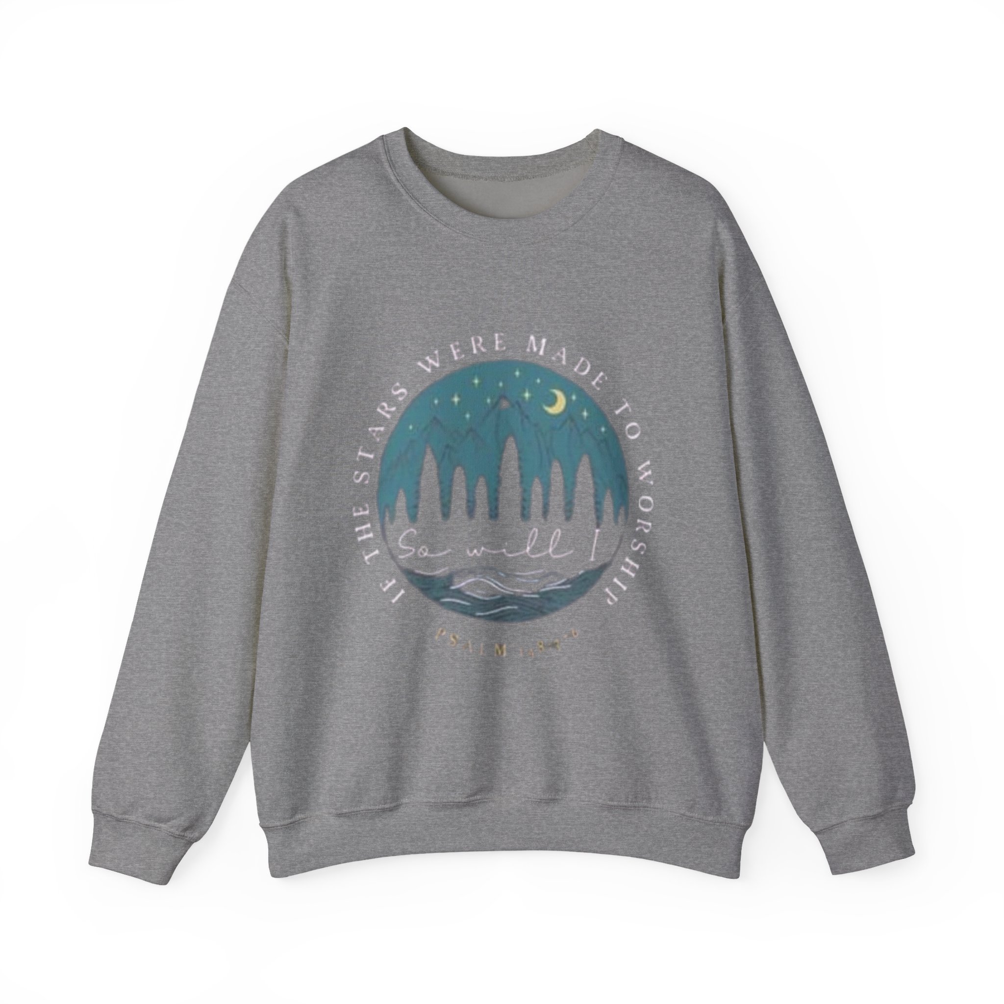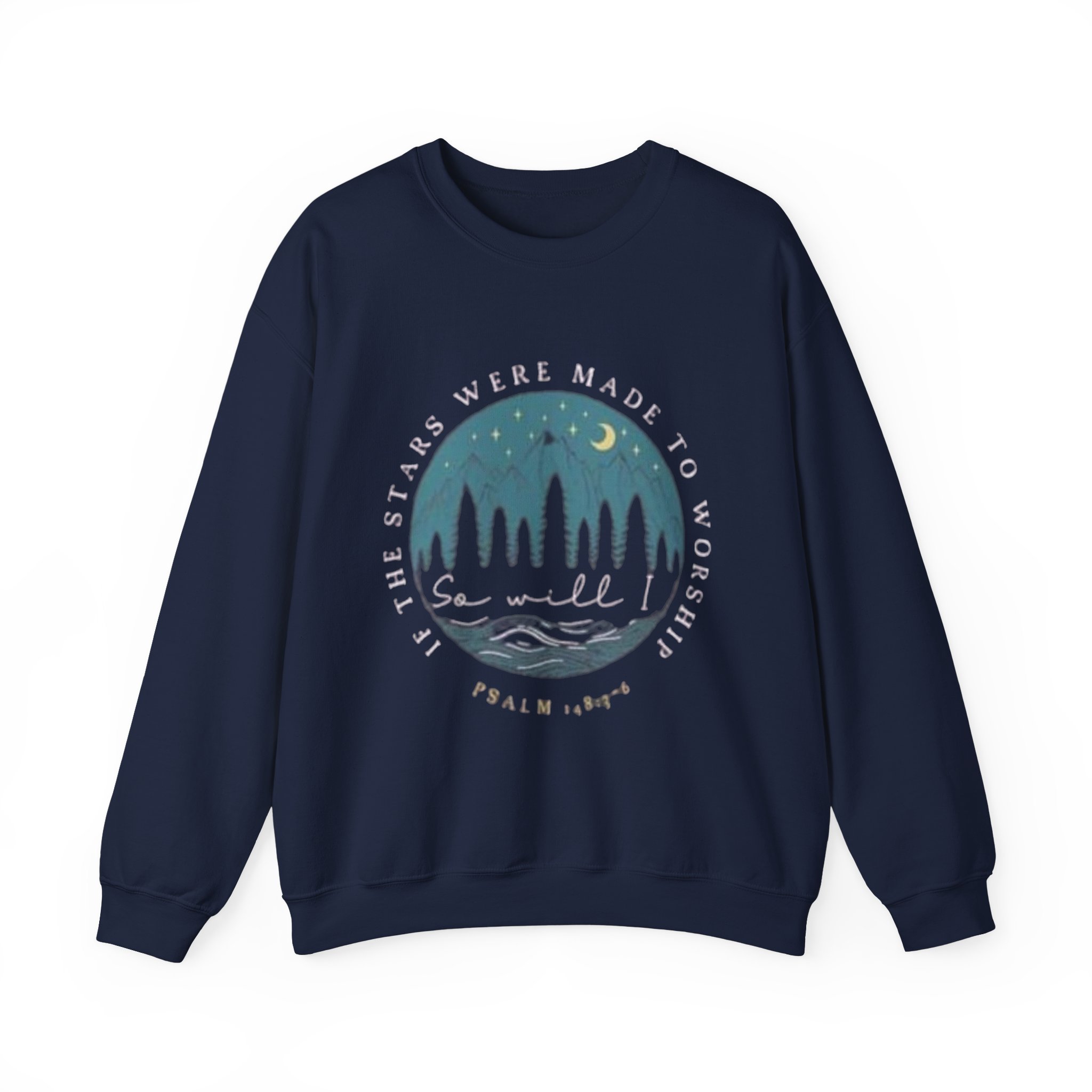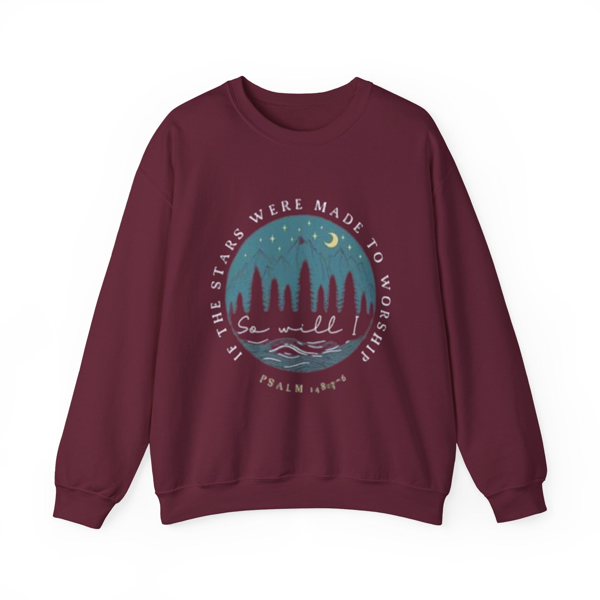 Wrap yourself in quiet evenings and gentle worship with this cozy crewneck sweatshirt. Soft, medium-heavy fabric holds a printed night-forest design that reads like a whispered reminder: the stars were made to worship. The circular artwork—moon, stars, treeline and flowing water—sits centered on the chest, faded-edge colors blending naturally with the maroon base for a lived-in, comforting look. Thoughtful construction (double-needle stitching, ribbed collar and cuffs, tear-away label) keeps the fit clean and itch-free, while ethically sourced cotton and OEKO-TEX dyes mean you can wear it with a clear conscience. It’s a sweatshirt that settles into slow moments—late-night drives, small-group gatherings, or quiet mornings with a warm cup—bringing a calm, reflective presence to the way you move through the day.
