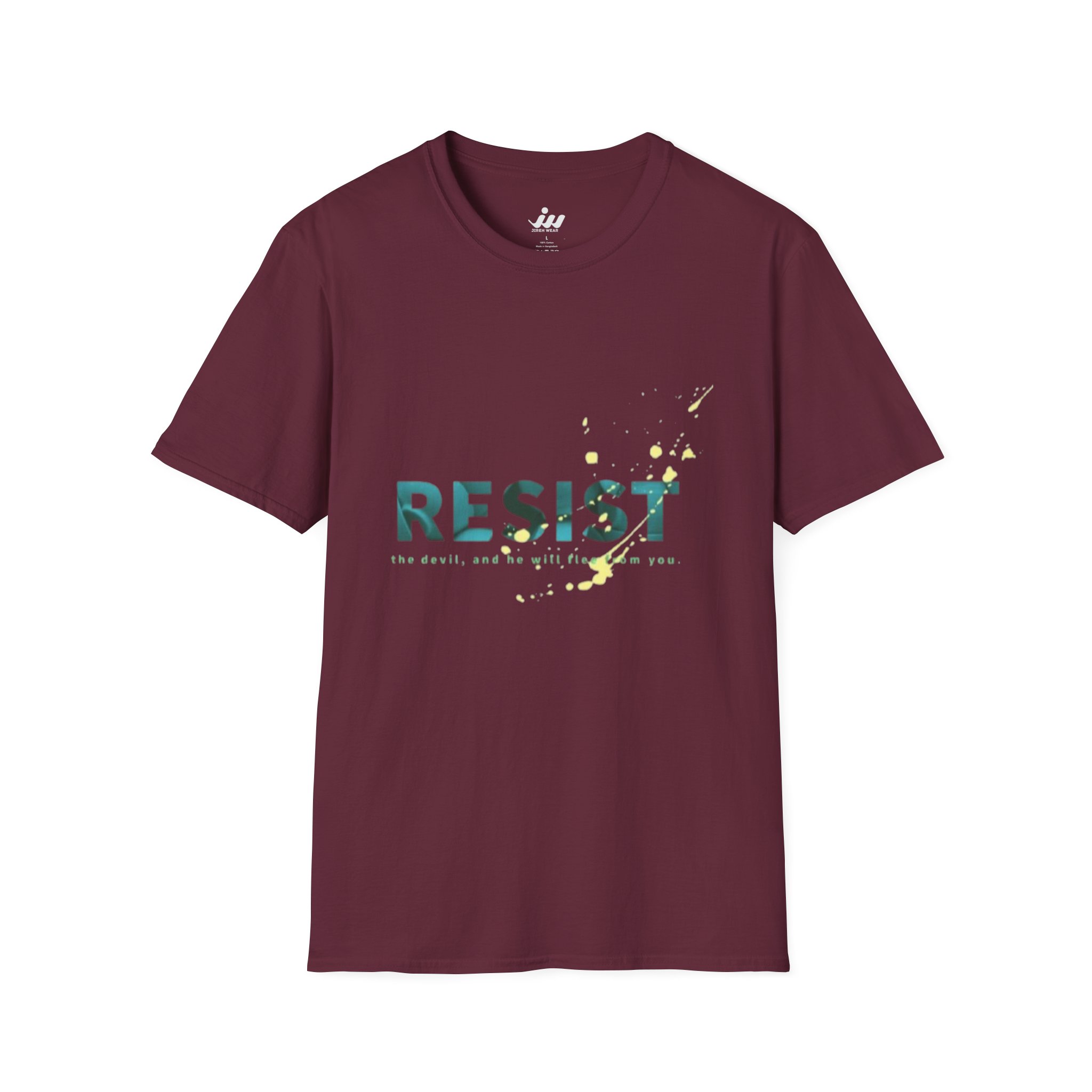 This lightweight tee carries a quiet, resolute message—RESIST—rendered in textured teal with soft gold specks that suggest hope breaking through. Wear it to rallies, campus conversations, or everyday walks when you want your values to speak without shouting. The classic crew silhouette and smooth, ring-spun cotton keep the feel relaxed and approachable; it layers easily under jackets or stands alone with jeans. It’s for people who choose steady, thoughtful action: listened to, considered, and ready to show up. The subtle distressing in the print gives it lived-in character, so the shirt feels like part of your story from the first wear.