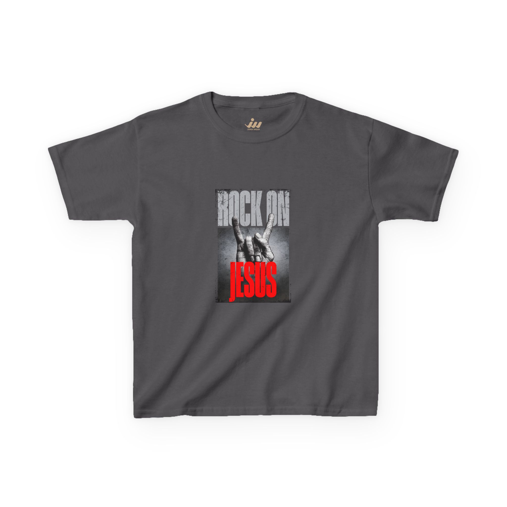 This soft, midweight kids tee blends bold faith-forward graphics with everyday comfort. The design layers distressed black-and-white photography with striking red lettering to create a modern, slightly rebellious take on a classic message — wearable for kids who want to express personality and belief without sacrificing comfort. The crew neck and timeless fit sit well under jackets or over long sleeves. Durable construction and high-quality printing keep the image crisp wash after wash, so it stays part of their rotation through school days, family gatherings, and weekend adventures.