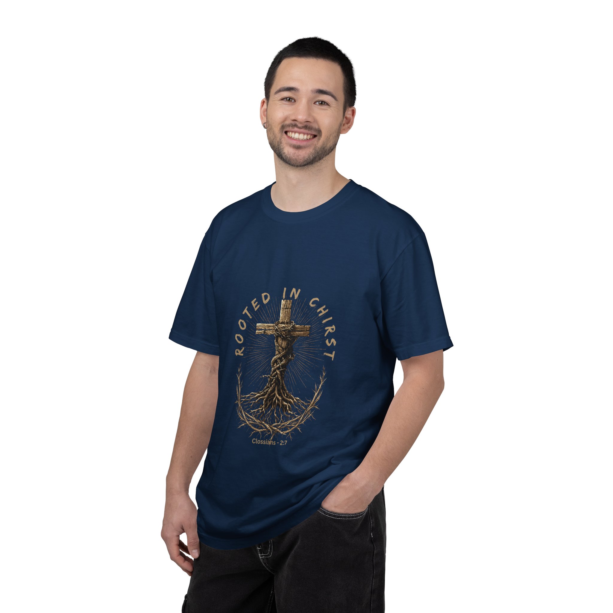 This heavyweight, garment-dyed tee carries a quiet, grounded message — a vintage-inspired cross with deep-reaching roots encircled by thorned branches. The soft, washed-in black and muted brown print reads like an heirloom piece: worn-in from day one, comfortable through long Sundays at church, volunteer nights, or reflective walks. It slips easily into a wardrobe of faded jeans, cargo shorts, or a flannel layer, giving a faithful, lived-in look without shouting. The relaxed cut and substantial fabric make it feel like a reliable companion for mornings of coffee and Bible study or evenings gathered with a small group. Subtle sewn-in label and clean construction keep the focus on the meaningful art and message.