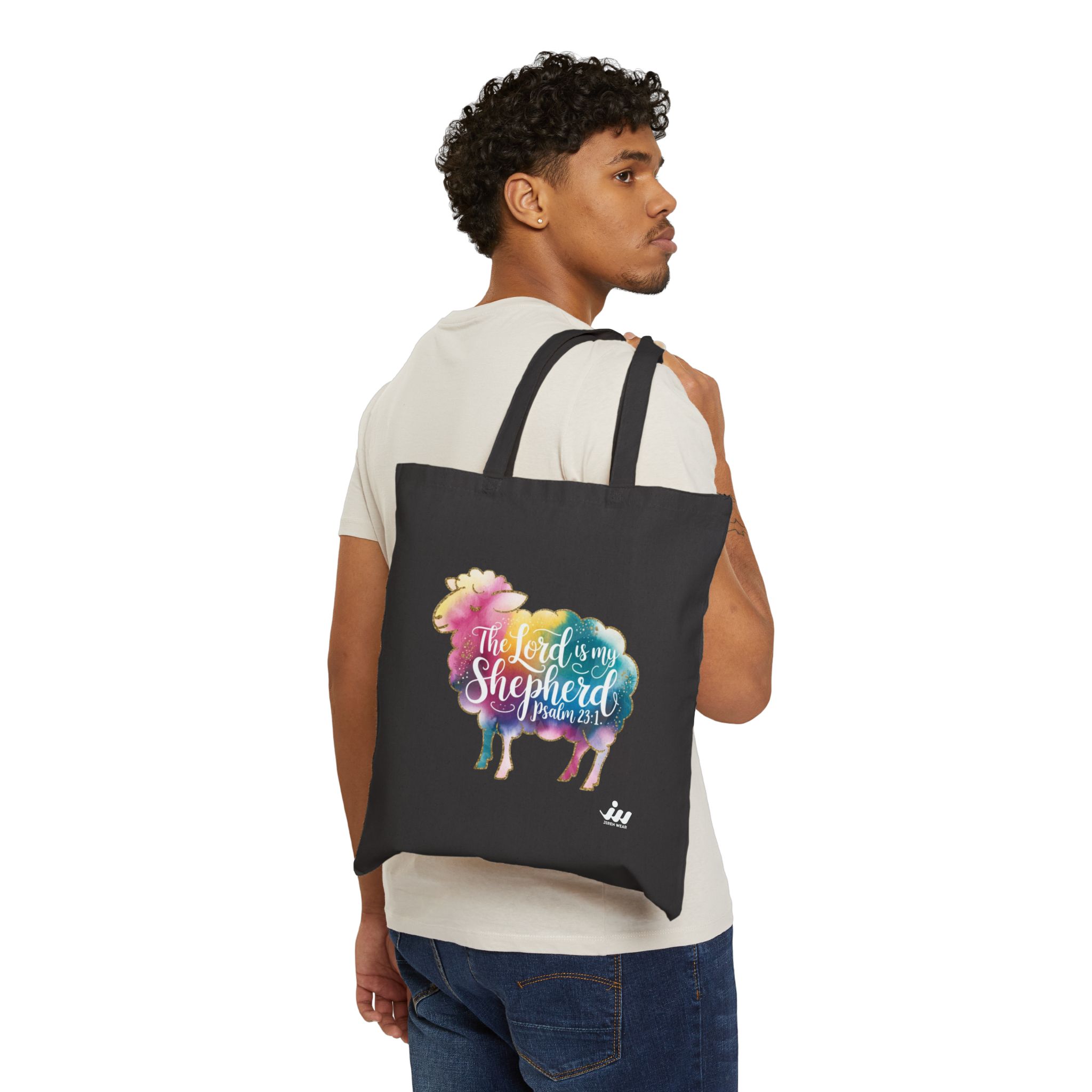Carry a quiet reminder of comfort and guidance wherever you go. This cotton canvas tote brings a soft, watercolor sheep motif with the phrase “The Lord is my Shepherd” into everyday life. The artwork’s gentle hues sit against a natural or black canvas, lending a calm, contemplative accent to grocery runs, church gatherings, or slow weekend strolls. It feels sturdy in your hand, sits flat when you set it down, and wears well with repeated use — a useful companion for someone who likes to carry their faith as simply and beautifully as they carry their things.