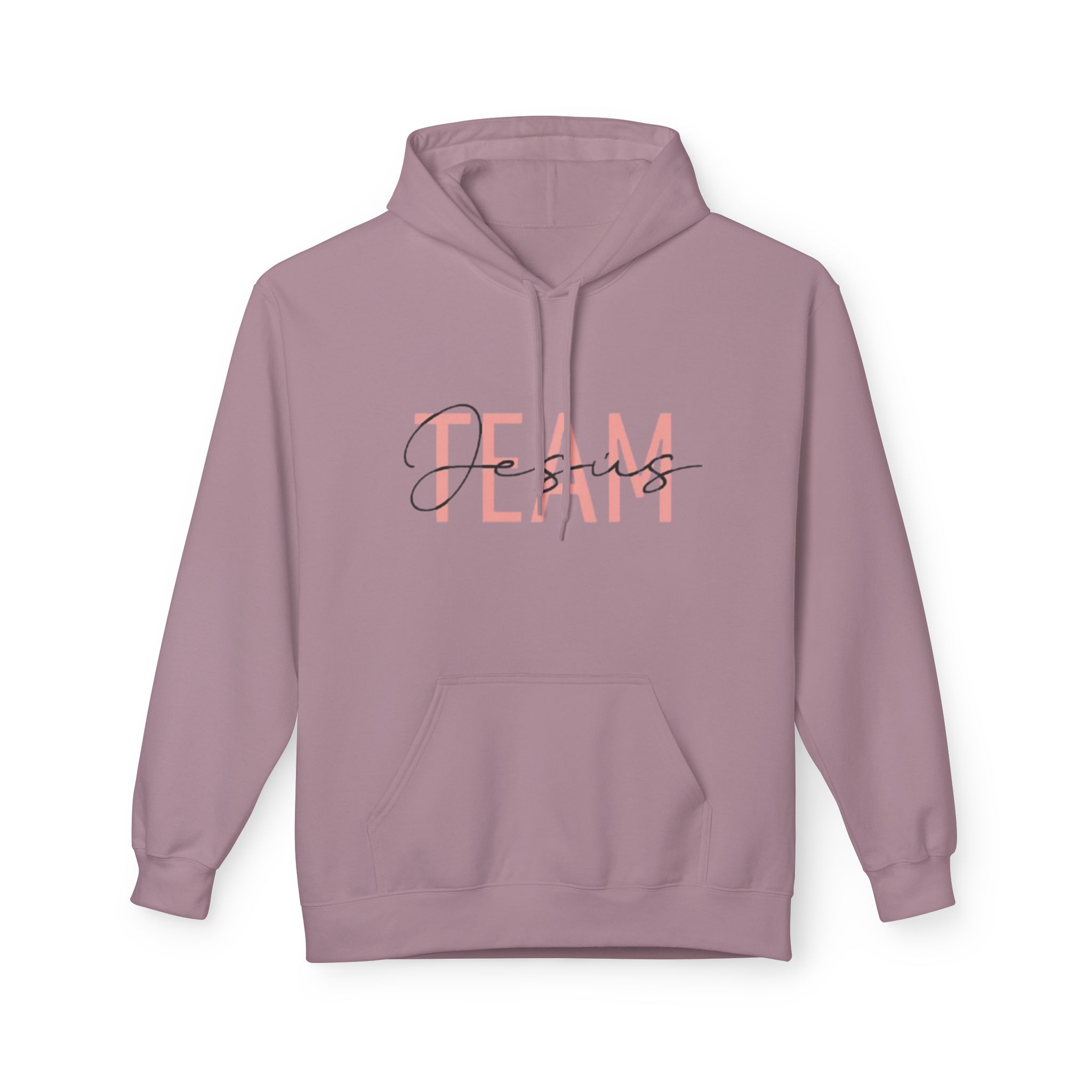 Soft, lived-in comfort with a quiet, confident message. This midweight fleece hoodie wraps you in warmth while a muted, hand-lettered “TEAM” across the chest feels personal — like a shared inside joke or a small badge of belonging. The dropped shoulders and classic fit let it sit casually over jeans, leggings, or a cozy lounge set. Wear it to early morning practices, late-night study sessions, or slow weekend coffee runs; it moves with you and settles into everyday life.
