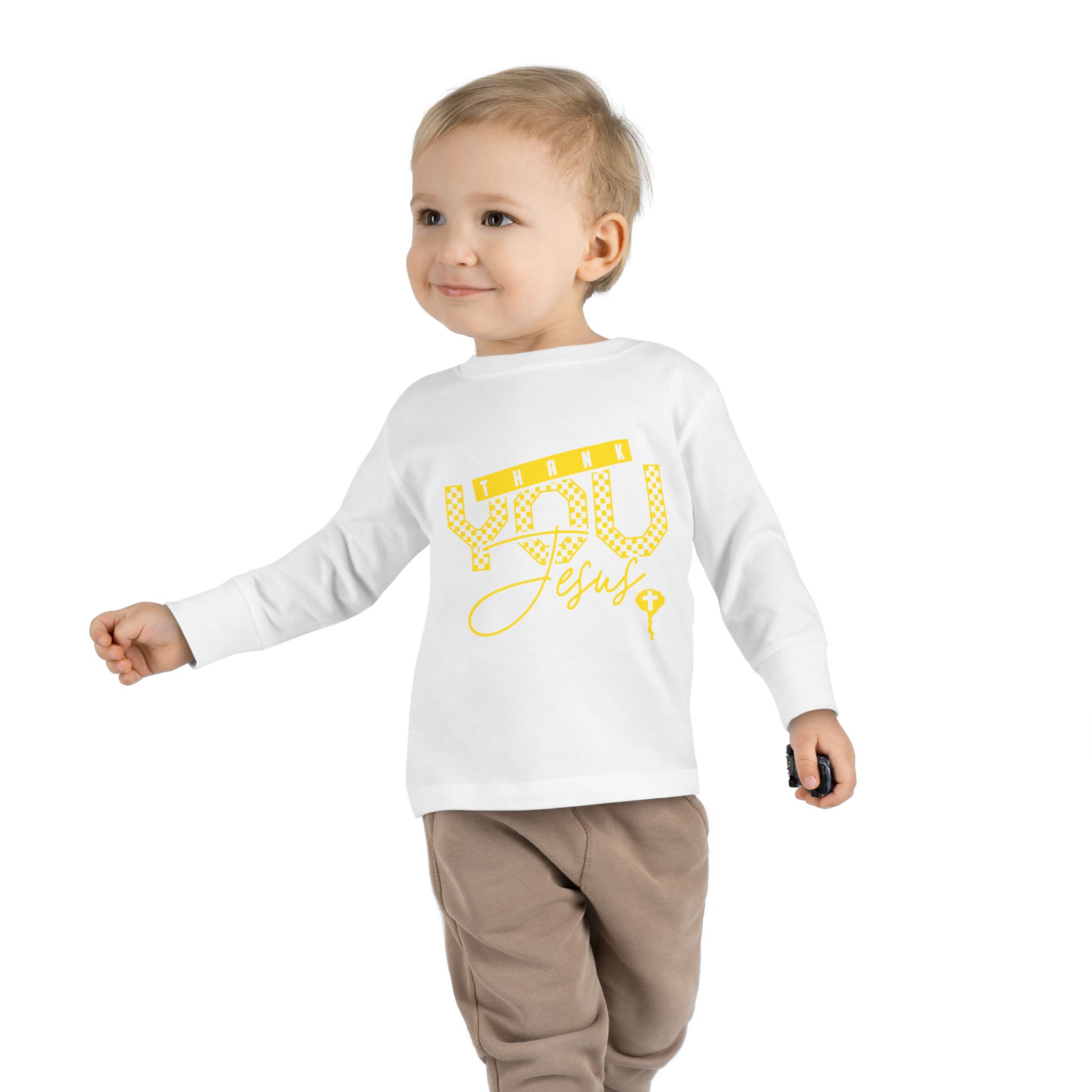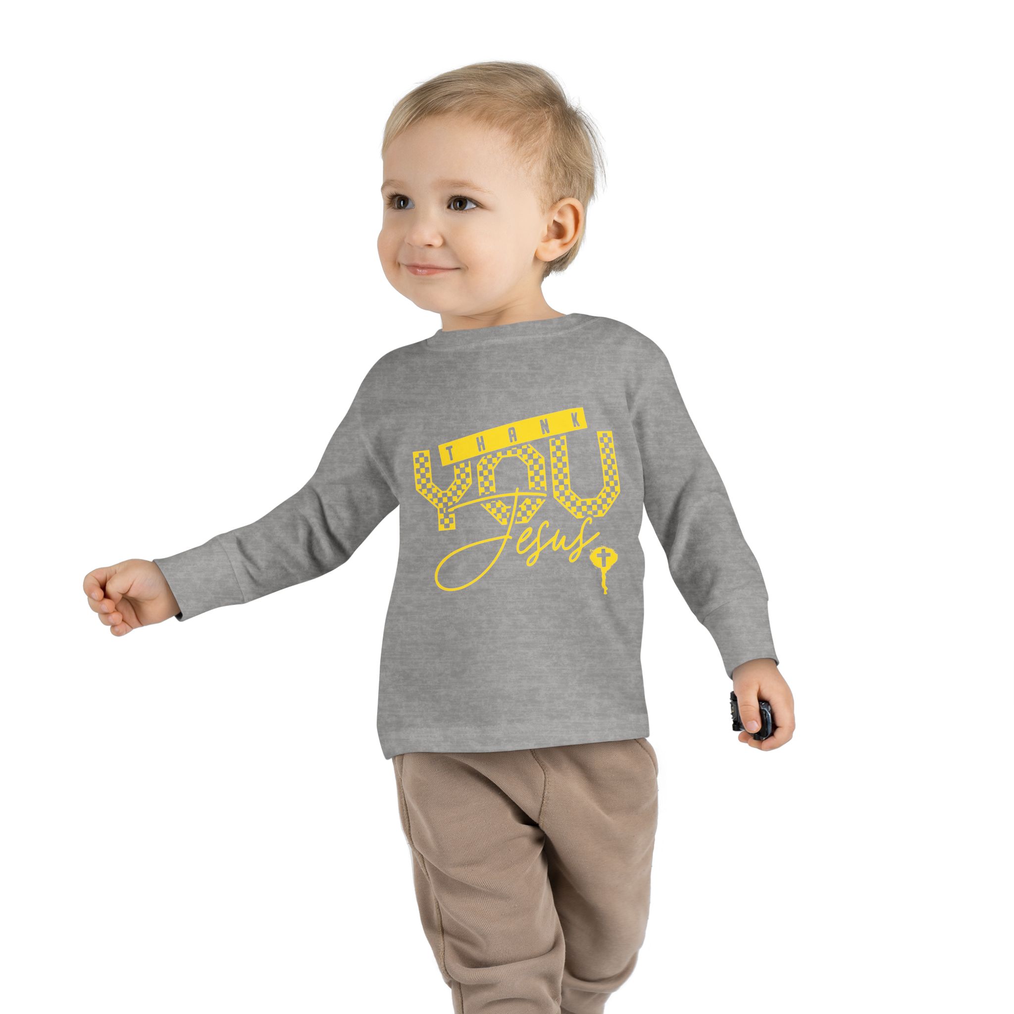Soft, breathable long-sleeve tee made for little explorers who move from playtime to storytime without missing a beat. The lightweight fabric and ribbed cuffs keep sleeves in place while the reinforced neck and shoulder tape hold up to repeated washings and adventures. The cheerful, screen-printed motif in sunny yellow brings a playful, warm touch that reads bright against white or pale colors. Gentle on sensitive skin and designed with a tidy tear-away label, this shirt layers easily under jackets or pairs with leggings and tiny sneakers for outings, family photos, or cozy days at home.