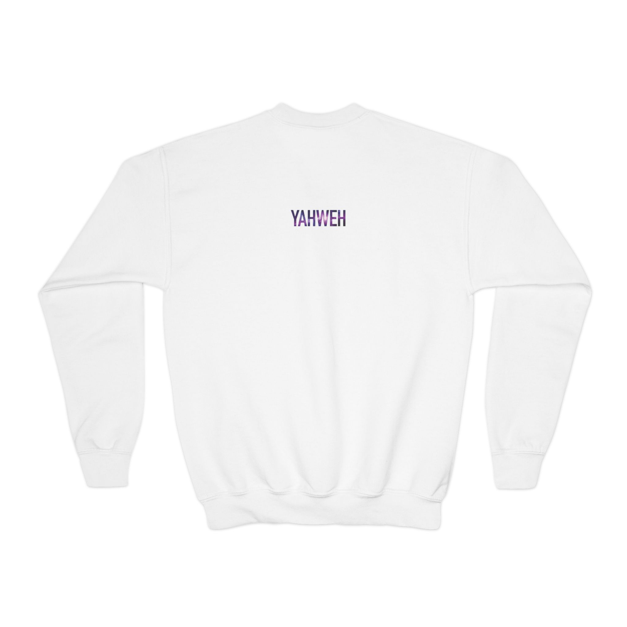 A cozy youth crewneck that quietly carries a message. Soft, medium-heavy knit and a relaxed, drop-shoulder silhouette make it the kind of sweatshirt kids reach for again and again. The embroidered “YAHWEH” on the chest and upper back uses subtle color stitching that reads intimate and personal, not loud — like a small statement of faith tucked into everyday comfort. The tubular construction keeps the lines clean and minimizes bulk at the sides, while the ribbed collar and cuffs hold their shape through play and repeated washes. Lightweight enough for layering under a jacket, substantial enough to wear alone on cool mornings. It’s made with durable blended fibers that stand up to run-around days and meet strict safety and compliance standards, giving caregivers extra peace of mind.