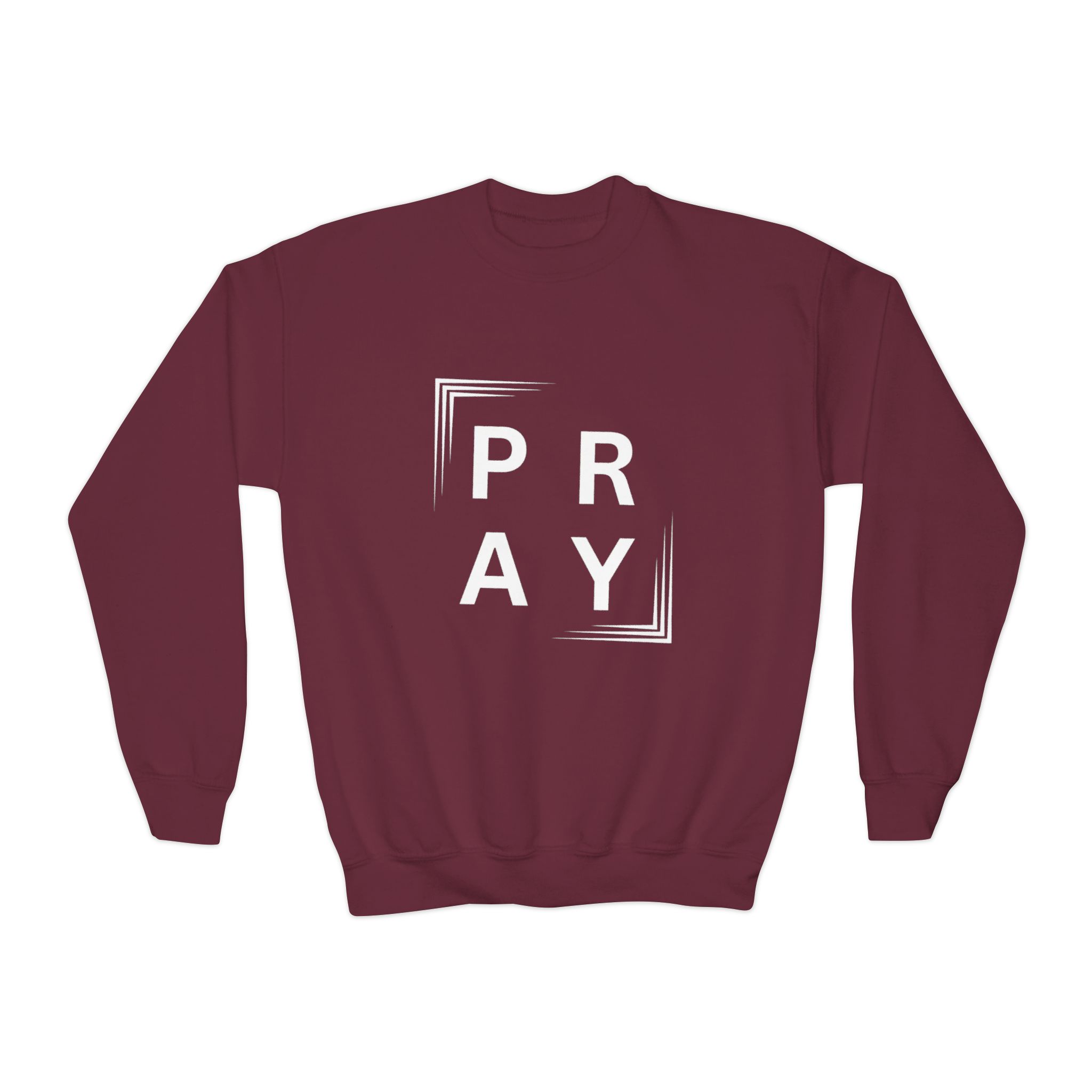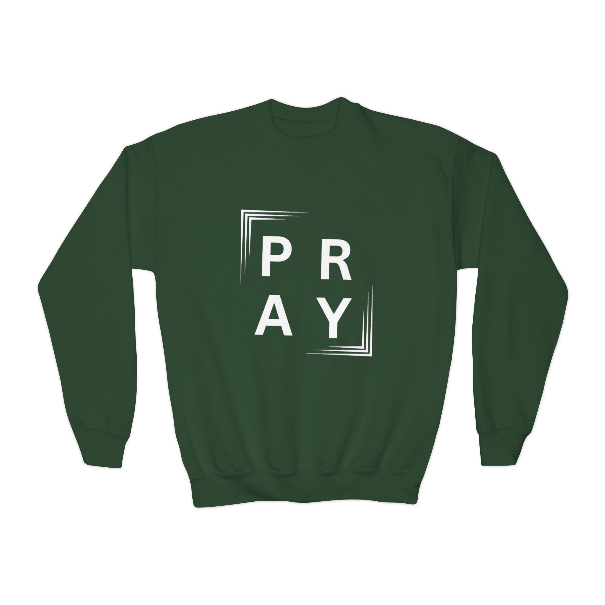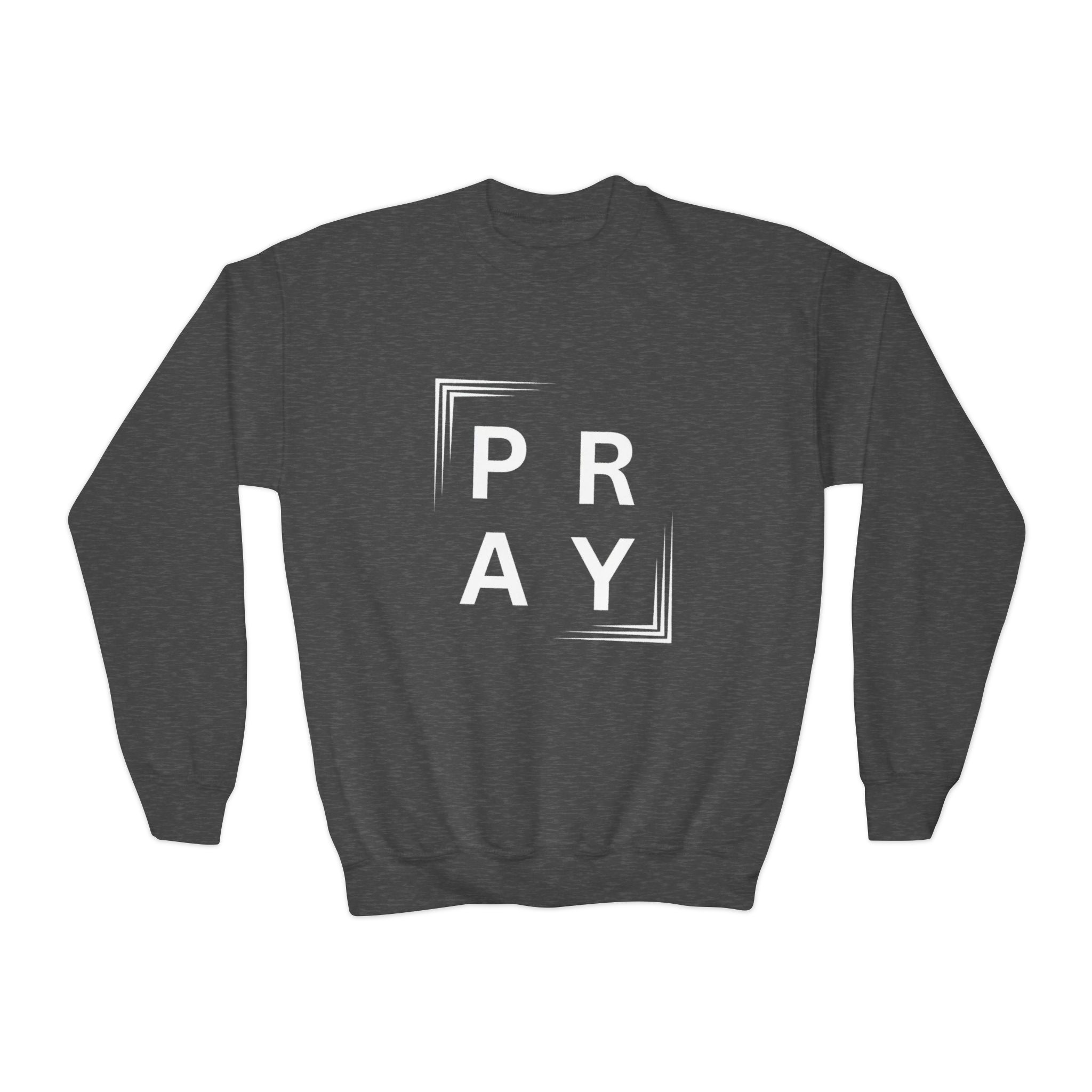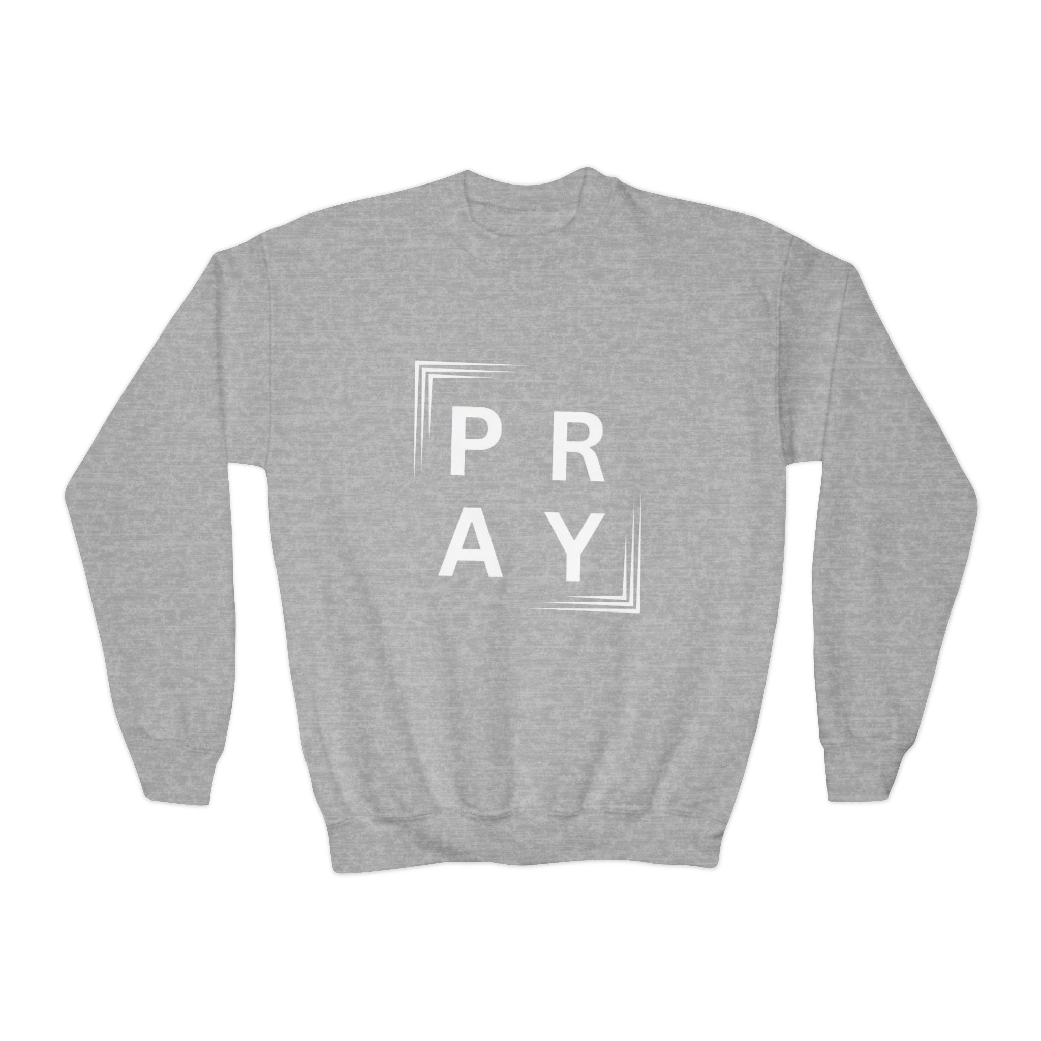 This youth crewneck sweatshirt brings quiet confidence to a child’s wardrobe. The bold, textured PRAY graphic sits inside framed corners, giving it an understated, thoughtful look that reads both contemporary and reflective. Medium-heavy 50/50 cotton-poly fabric feels substantial and soft, draping in a relaxed, loose fit that kids can layer over tees or hoodies. Tubular construction keeps the side profile smooth, while a ribbed collar and cuffs hold their shape through washes. Embroidery placement options (left or center chest) allow a tone-on-tone, tactile version of the design for a refined finish. Safe, compliant materials and a tear-away label keep comfort and care simple for everyday wear.