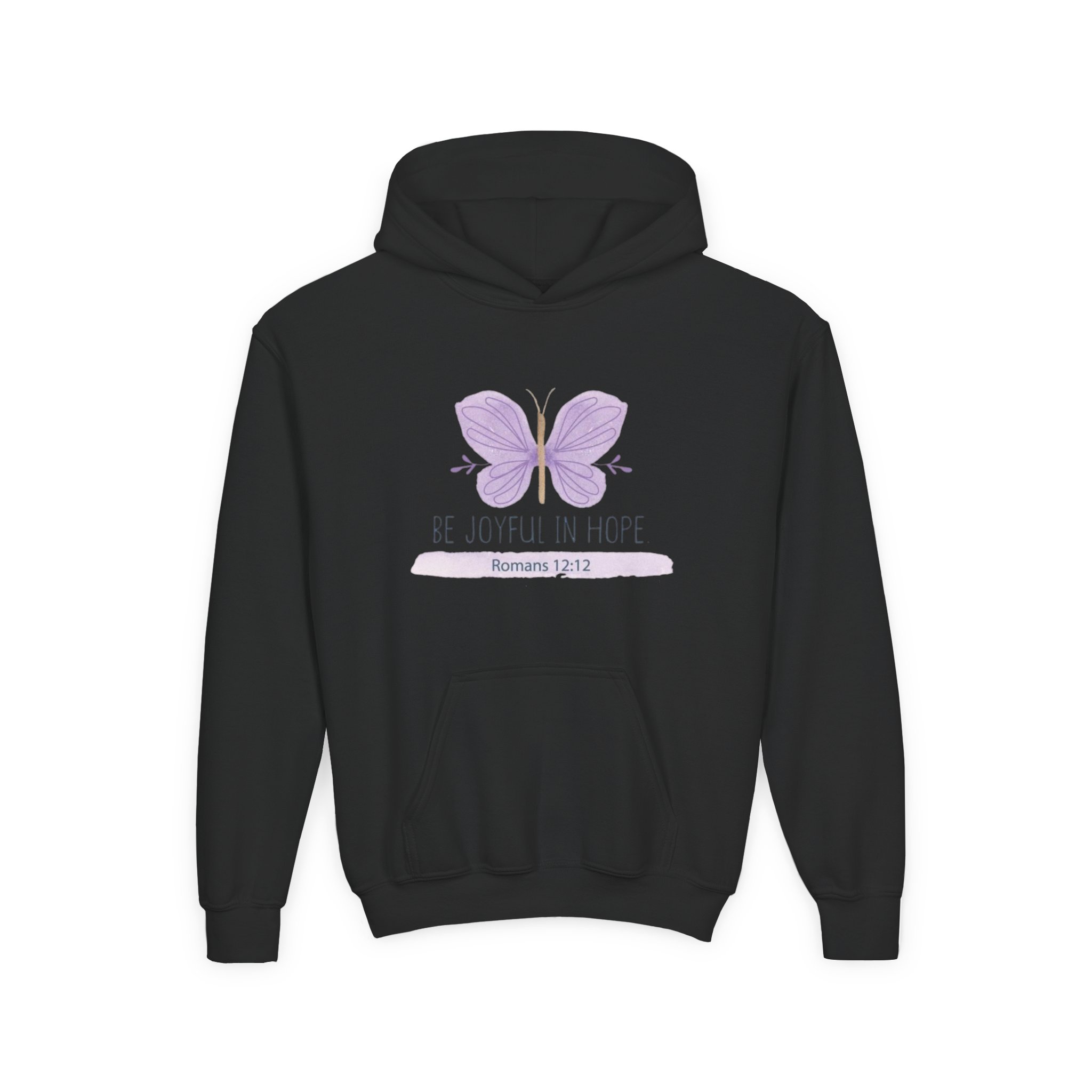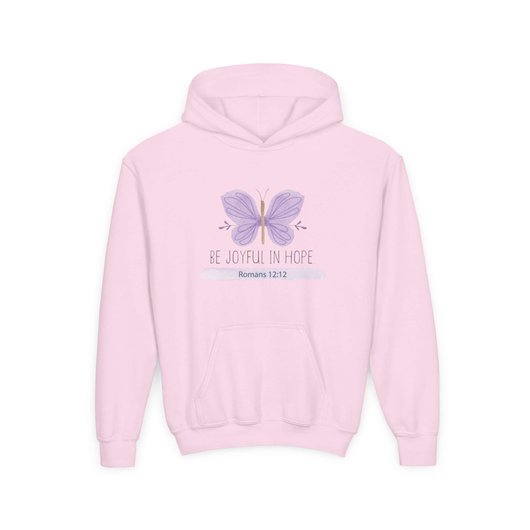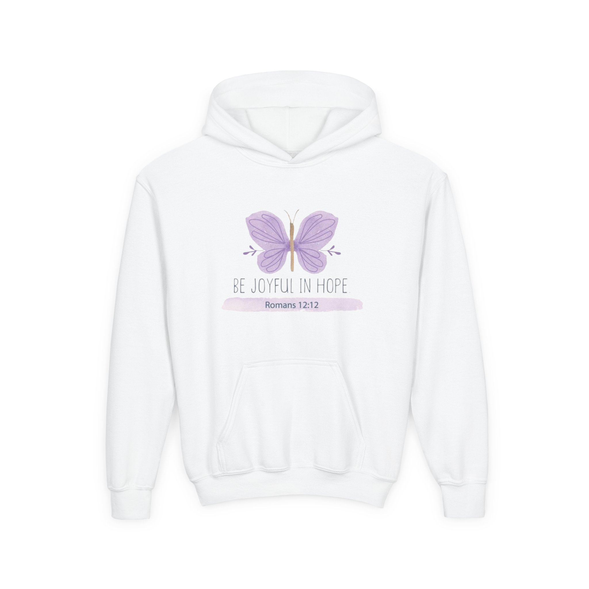 This children’s hooded sweatshirt wraps little ones in gentle comfort and hopeful charm. Soft, medium-weight fabric with a smooth face holds a delicate watercolor butterfly and a quiet scripture line — an understated reminder of joy and hope. The kangaroo pouch keeps chilly hands warm during morning walks to school or backyard adventures. Thoughtful construction like twill necktape and a sewn-in label help the hoodie stay comfortable and stable through play and repeated washes. Available with optional chest embroidery for a personalized touch, it’s sized and tested for kids and made to meet safety standards parents trust.