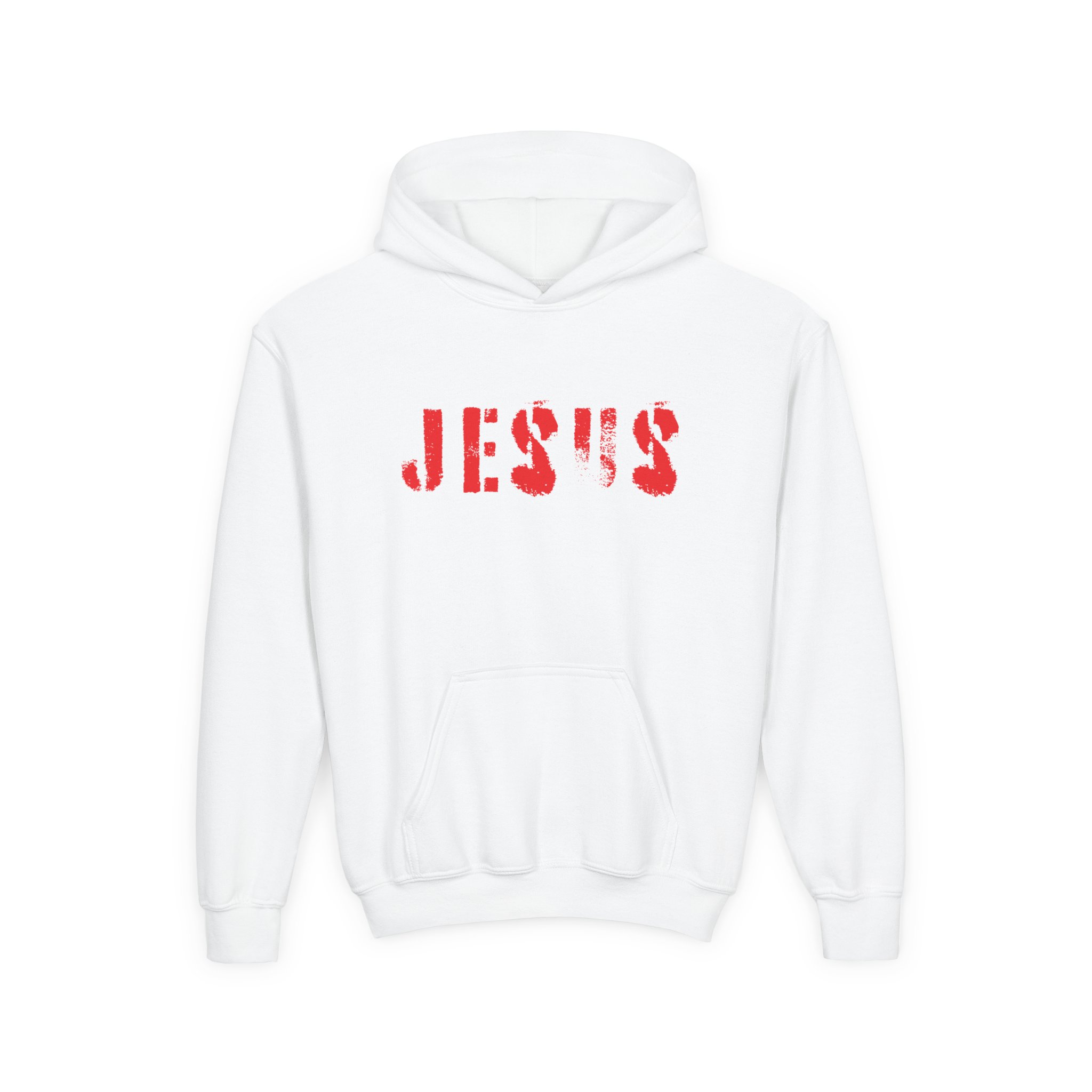 Soft, roomy, and built to keep kids cozy, this youth hoodie carries a bold, stencil-style JESUS print that feels both modern and earnest. The mid-weight fabric drapes comfortably for play, chapel, or weekend hangouts, while the kangaroo pocket and hood add everyday practicality. Subtle details—like twill necktape and a sewn-in label—make it feel carefully made, and options for chest embroidery or durable wrist prints give it a handcrafted touch. It’s an easy layer for cooler mornings, community gatherings, or quiet moments of faith and reflection.