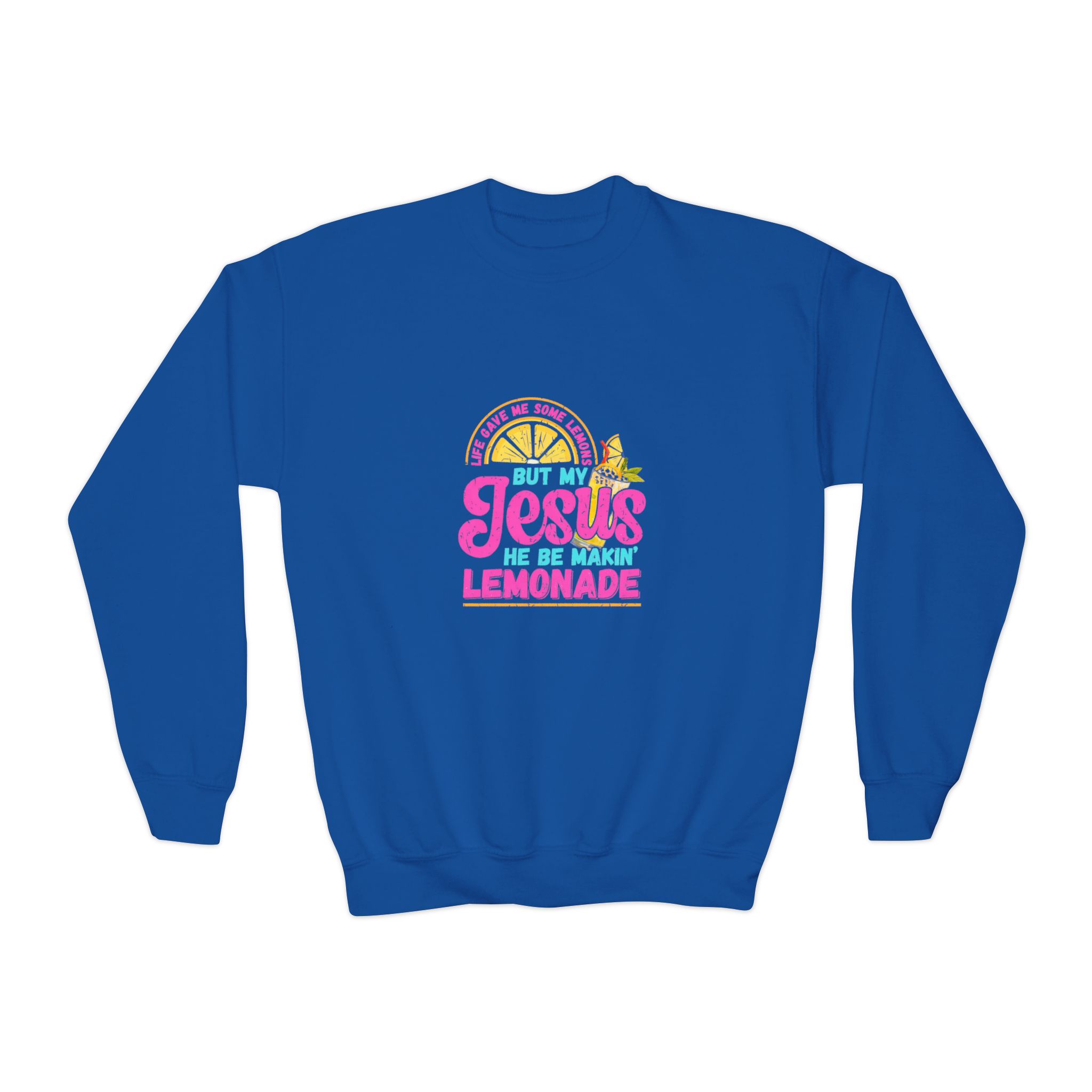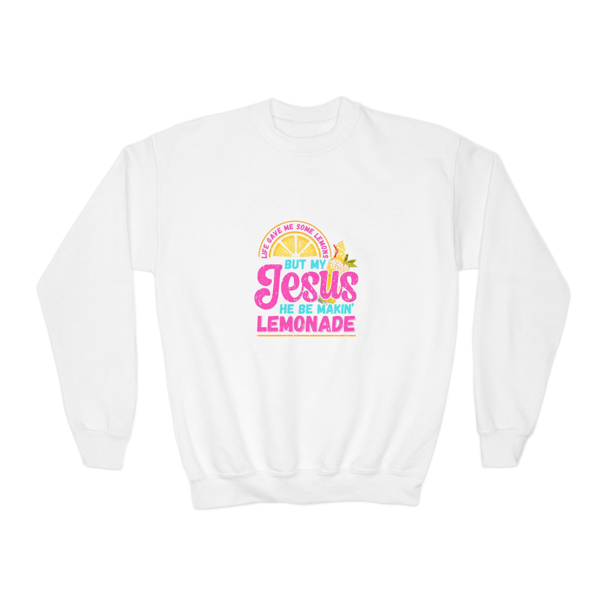 Soft, cozy, and cheerfully bold — this youth crewneck brings sunshine to everyday wear. The loose-fit sweatshirt is made from a durable 50/50 cotton-poly blend with medium-heavy weight that holds prints and embroidery beautifully. A ribbed collar and cuffs keep shape through play and washes, while the tubular knit construction gives a smooth, seam-free body for comfortable layering. Bright, playful artwork on the chest adds a friendly, optimistic vibe that kids will love to wear to church events, summer socials, or casual family days. Finished with a tear-away label for itch-free comfort and safety-tested materials parents can trust.