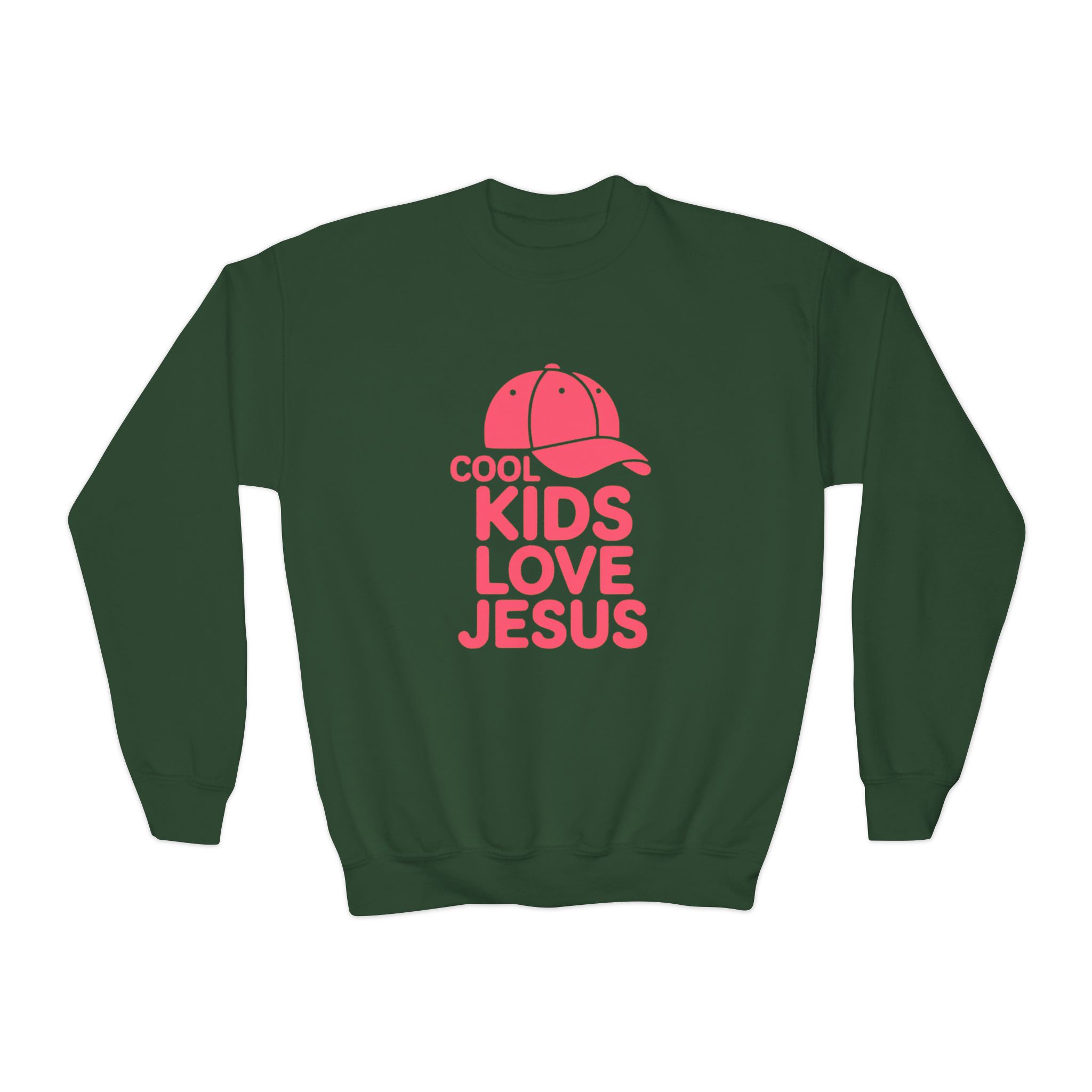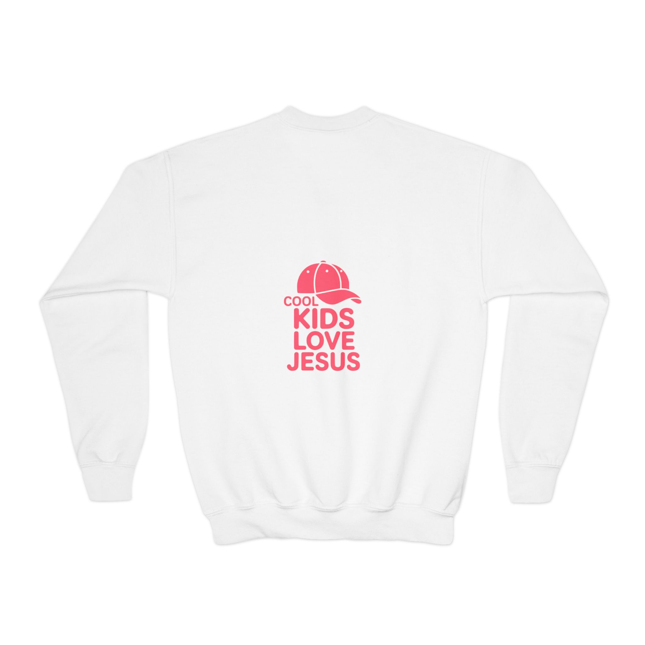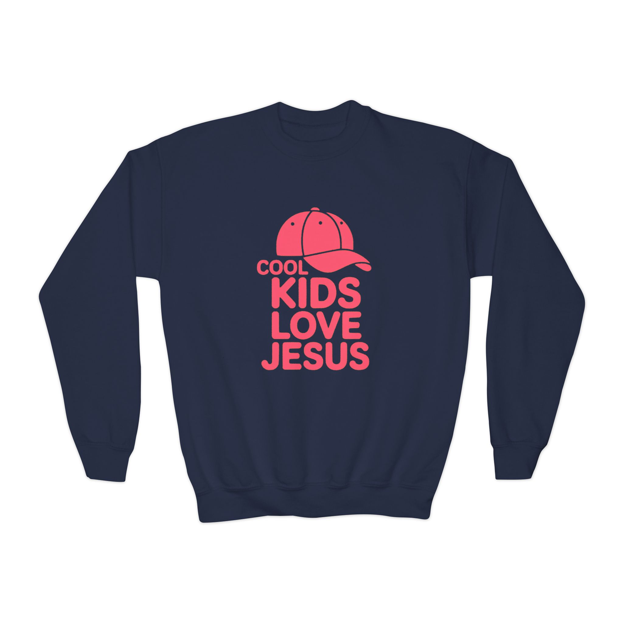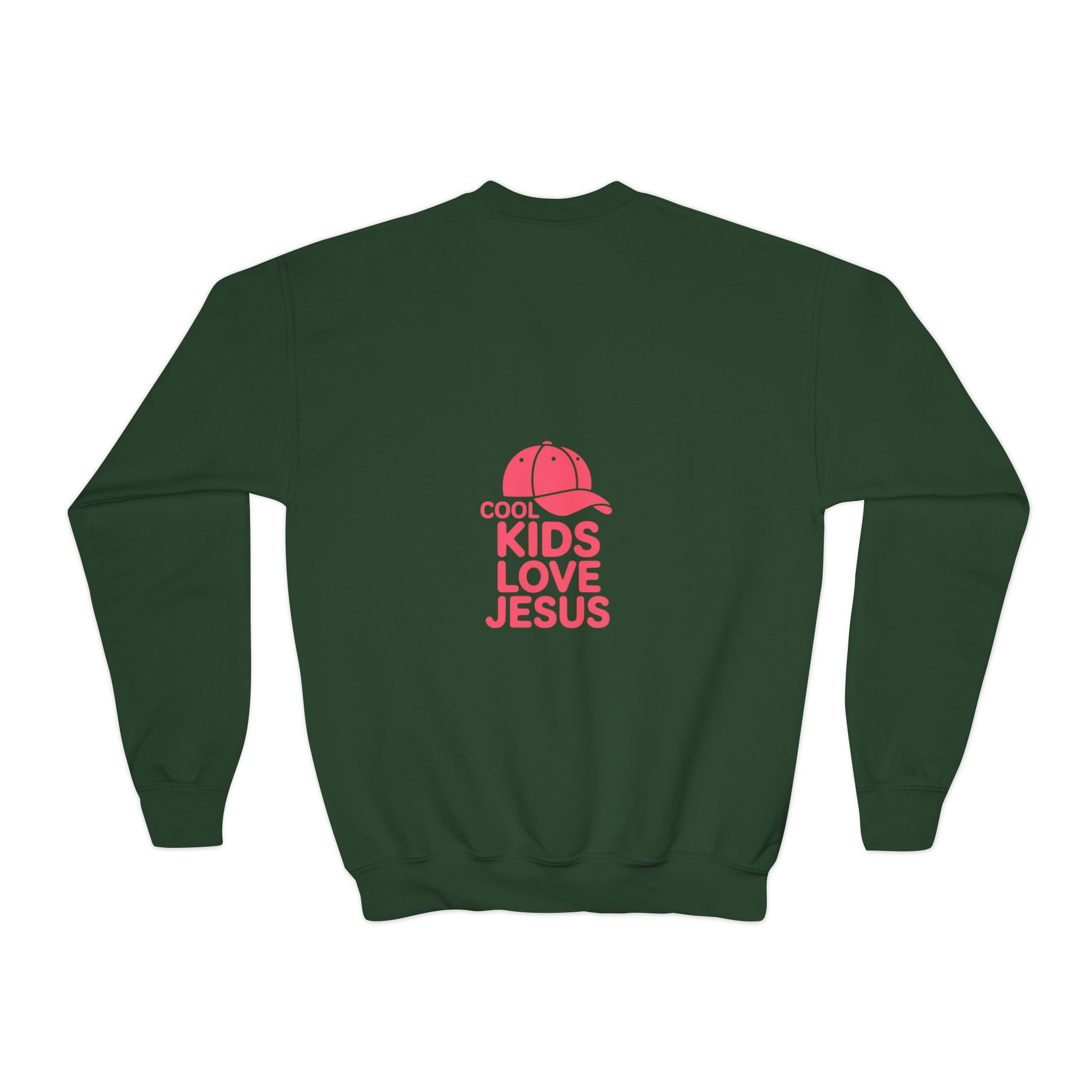 Soft, roomy, and made for little ones who love to move and share their faith. This youth crewneck sweatshirt pairs a comfy loose fit with a playful, slightly distressed print of a baseball cap and the bold message “Cool Kids Love Jesus.” It reads like a high-five from church hallways to playgrounds — bright, cheerful, and easy to layer. The medium-heavy knit holds its shape and print well, while the tear-away label keeps the neck comfortable. Choose left-chest or center-chest embroidery for a subtle, durable accent that stands up to wear and wash. Made to meet safety standards, it’s a cozy everyday layer that kids will reach for again and again.