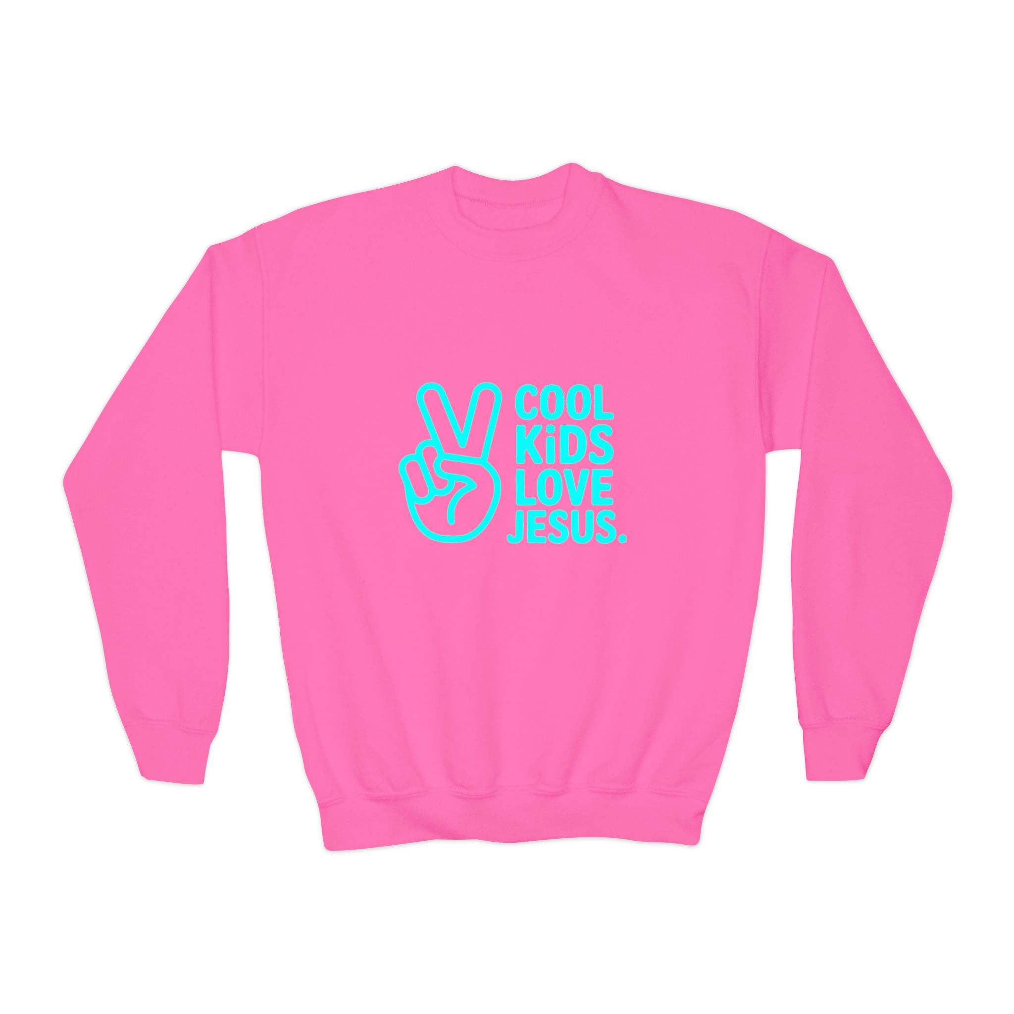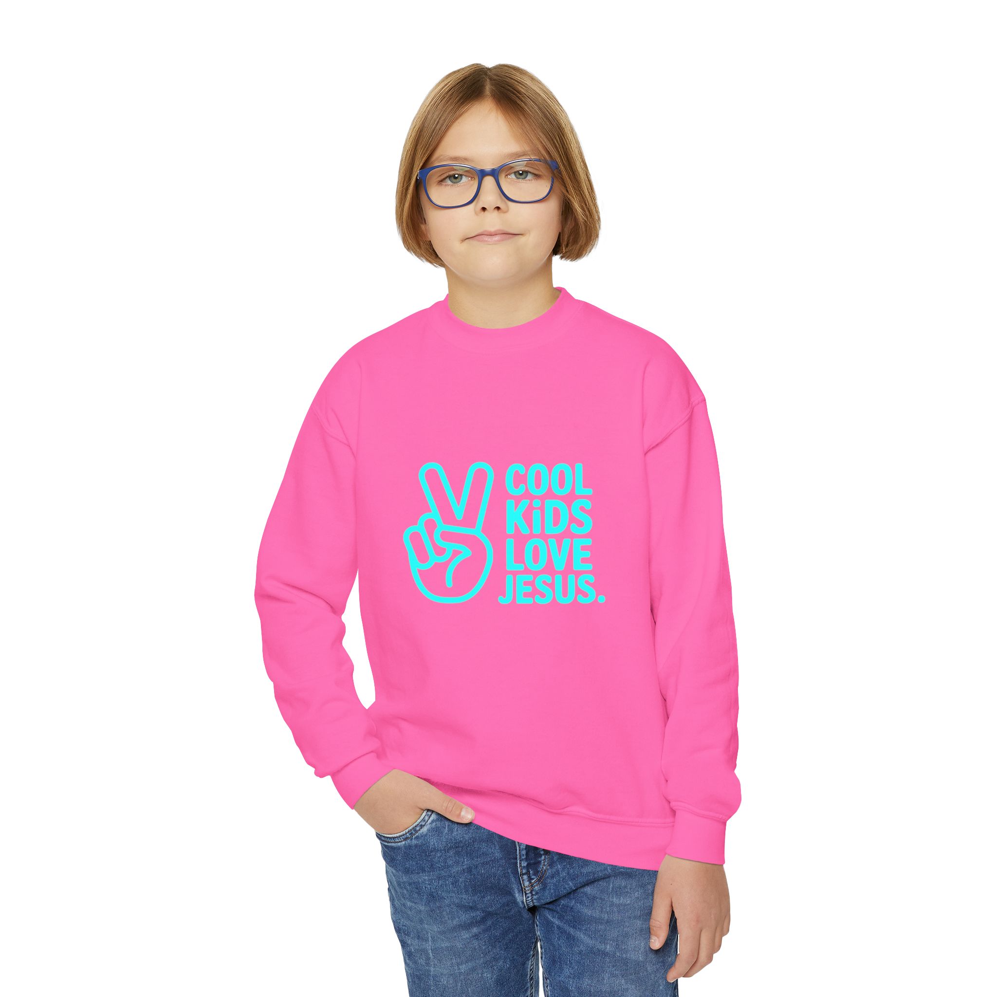 A cozy youth crewneck designed for kids who want to wear their faith with playful confidence. The soft, medium-weight fabric holds bright prints and embroidery beautifully, so the bold neon graphic stays vivid wash after wash. Its loose, comfortable fit and ribbed collar make it easy to layer over tees for chilly mornings or wear on its own for chapel, youth group, or weekend hangouts. Durable construction and safety-compliant materials give parents peace of mind while children enjoy a sweatshirt made to move with them.