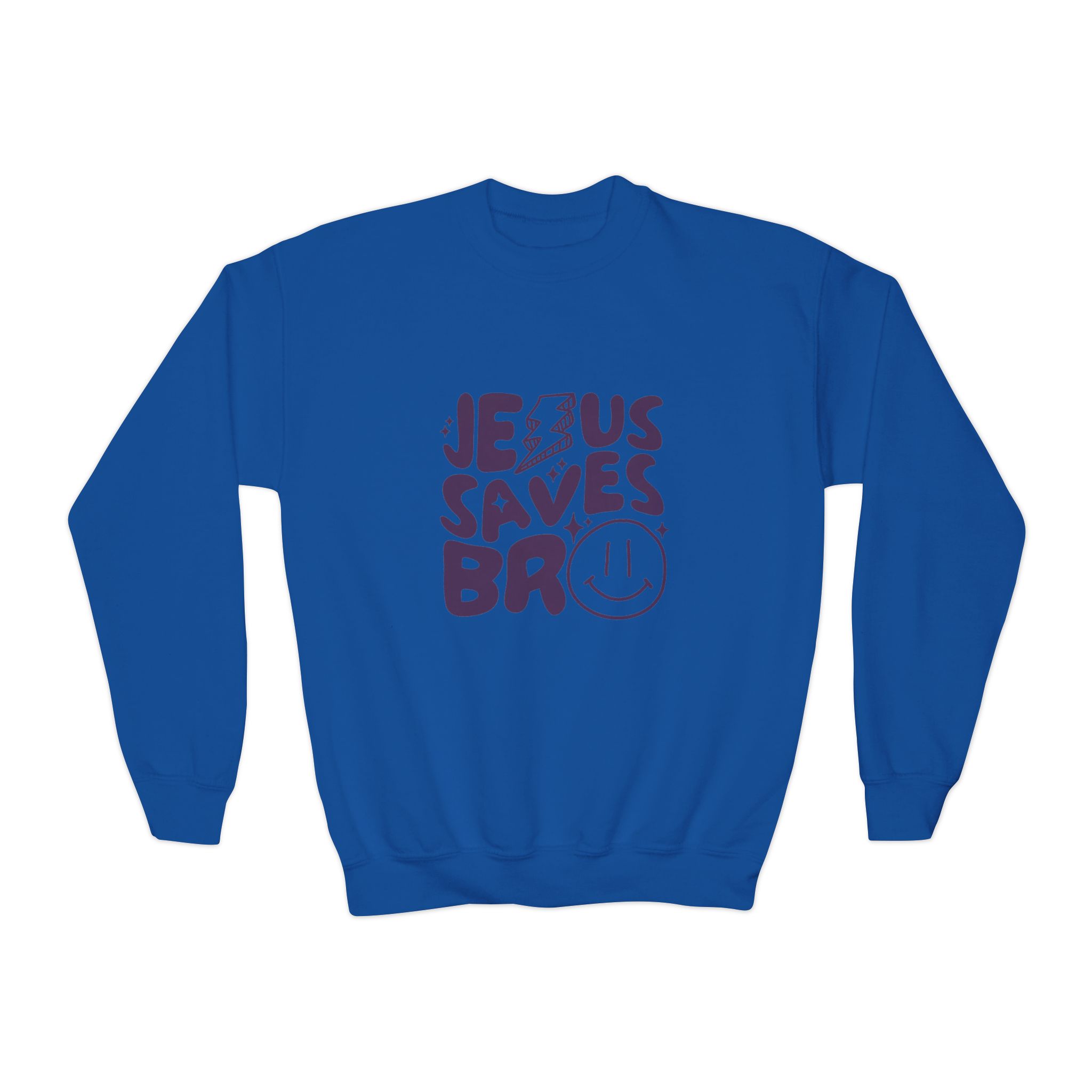 Soft, roomy, and a little bit rebellious — this youth crewneck brings playful faith-forward style to everyday wear. The loose silhouette and medium-heavy knit hug small frames without being restrictive, while the bold, hand-drawn graphic adds personality to school days, church youth nights, or weekend hangouts. Wear it layered over tees for chilly mornings or on its own for relaxed afternoons. The tubular construction means a smooth, seam-free body that looks clean and holds up to active kids. Embroidery options on the chest give a textured, durable finish if you prefer a stitched accent. Built to meet safety standards and crafted with easy-care fibers, this sweatshirt is made to move through childhood — from playground energy to quiet moments of reflection.